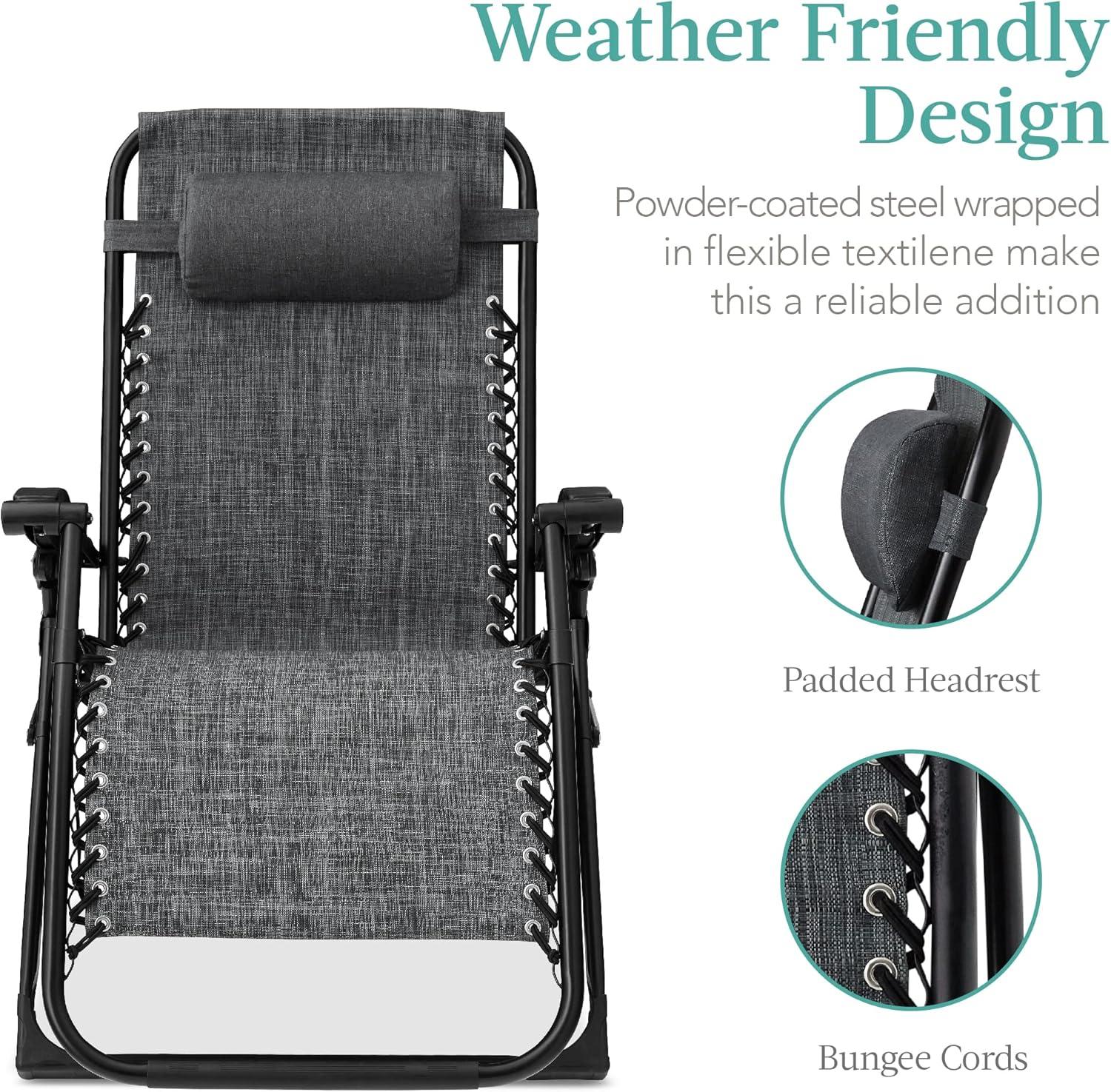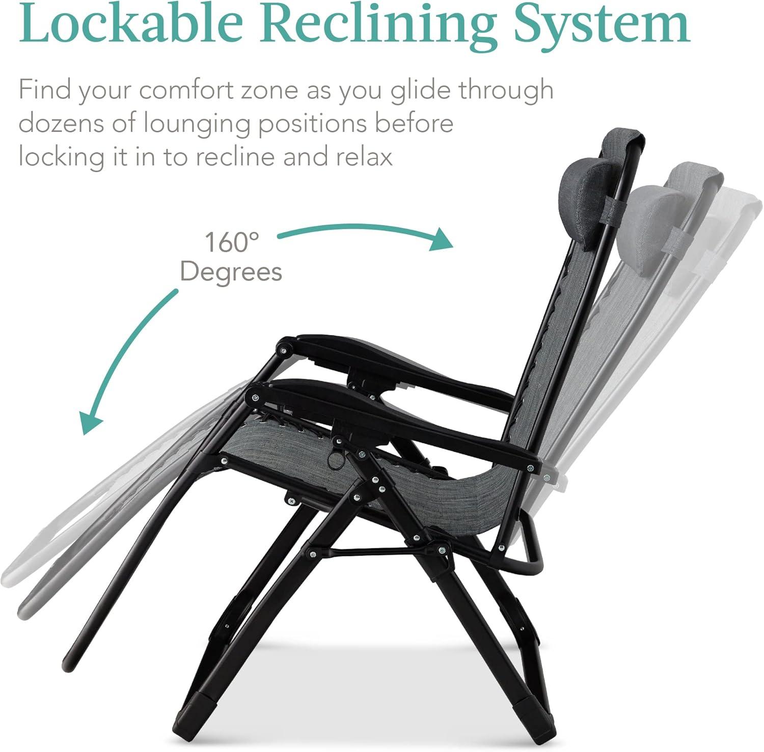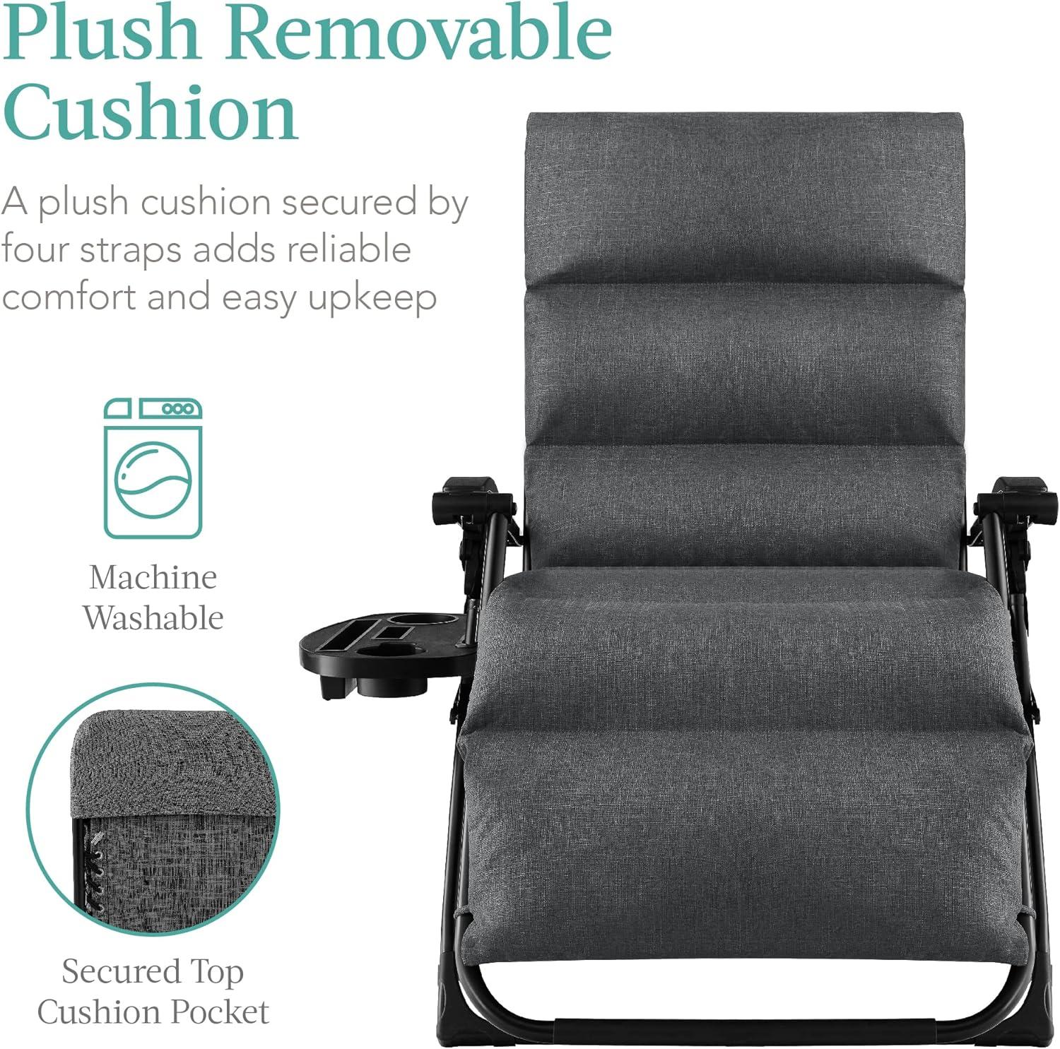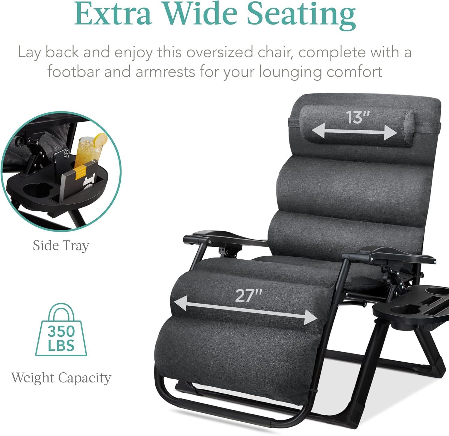 Best Choice Products Oversized Zero Gravity Chair, Folding Outdoor Patio Recliner, XL Anti Gravity Lounger w/Removable Cushion, Cup Holder, Side Tray, 350lb Capacity – Onyx Black(Fossil Gray)