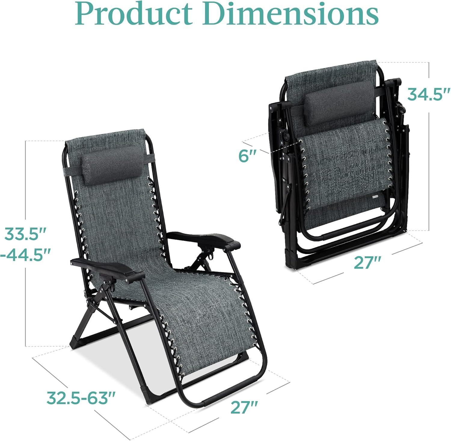 Best Choice Products Oversized Zero Gravity Chair, Folding Outdoor Patio Recliner, XL Anti Gravity Lounger w/Removable Cushion, Cup Holder, Side Tray, 350lb Capacity – Onyx Black(Graphite Blue)