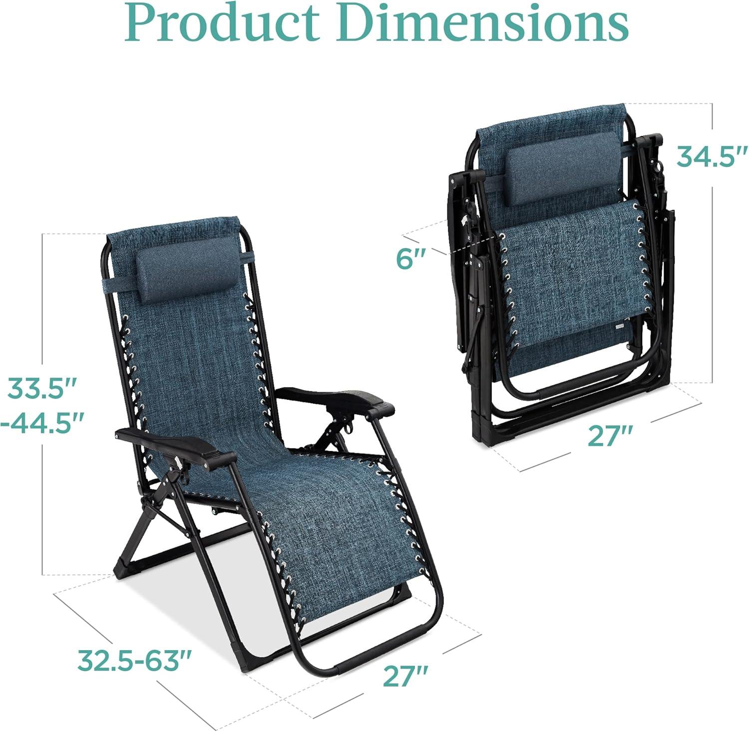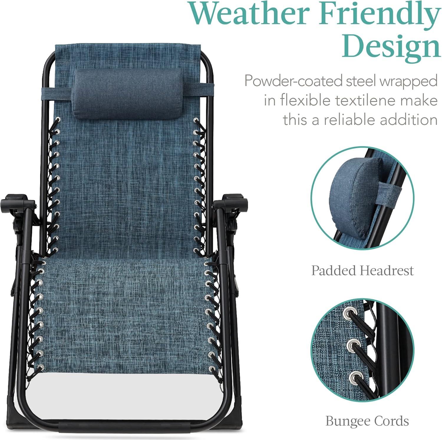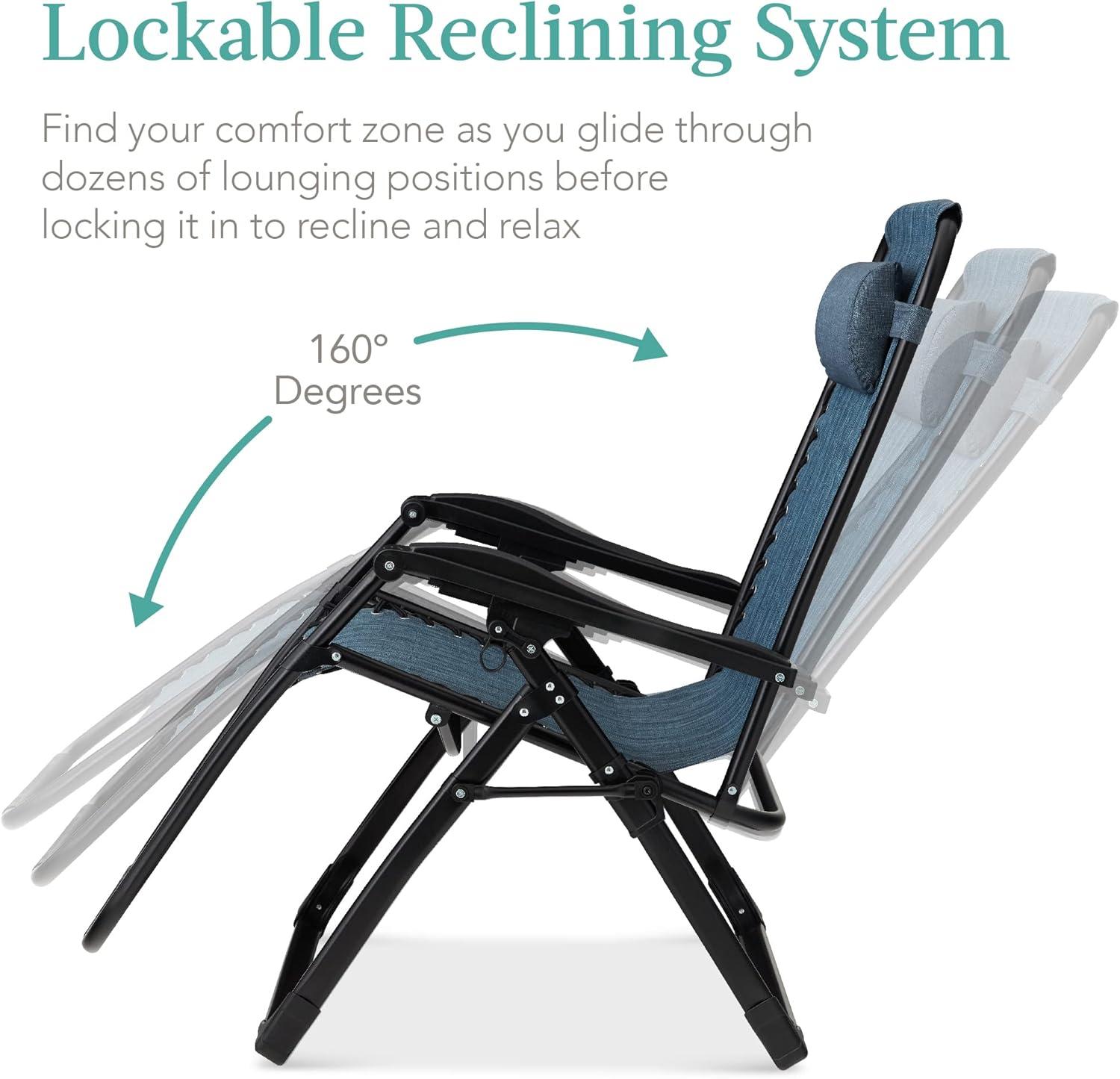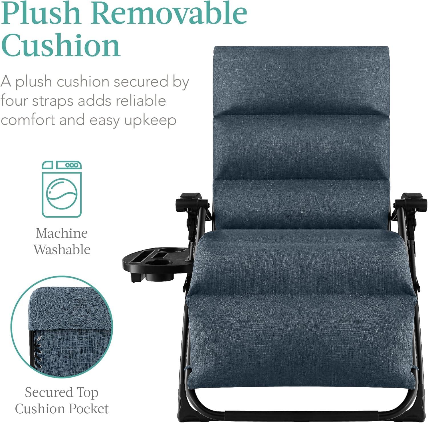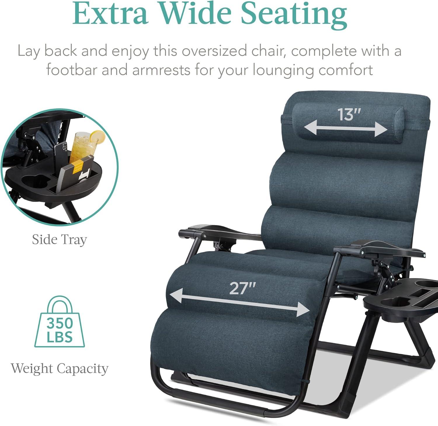 Best Choice Products Oversized Zero Gravity Chair, Folding Outdoor Patio Recliner, XL Anti Gravity Lounger w/Removable Cushion, Cup Holder, Side Tray, 350lb Capacity – Onyx Black(Graphite Blue)