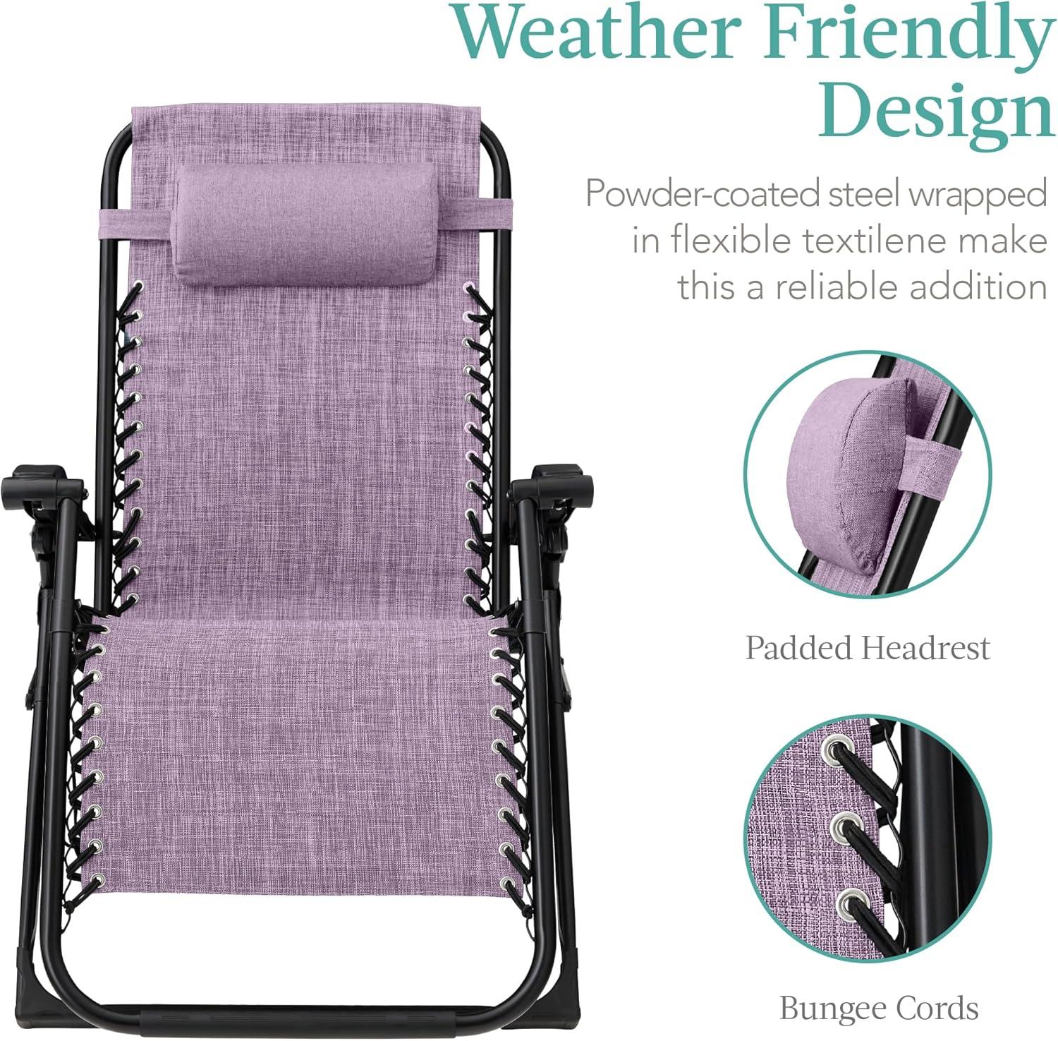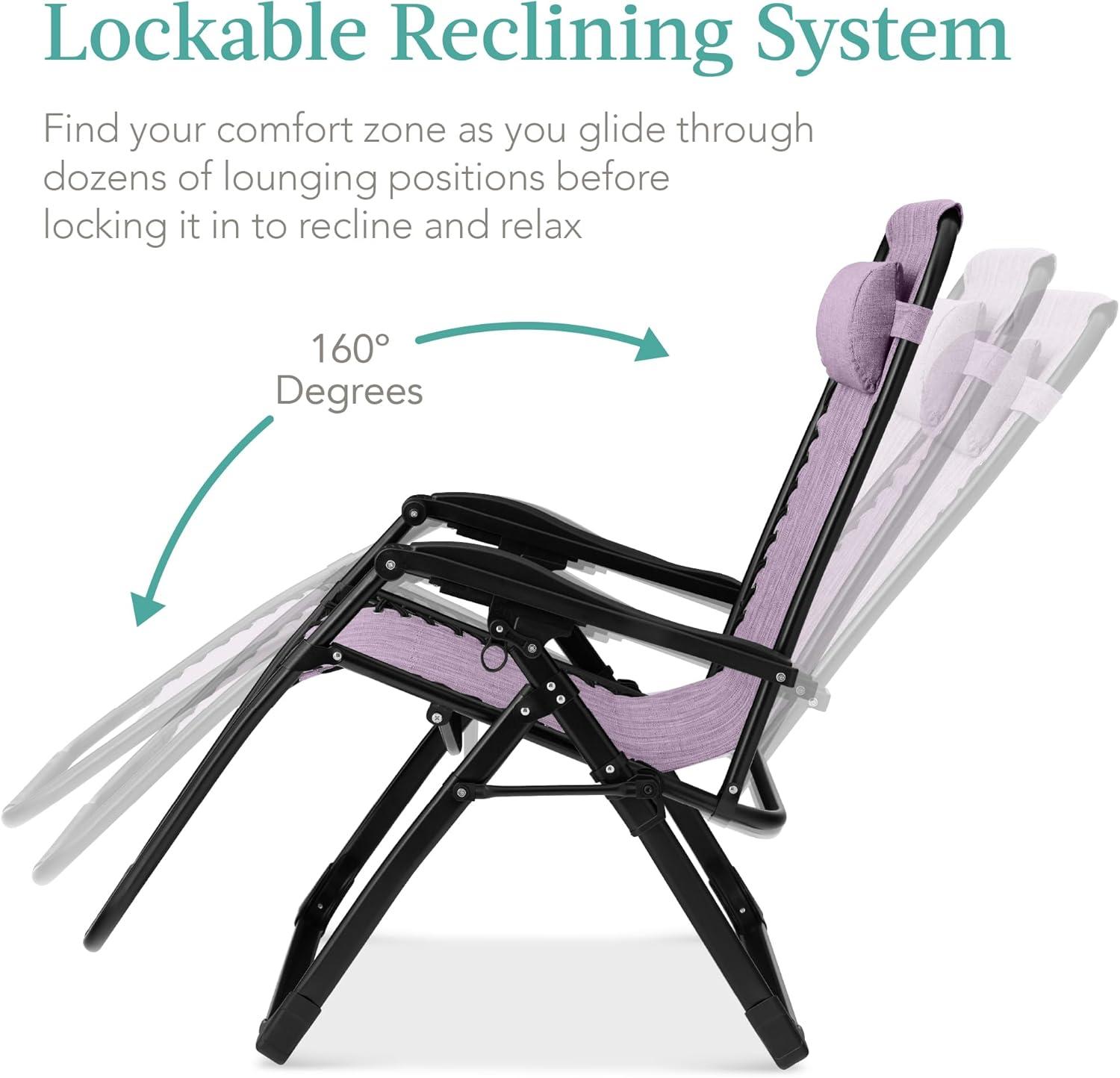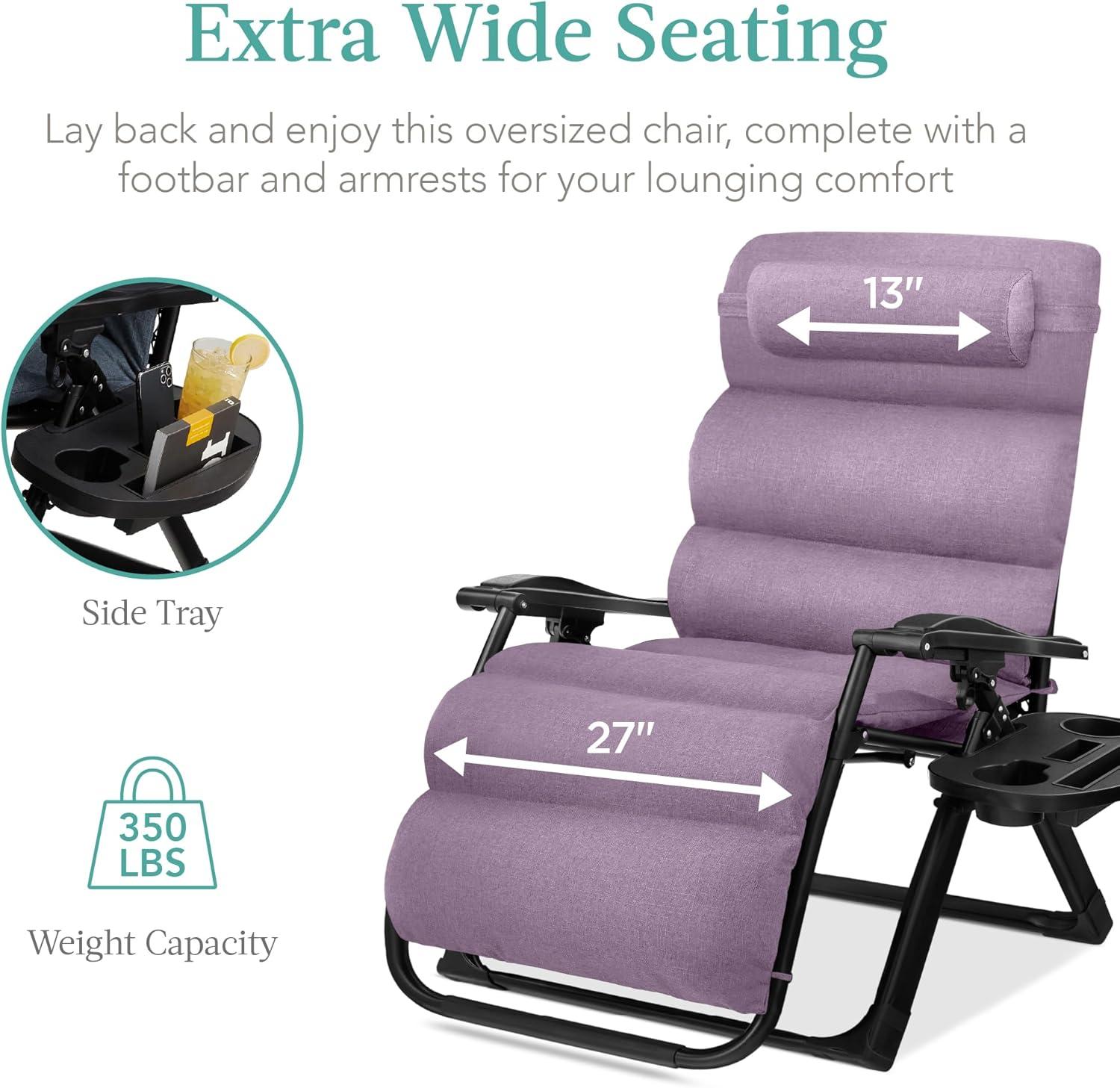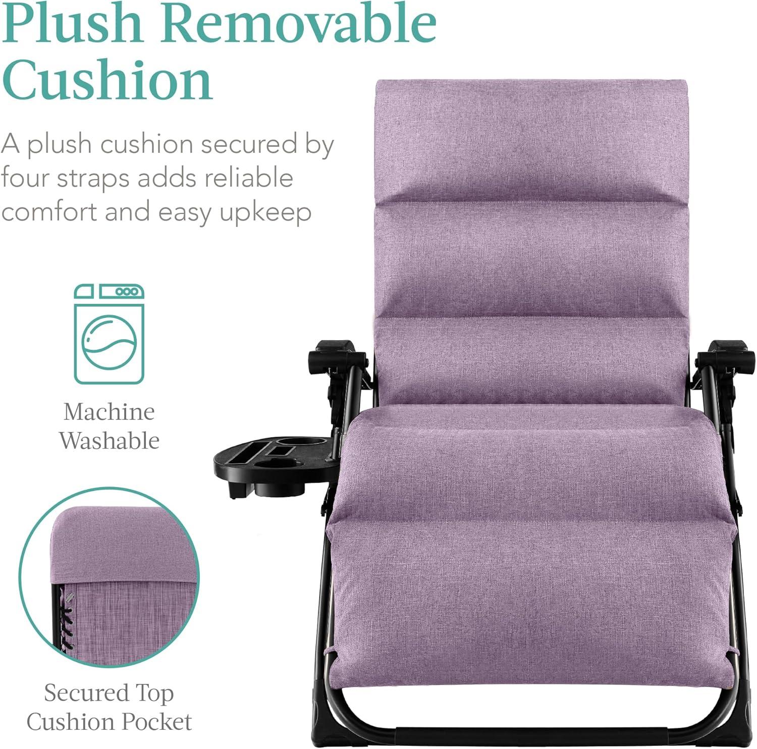 Best Choice Products Oversized Zero Gravity Chair, Folding Outdoor Patio Recliner, XL Anti Gravity Lounger w/Removable Cushion, Cup Holder, Side Tray, 350lb Capacity – Onyx Black(Lavender)