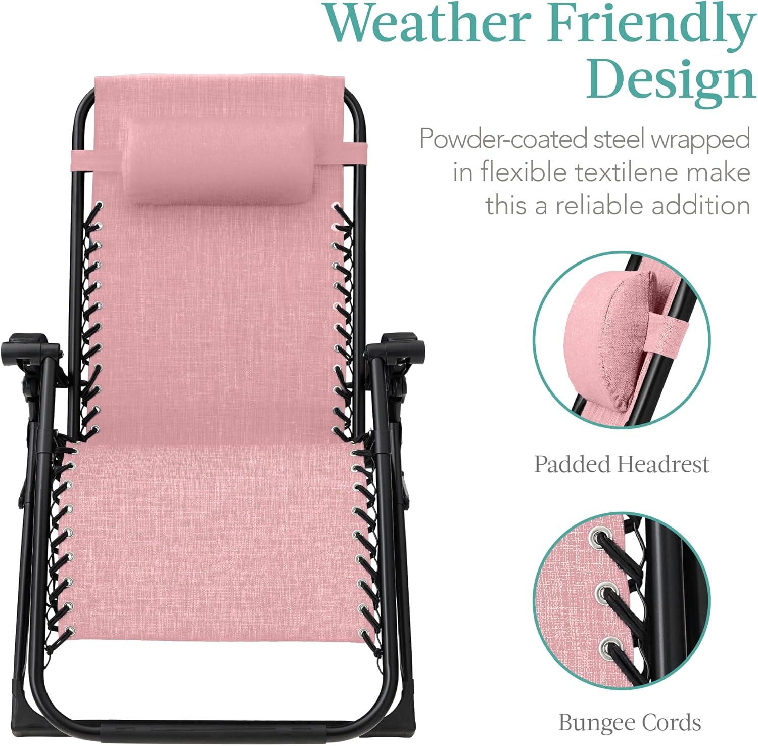 EXTRA-WIDE SEATING: Padded linen with flexible textilene conforms to your body, while an adjustable headrest helps relieve tension in the neck while lounging