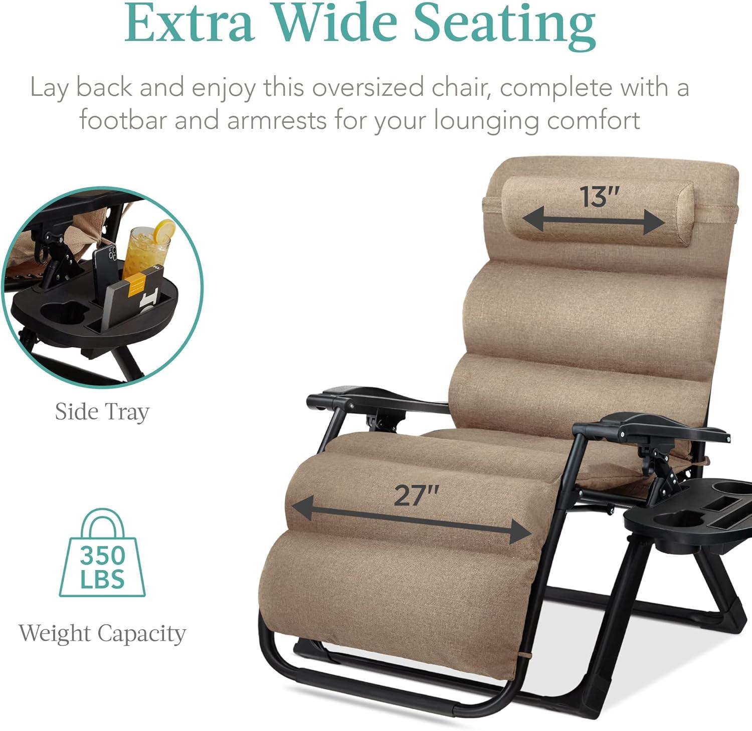 Best Choice Products Oversized Zero Gravity Chair, Folding Outdoor Patio Recliner, XL Anti Gravity Lounger w/Removable Cushion, Cup Holder, Side Tray, 350lb Capacity – Onyx Black(Taupe)