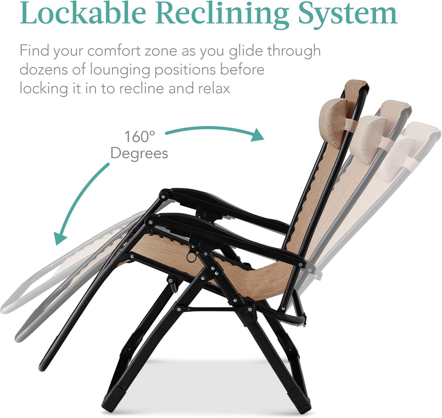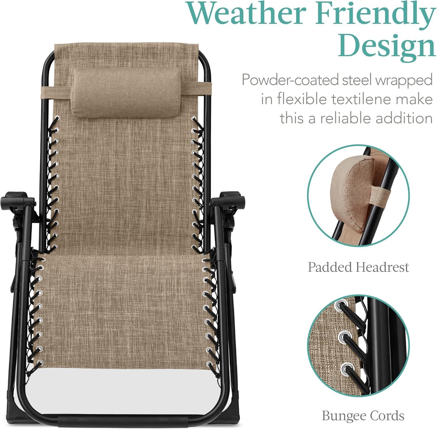 Best Choice Products Oversized Zero Gravity Chair, Folding Outdoor Patio Recliner, XL Anti Gravity Lounger w/Removable Cushion, Cup Holder, Side Tray, 350lb Capacity – Onyx Black(Wheat)
