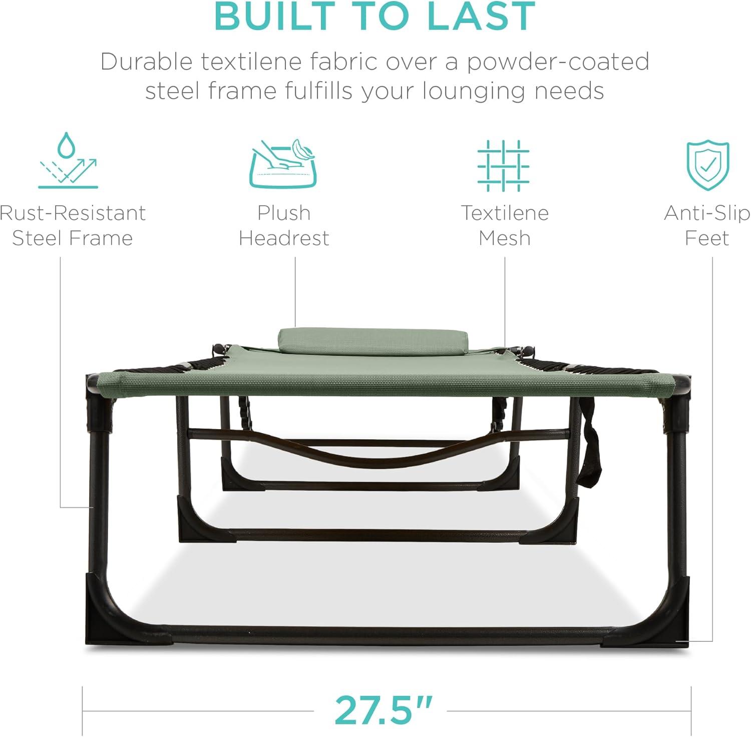 Best Choice Products Patio Chaise Lounge Chair, Portable Outdoor Folding Recliner for Lawn, w/ 8 Positions, Handles, 300lb Capacity – Beige(Sage Green)
