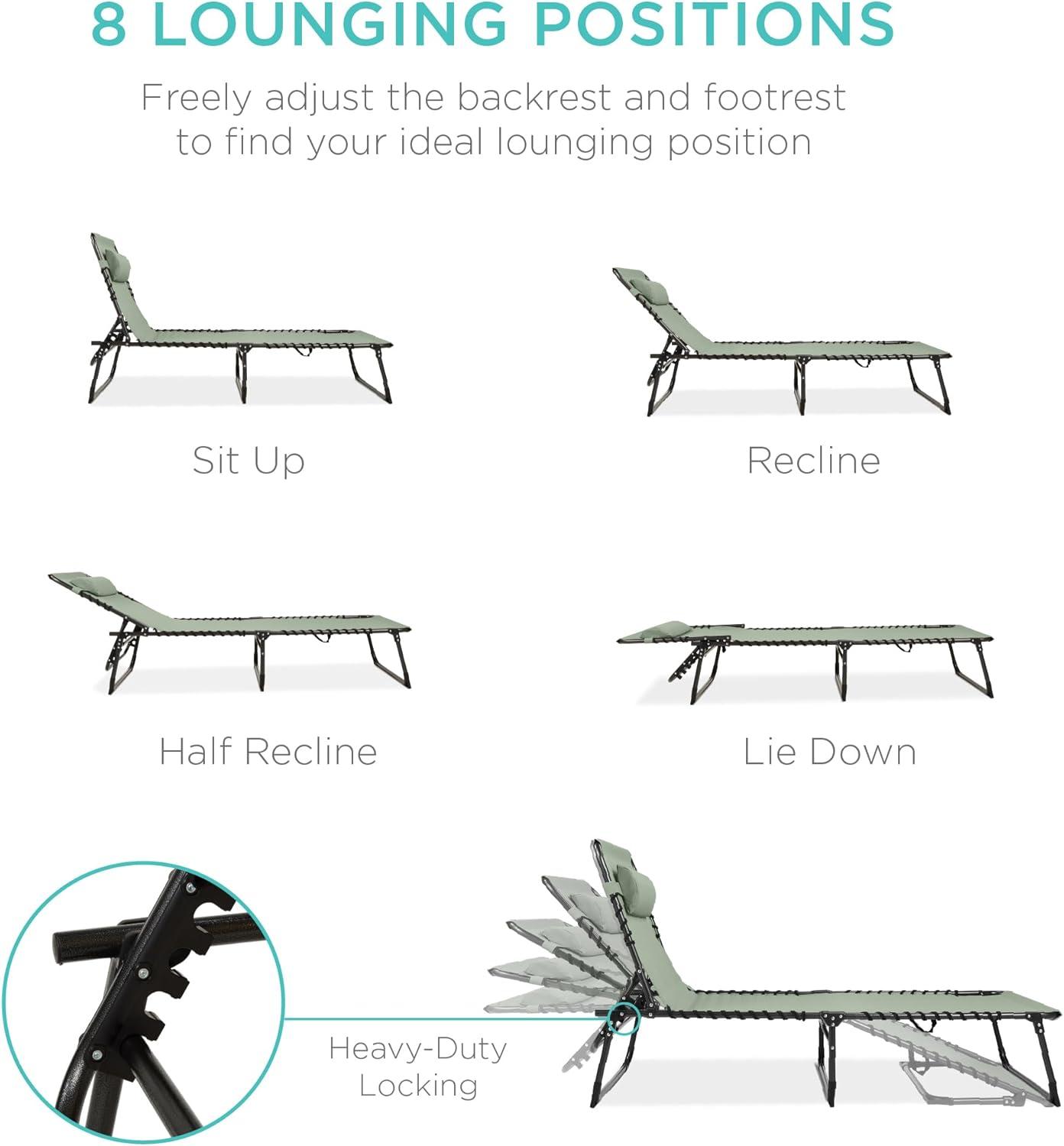 Best Choice Products Patio Chaise Lounge Chair, Portable Outdoor Folding Recliner for Lawn, w/ 8 Positions, Handles, 300lb Capacity - Beige(Sage Green)