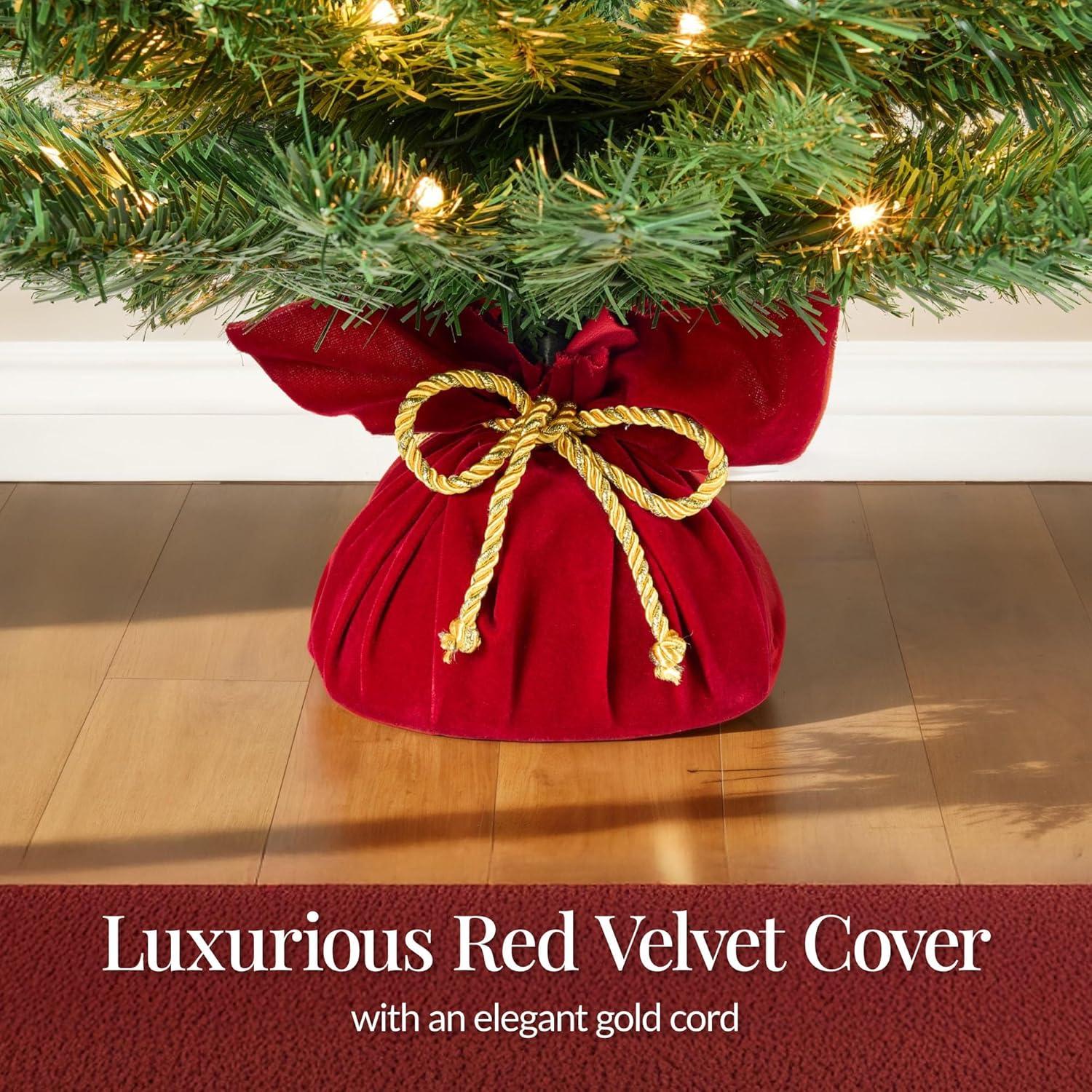 LUXURIOUS RED VELVET COVER: Wrapped in a rich red velvet cover and trimmed with a gleaming gold cord, this piece brings timeless holiday elegance to any room.