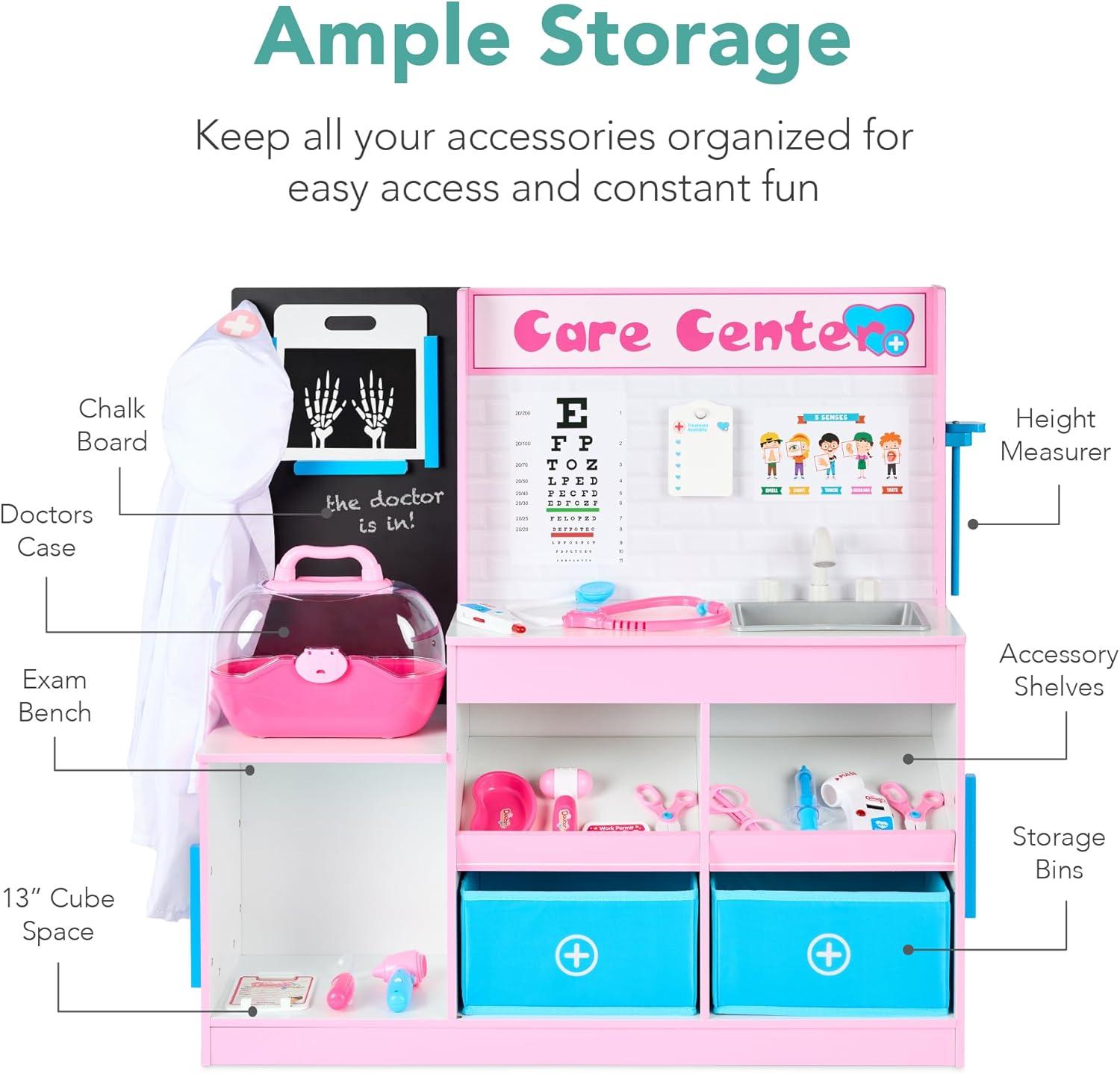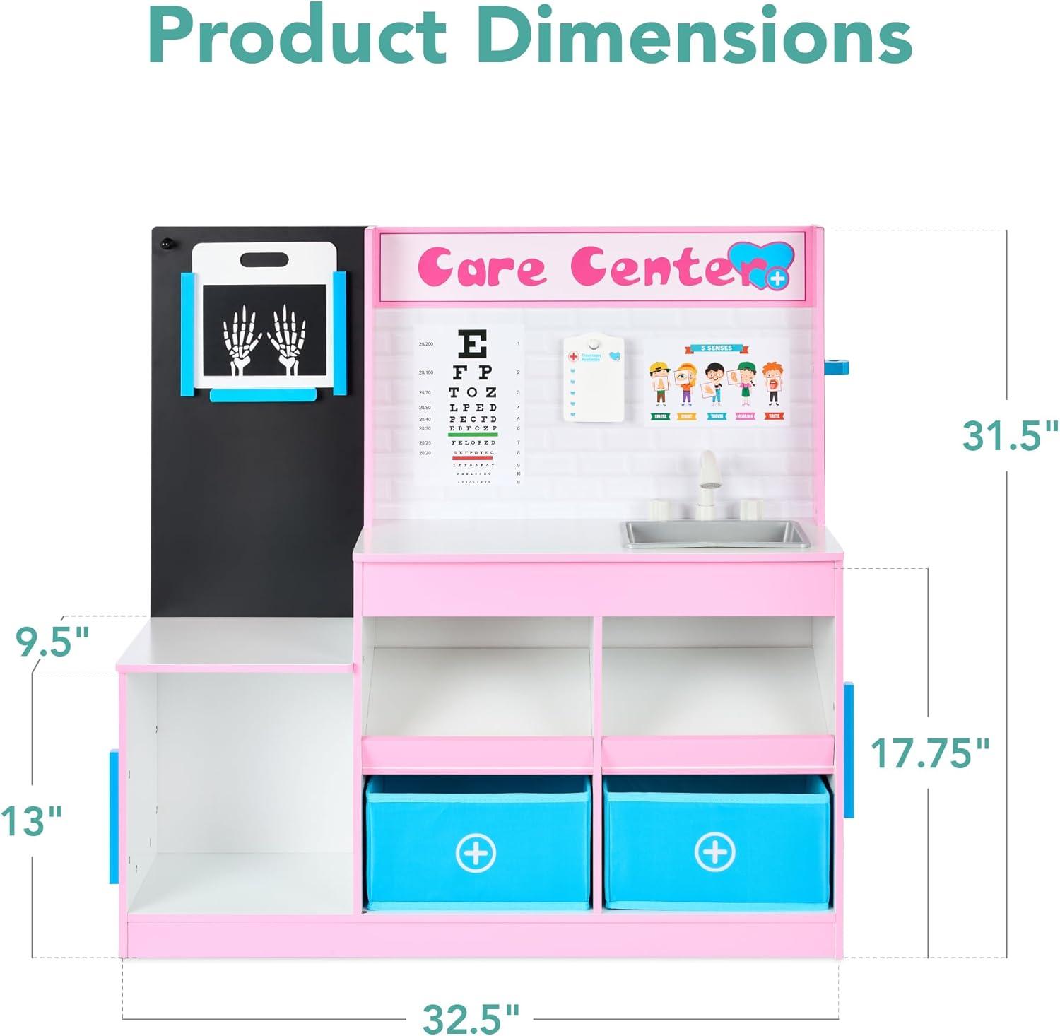 IMAGINATIVE PLAY: This 32.5-inch play set comes with a medical sink, exam bench, chalkboard, and even a child-sized height measuring station to help track their growth