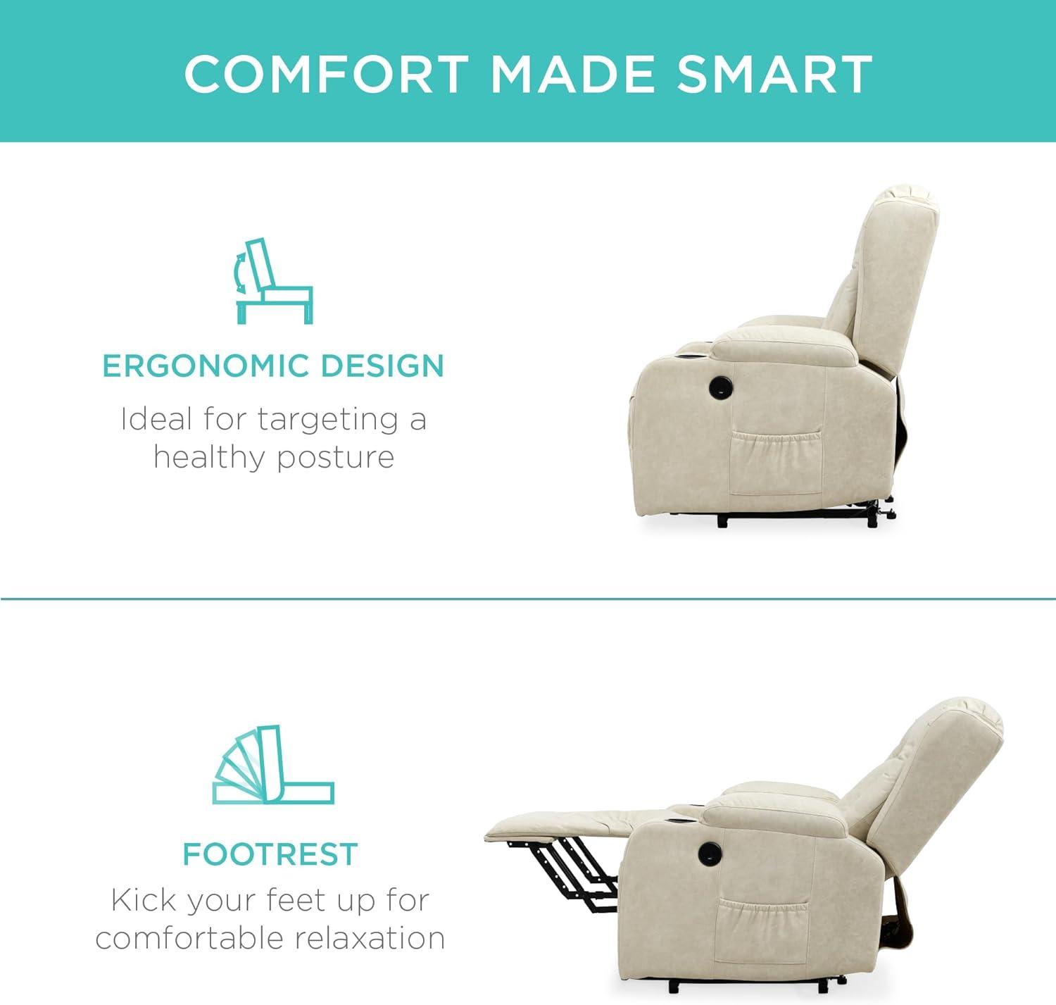 Best Choice Products PU Leather Electric Power Lift Chair, Recliner Massage Chair, Adjustable Furniture for Back, Legs w/ 3 Positions, USB Port, Heat, Cupholders, Easy-to-Reach Side Button - Black(Beige)