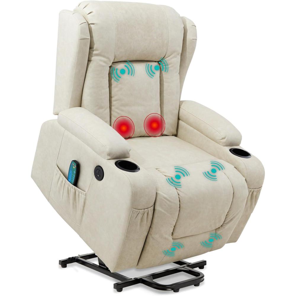 Best Choice Products PU Leather Electric Power Lift Chair, Recliner Massage Chair, Adjustable Furniture for Back, Legs w/ 3 Positions, USB Port, Heat, Cupholders, Easy-to-Reach Side Button – Black(Beige)