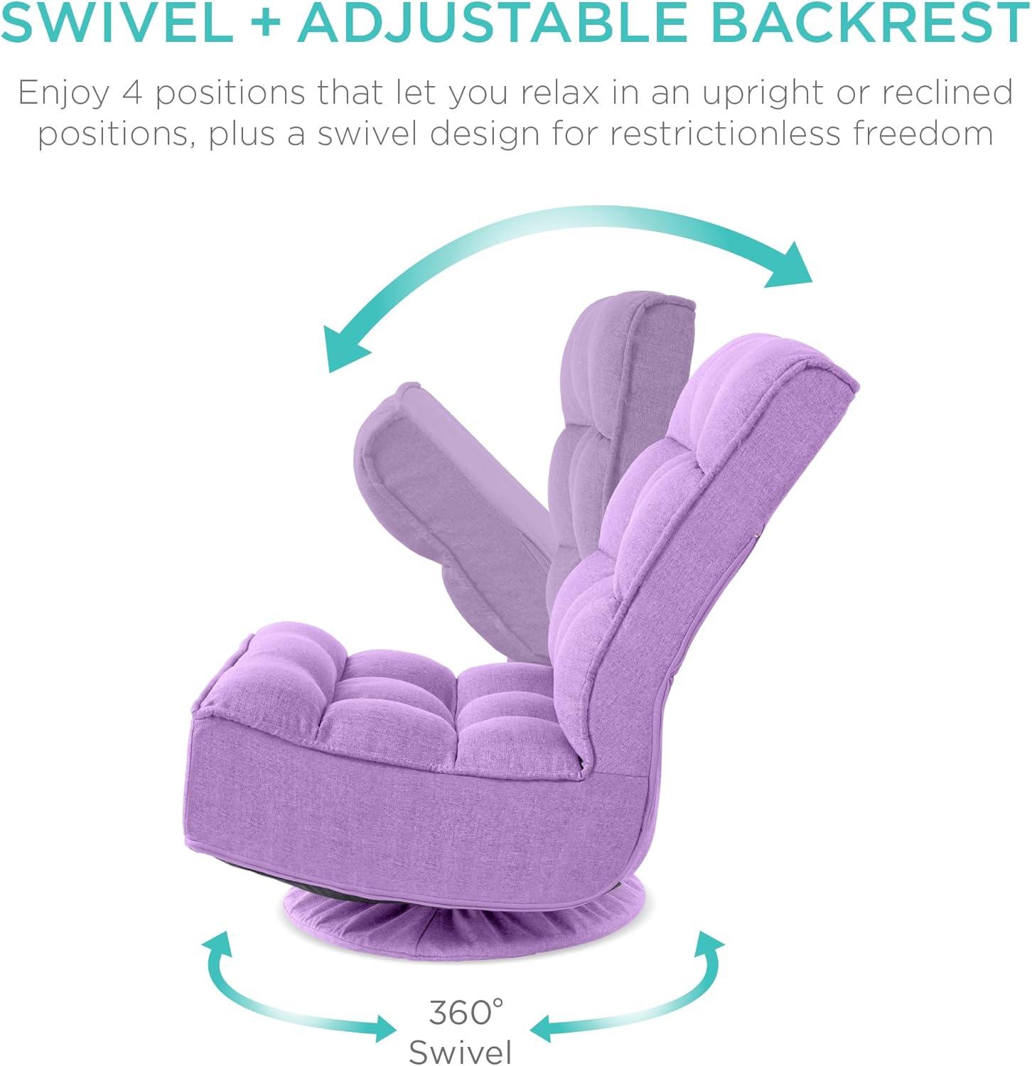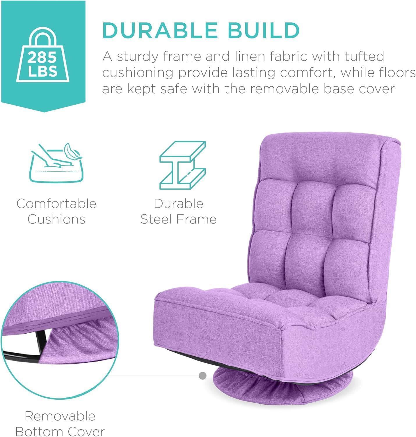 Best Choice Products Reclining Folding Floor Gaming Chair for Home, Office, Lounging, Reading w/ 360-Degree Swivel, 4 Adjustable Positions, Tufted Cushions – Black(Lavender)