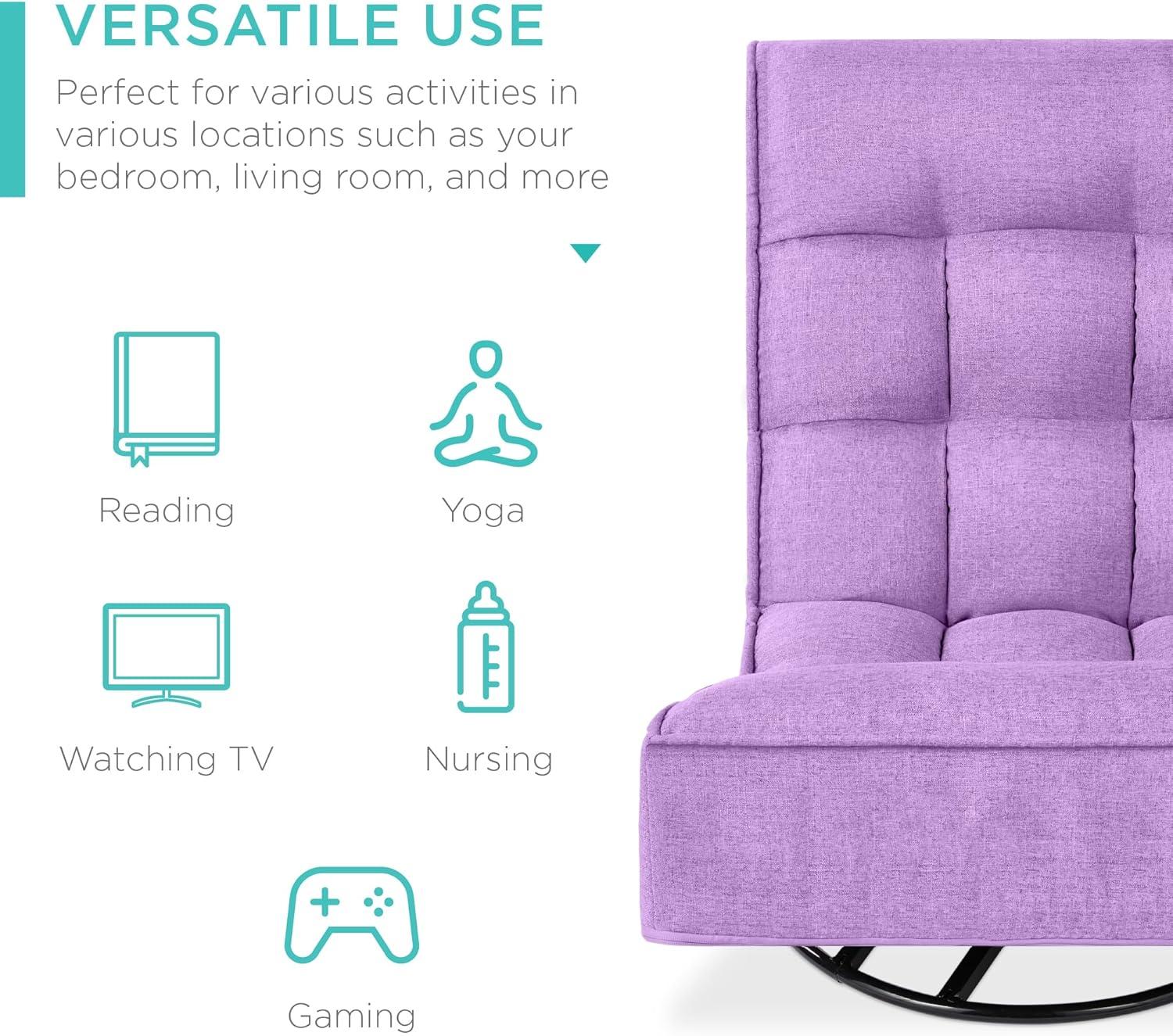 Best Choice Products Reclining Folding Floor Gaming Chair for Home, Office, Lounging, Reading w/ 360-Degree Swivel, 4 Adjustable Positions, Tufted Cushions - Black(Lavender)