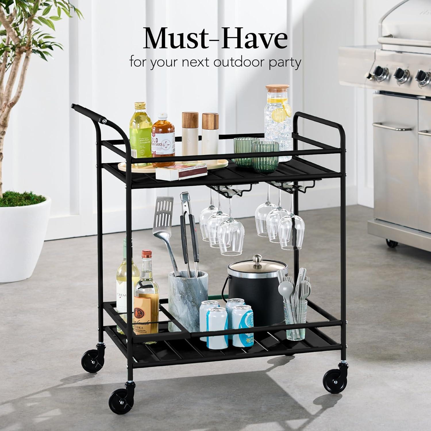 OUTDOOR/INDOOR USE: This weather-resistant bar cart is built to withstand the elements, making it perfect for the outdoors. Its elegant design also allows it to function in the living room, kitchen, or other indoor locations