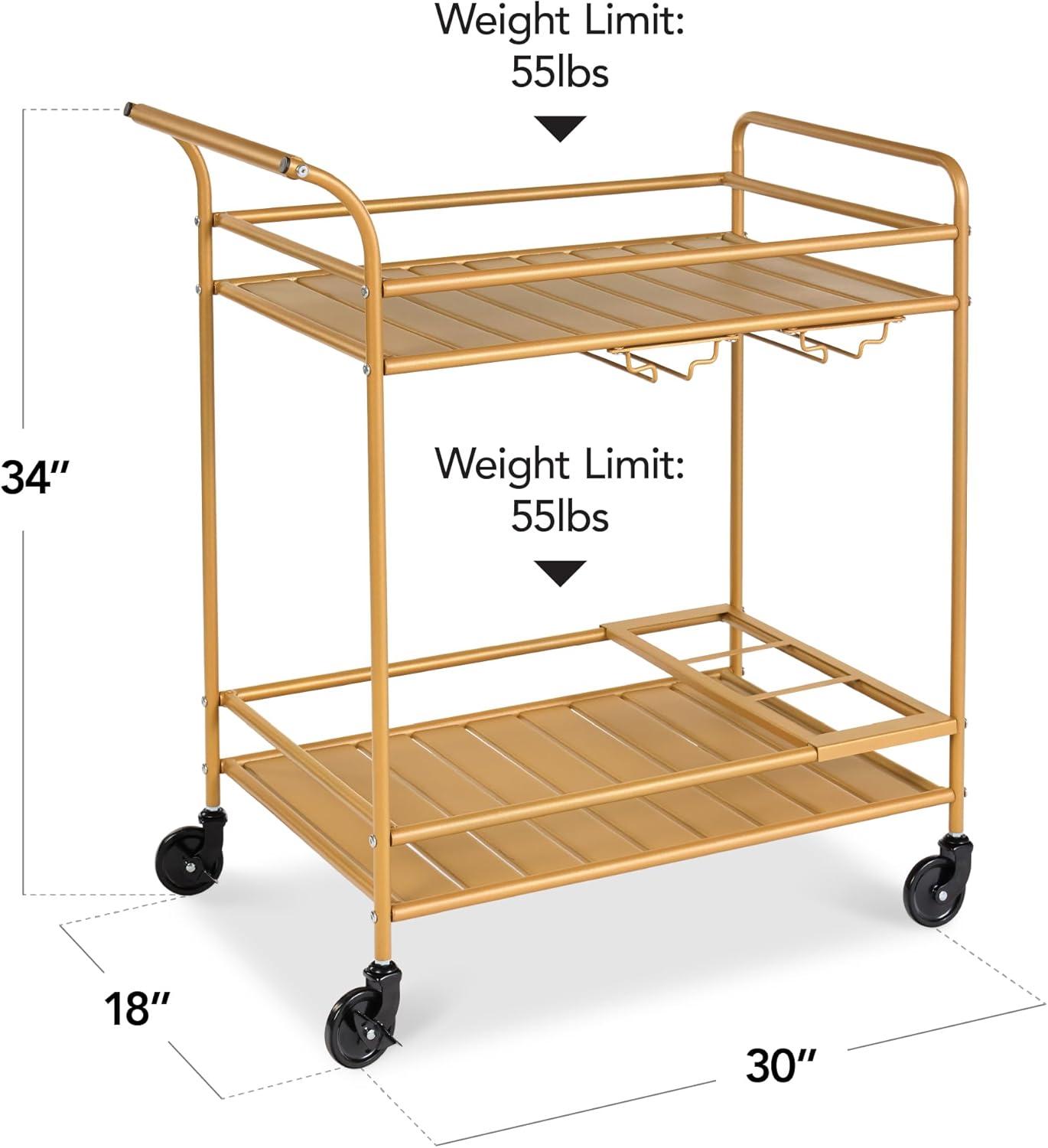 Best Choice Products Rolling Bar Cart, Mobile Home Bar Serving Cart, Serving Station w/ 2 Tier Shelves, Wine Rack, Lockable Wheels - Peacock(Gold)