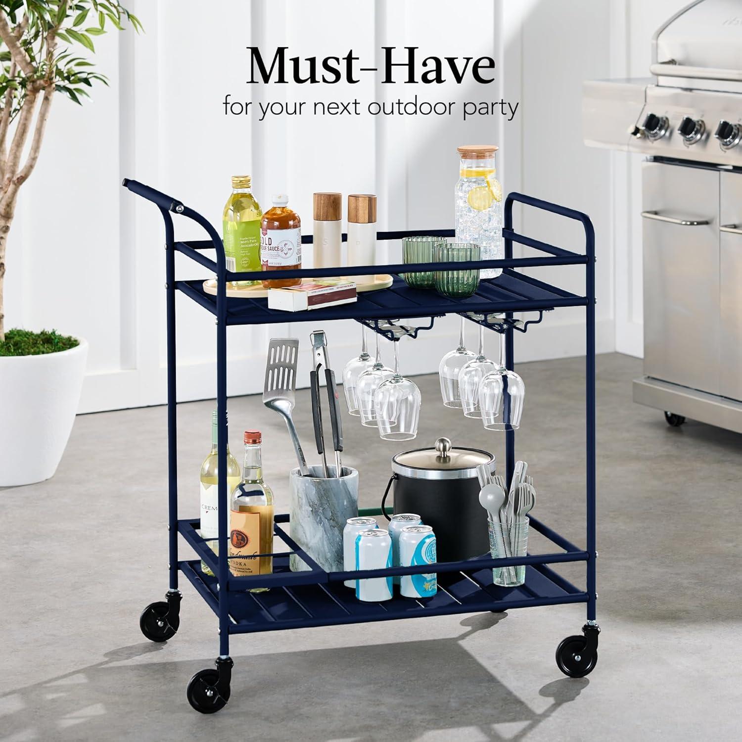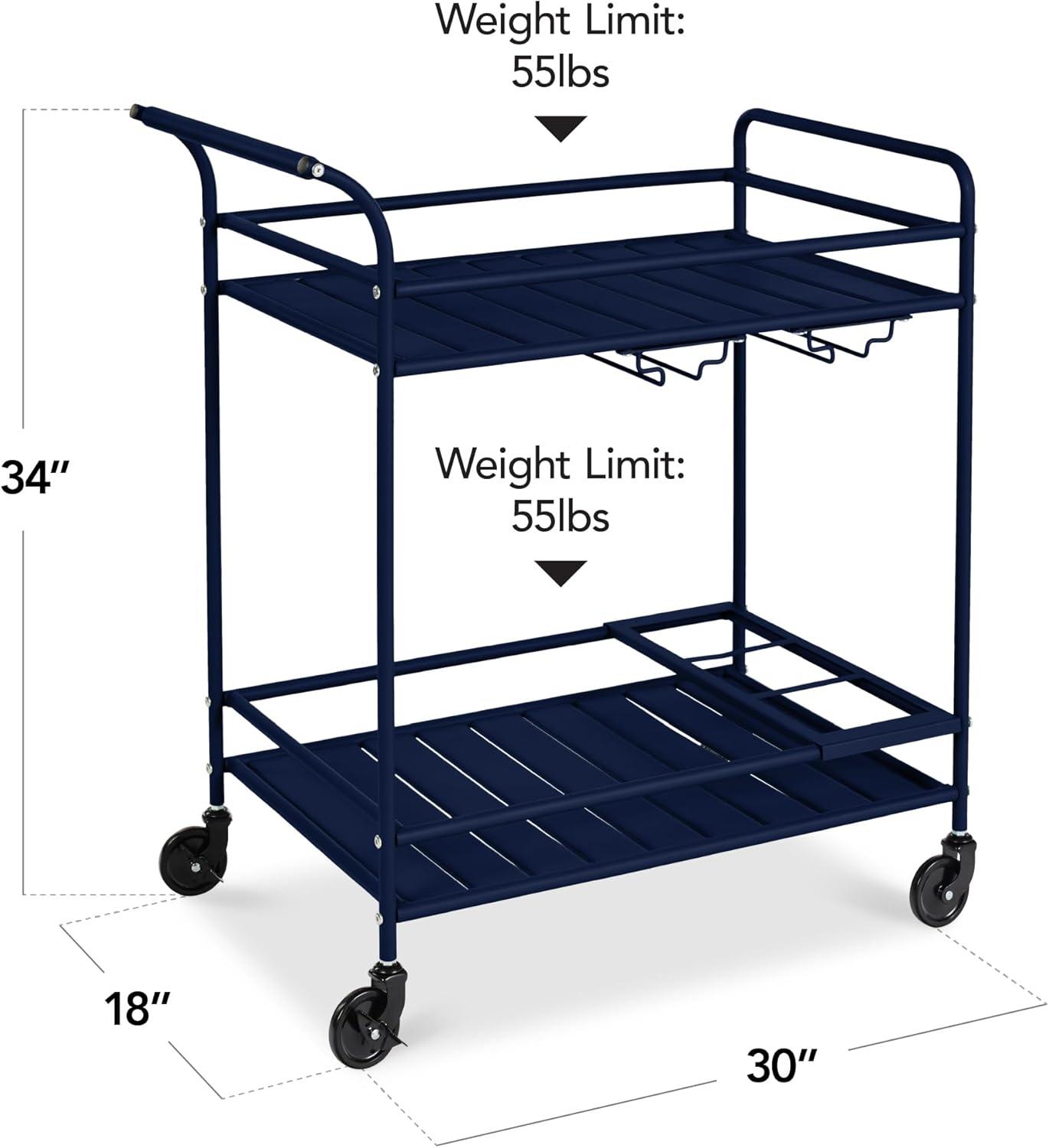 Best Choice Products Rolling Bar Cart, Mobile Home Bar Serving Cart, Serving Station w/ 2 Tier Shelves, Wine Rack, Lockable Wheels - Peacock(Navy)