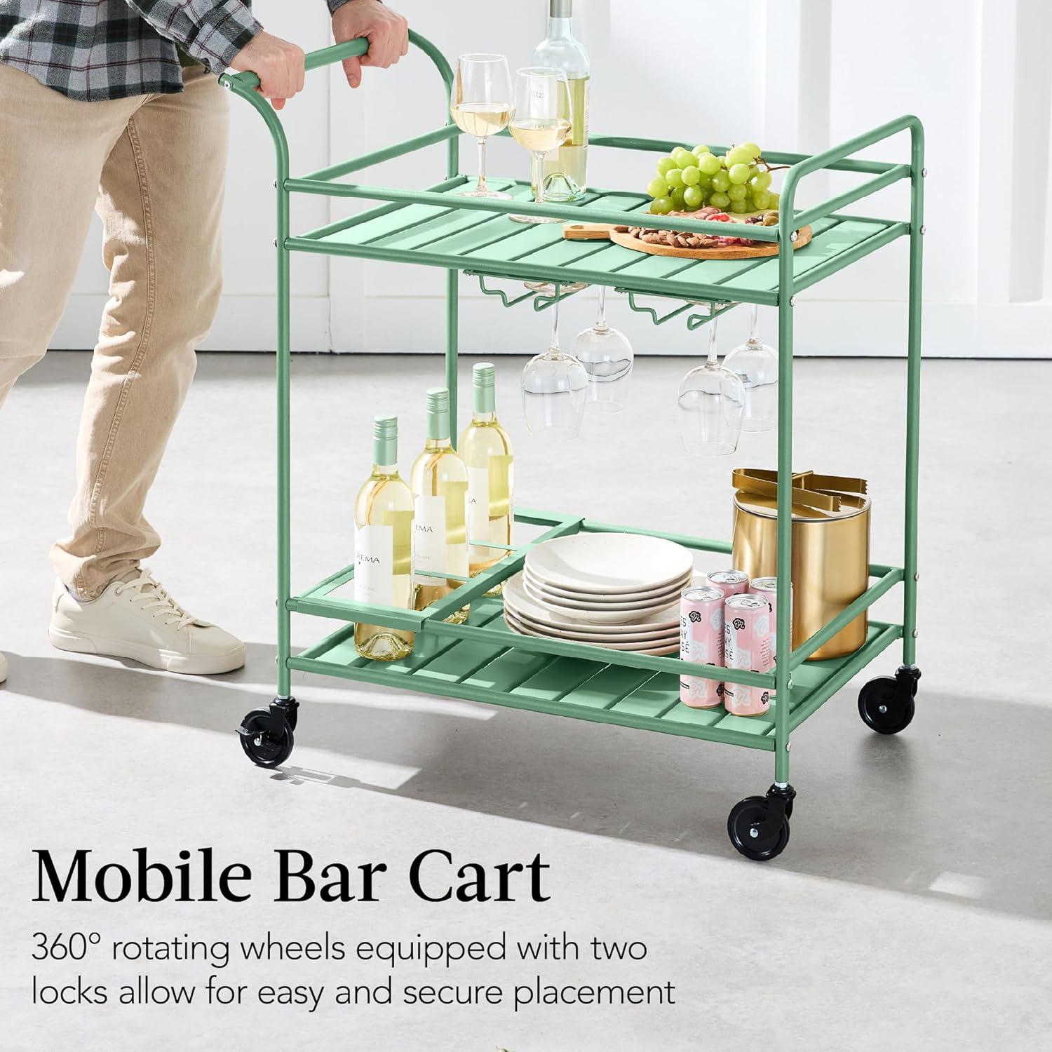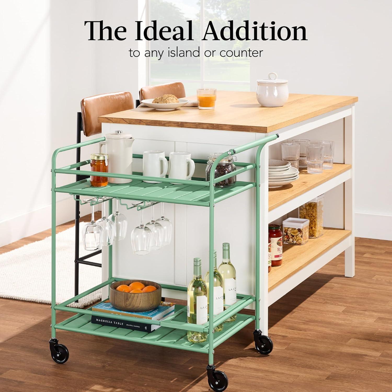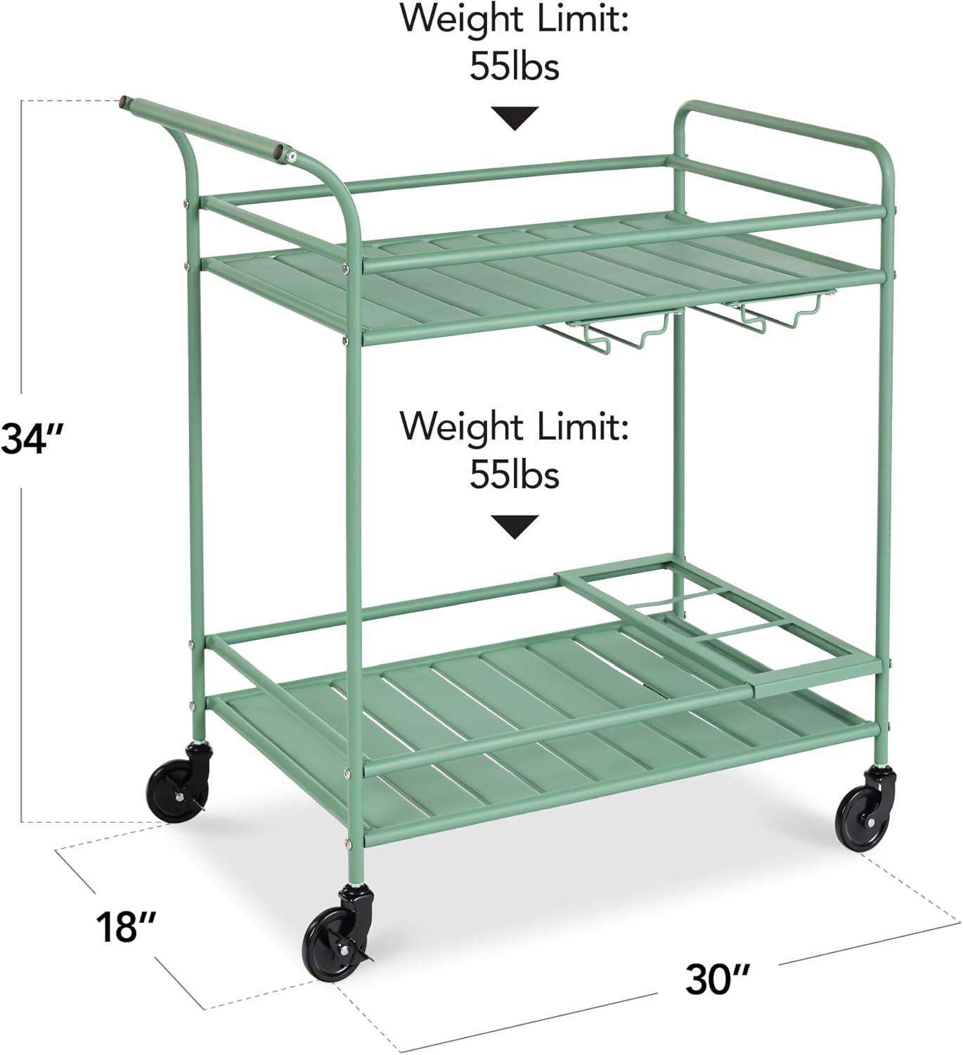 Best Choice Products Rolling Bar Cart, Mobile Home Bar Serving Cart, Serving Station w/ 2 Tier Shelves, Wine Rack, Lockable Wheels - Peacock(Sage)
