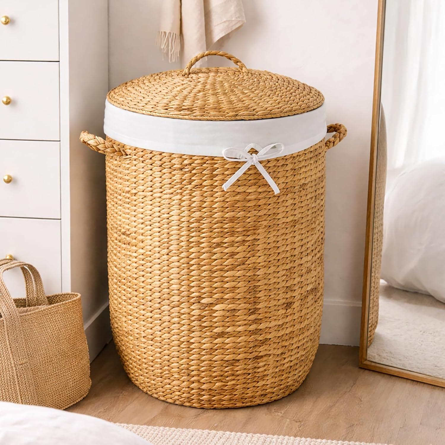 BRAIDED HANDLES: Strong woven handles on the sides and lid make it easy to lift, carry, and access your laundry or storage items with comfort and convenience