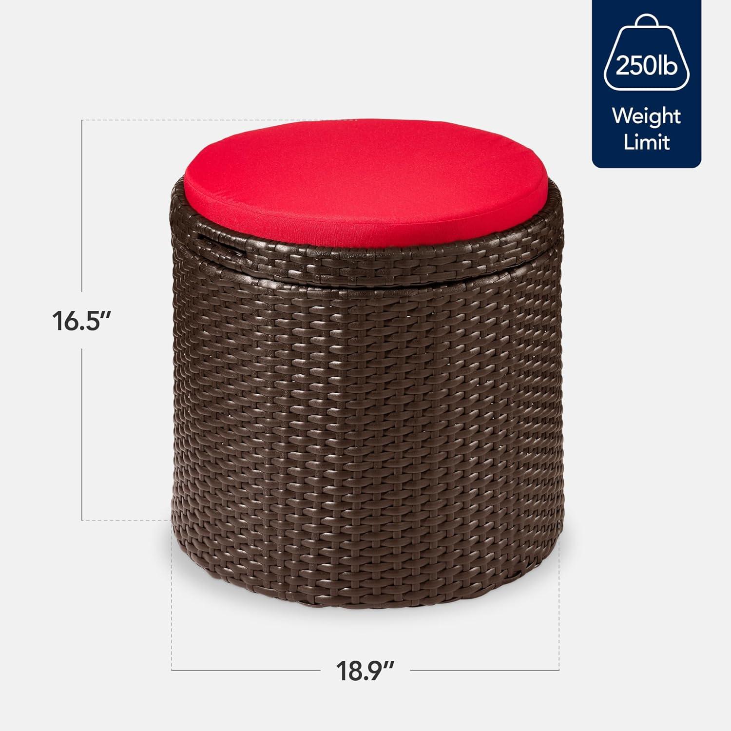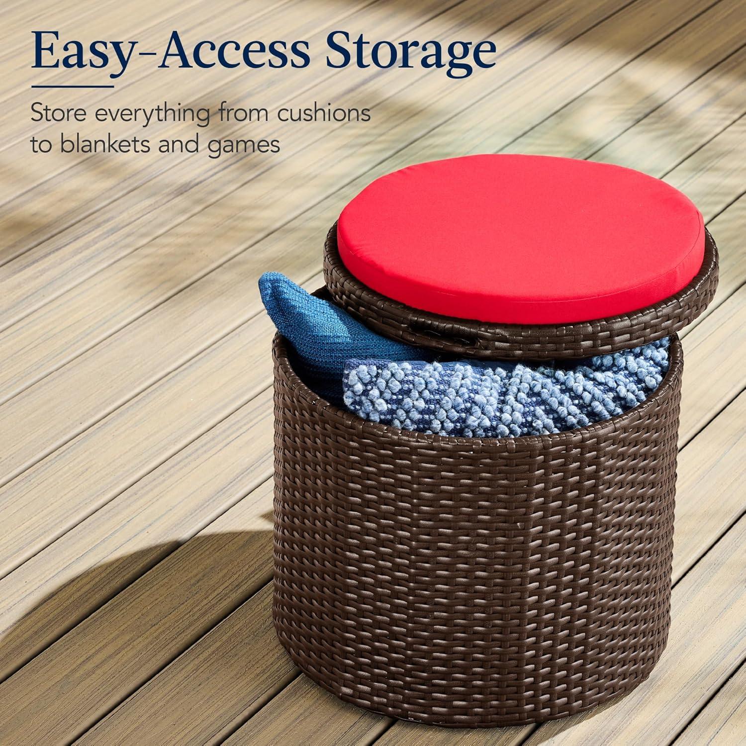Best Choice Products Round Wicker Ottoman, Multipurpose Outdoor Furniture for Patio, Backyard, Additional Seating, Footrest, Side Table w/Storage, Removable Cushions – Brown/Beige(Brown/Red)