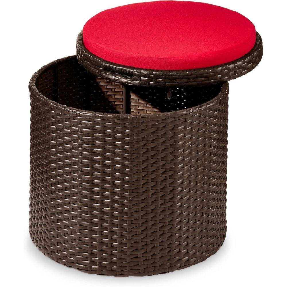 imageBest Choice Products Round Wicker Ottoman Multipurpose Outdoor Furniture for Patio Backyard Additional Seating Footrest Side Table wStorage Removable Cushions  BrownBeigeBrownRed
