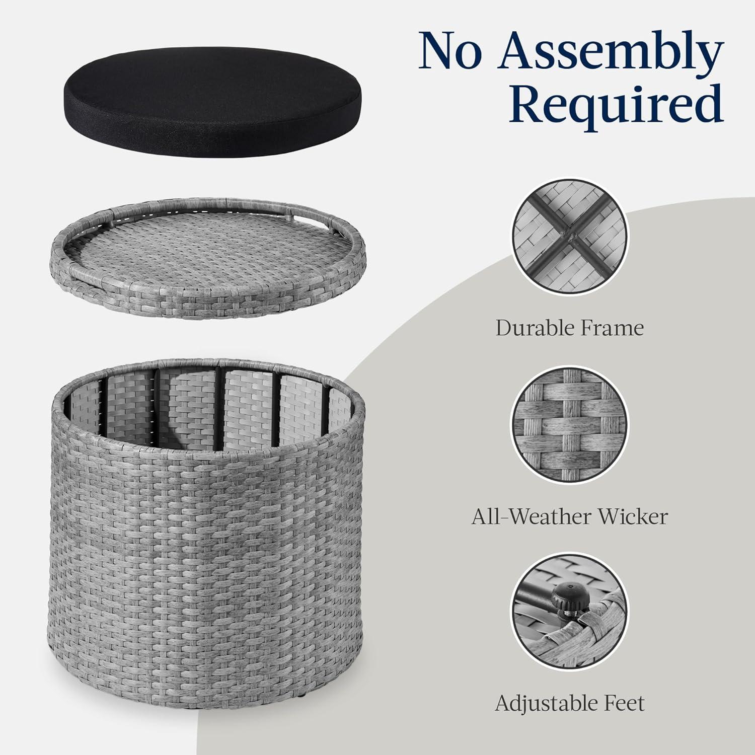 Best Choice Products Round Wicker Ottoman, Multipurpose Outdoor Furniture for Patio, Backyard, Additional Seating, Footrest, Side Table w/Storage, Removable Cushions – Brown/Beige(Gray/Black)