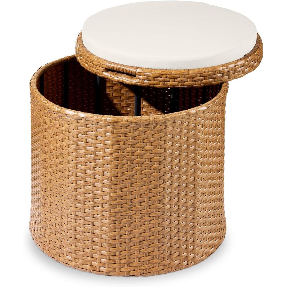 imageBest Choice Products Round Wicker Ottoman Multipurpose Outdoor Furniture for Patio Backyard Additional Seating Footrest Side Table wStorage Removable Cushions  BrownBeigeNaturalIvory