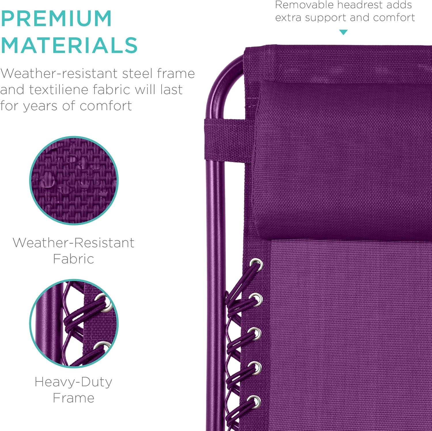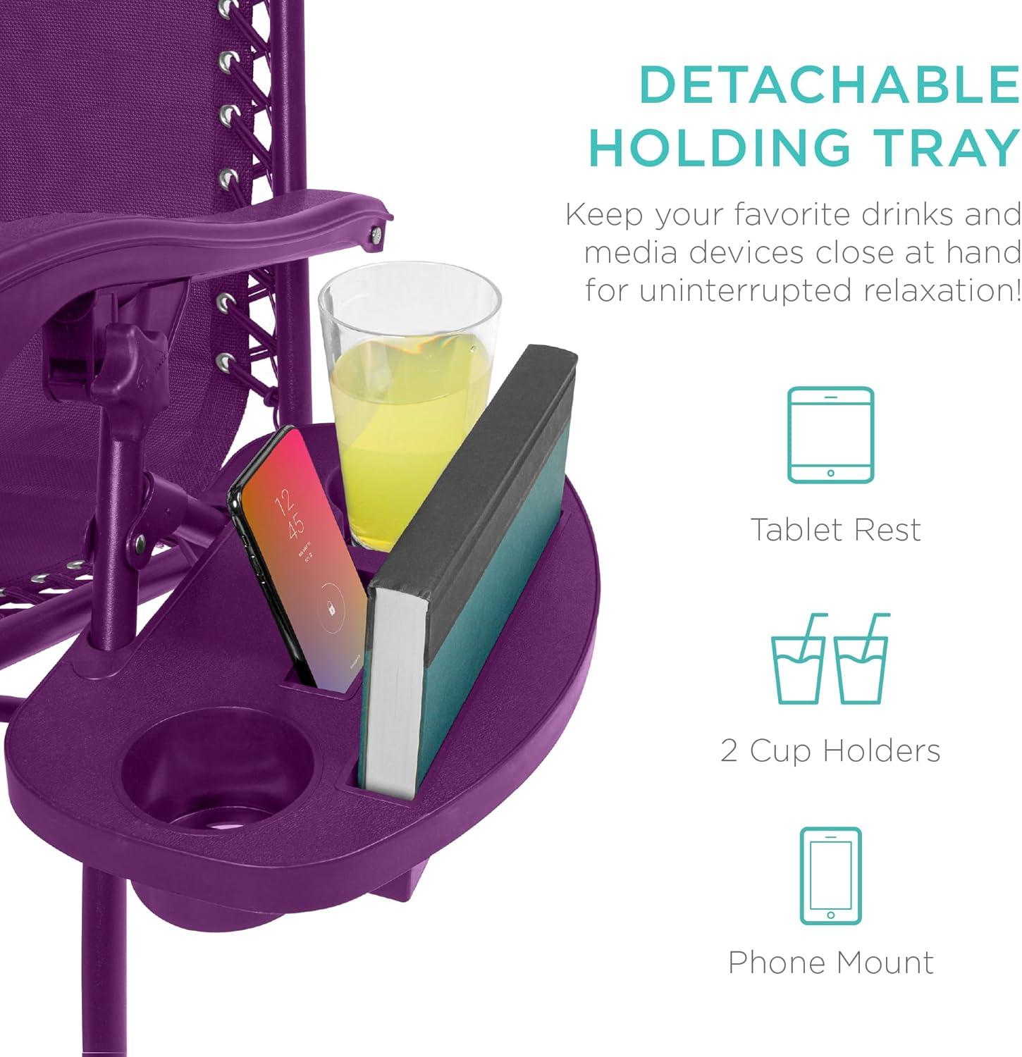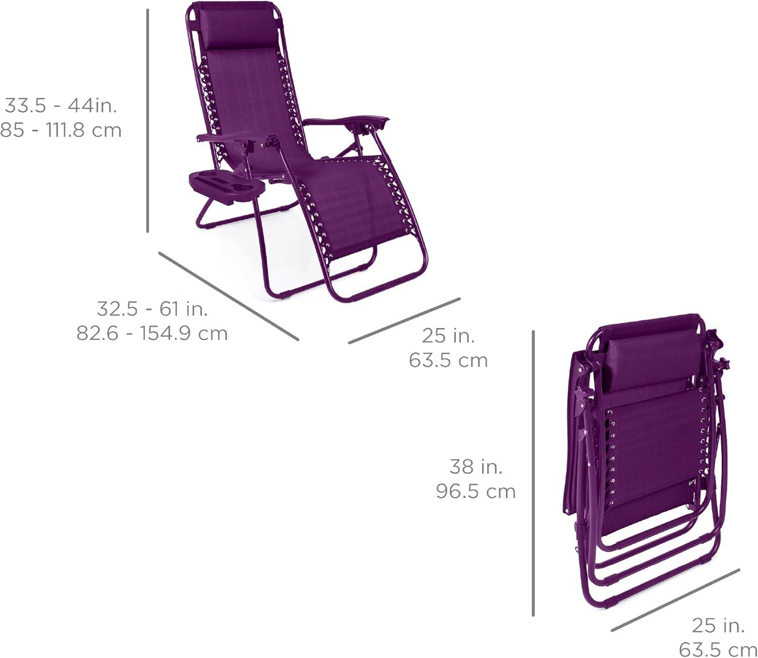 Best Choice Products Set of 2 Adjustable Steel Mesh Zero Gravity Lounge Chair Recliners w/Pillows and Cup Holder Trays – Stardew(Amethyst Purple)