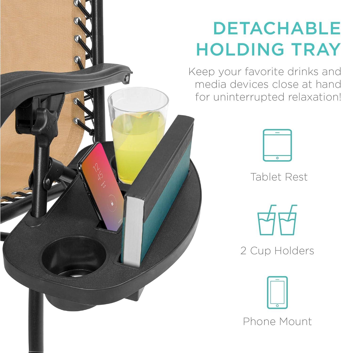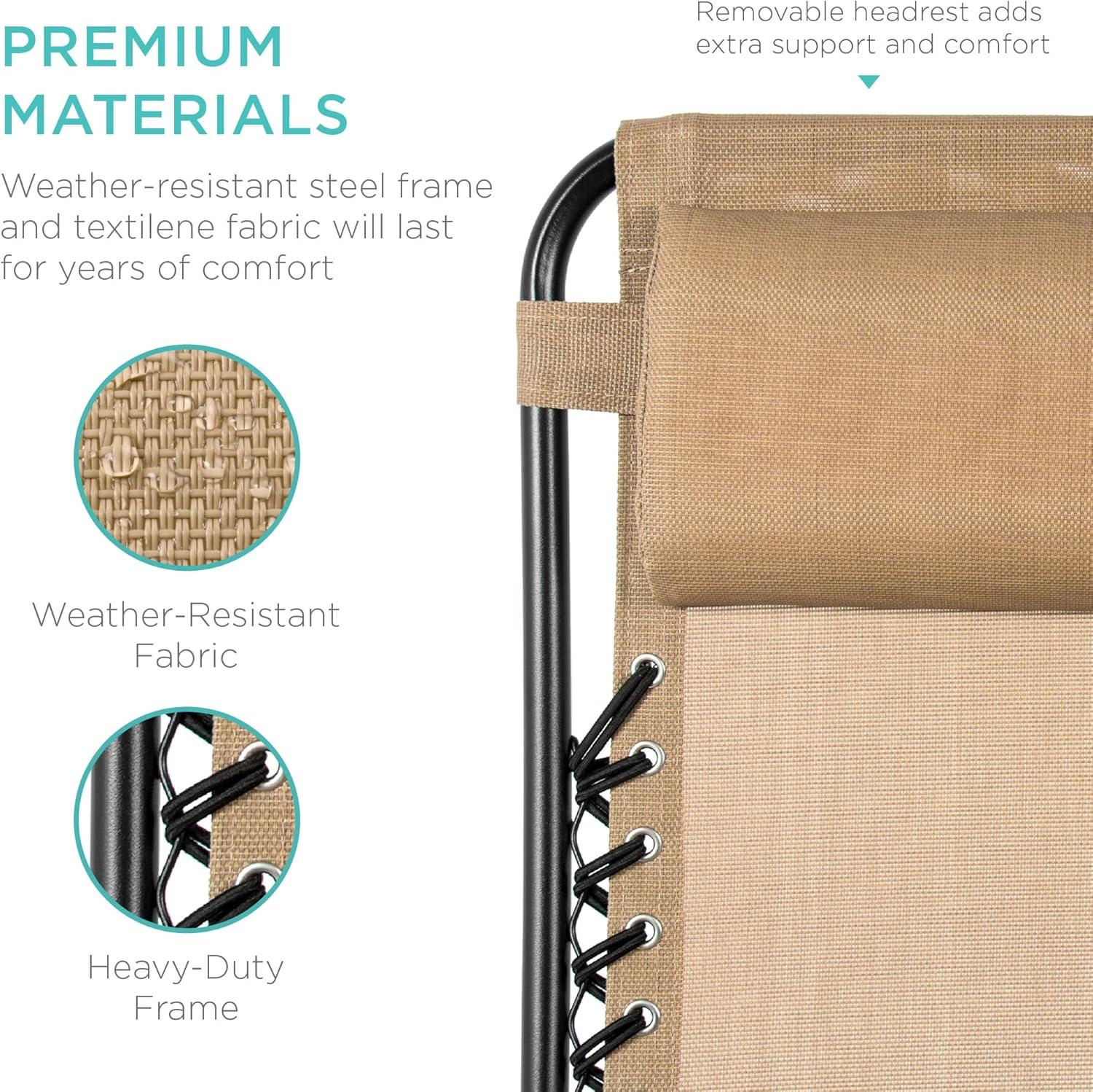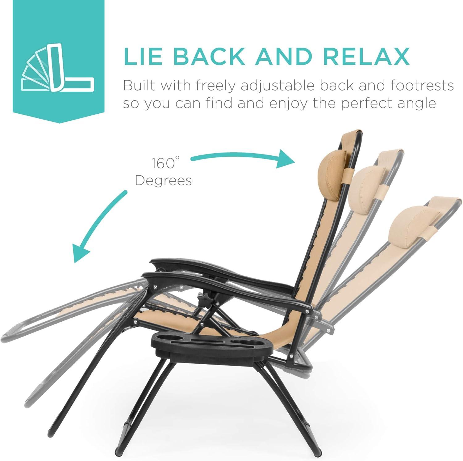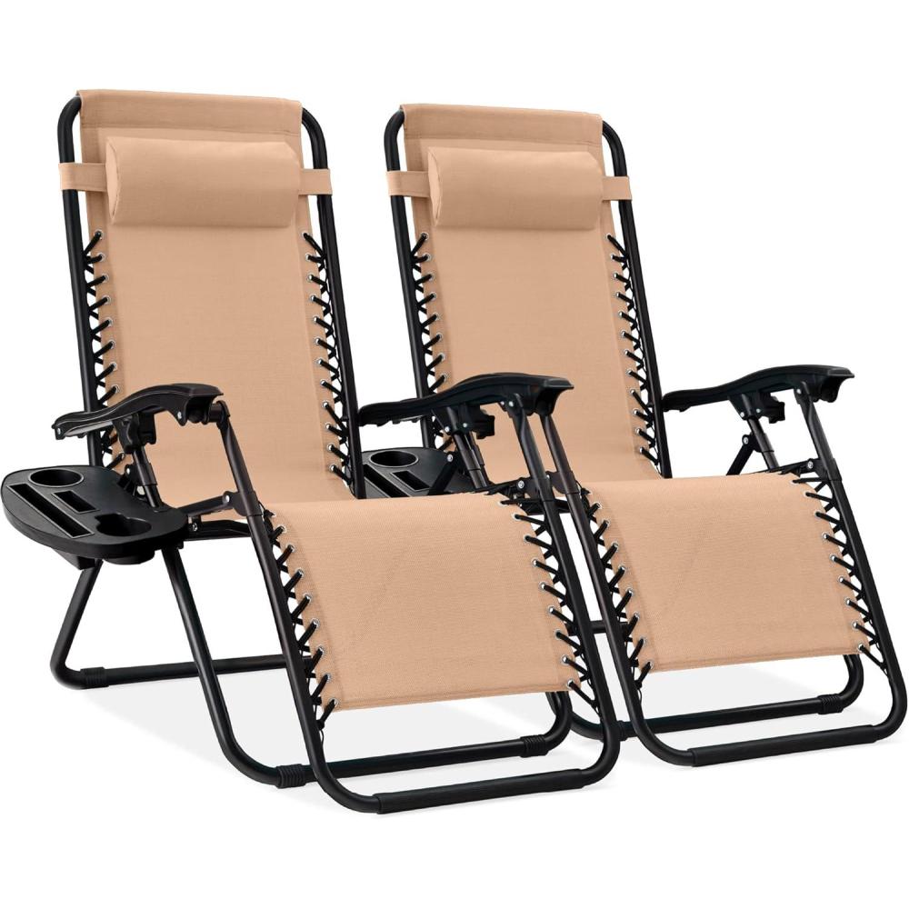 Best Choice Products Set of 2 Adjustable Steel Mesh Zero Gravity Lounge Chair Recliners w/Pillows and Cup Holder Trays – Stardew(Beige)