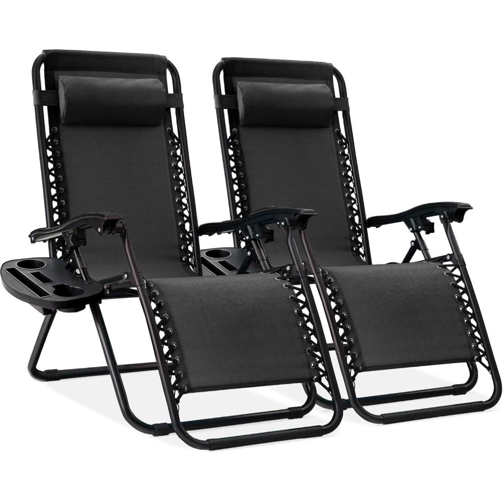imageBest Choice Products Set of 2 Adjustable Steel Mesh Zero Gravity Lounge Chair Recliners wPillows and Cup Holder Trays  StardewBlack