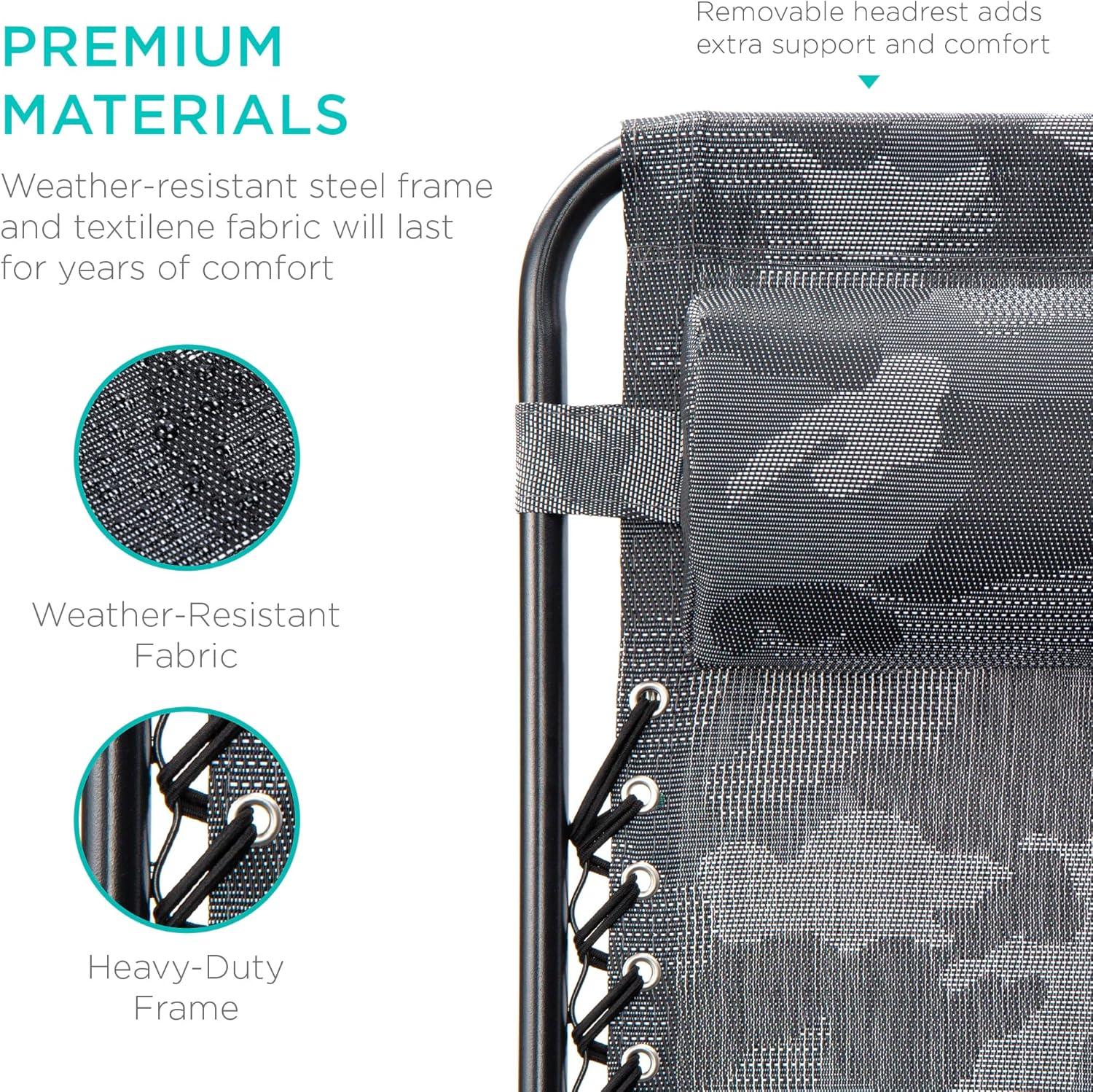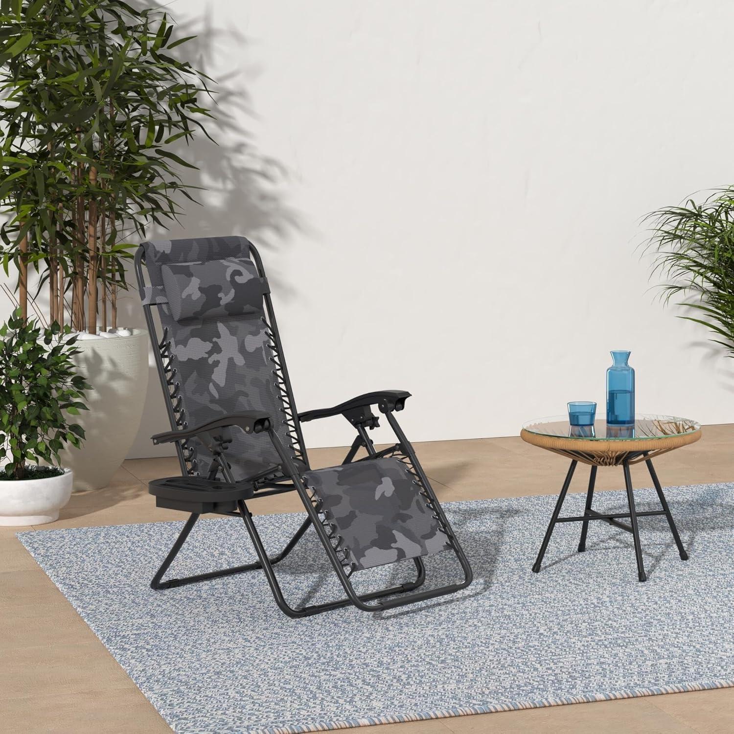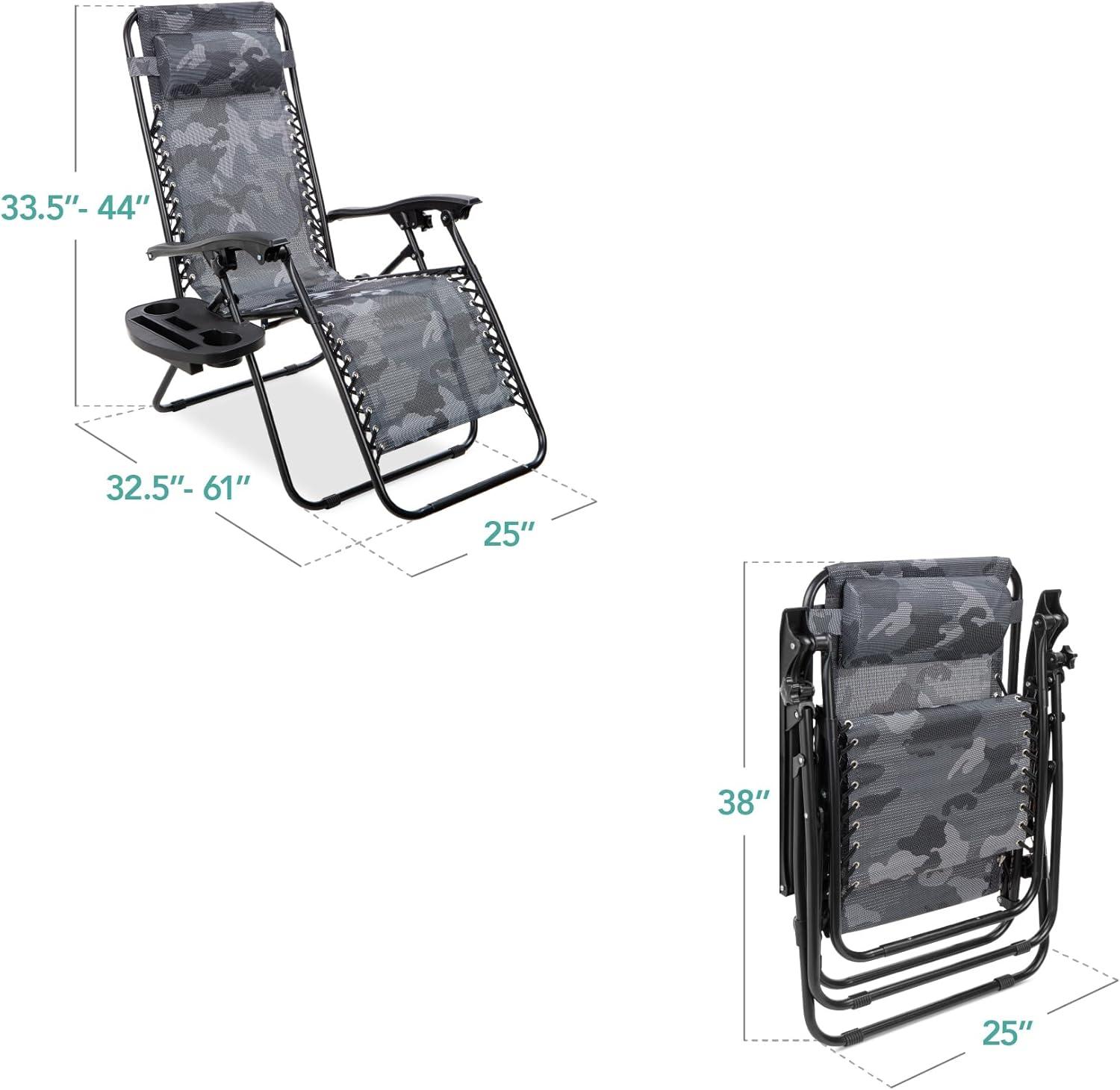 Best Choice Products Set of 2 Adjustable Steel Mesh Zero Gravity Lounge Chair Recliners w/Pillows and Cup Holder Trays - Stardew(Camouflage)
