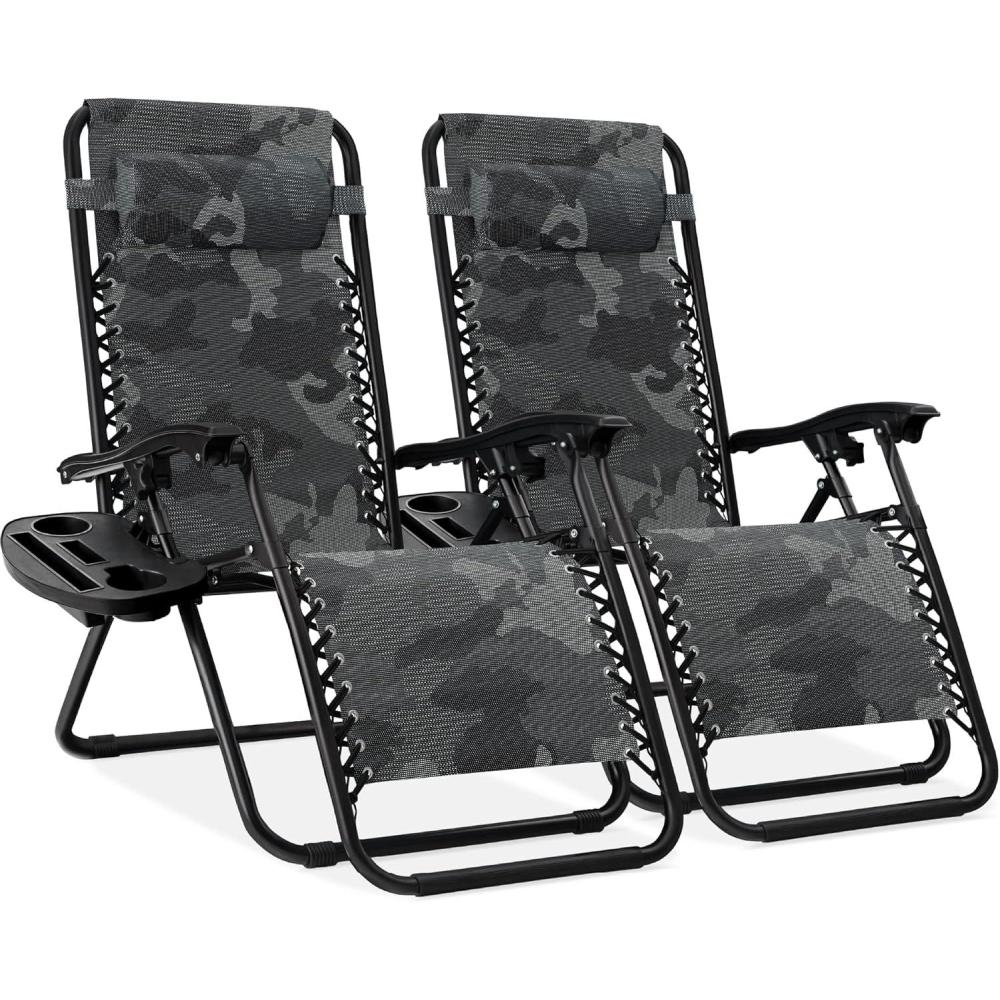Best Choice Products Set of 2 Adjustable Steel Mesh Zero Gravity Lounge Chair Recliners w/Pillows and Cup Holder Trays – Stardew(Camouflage)