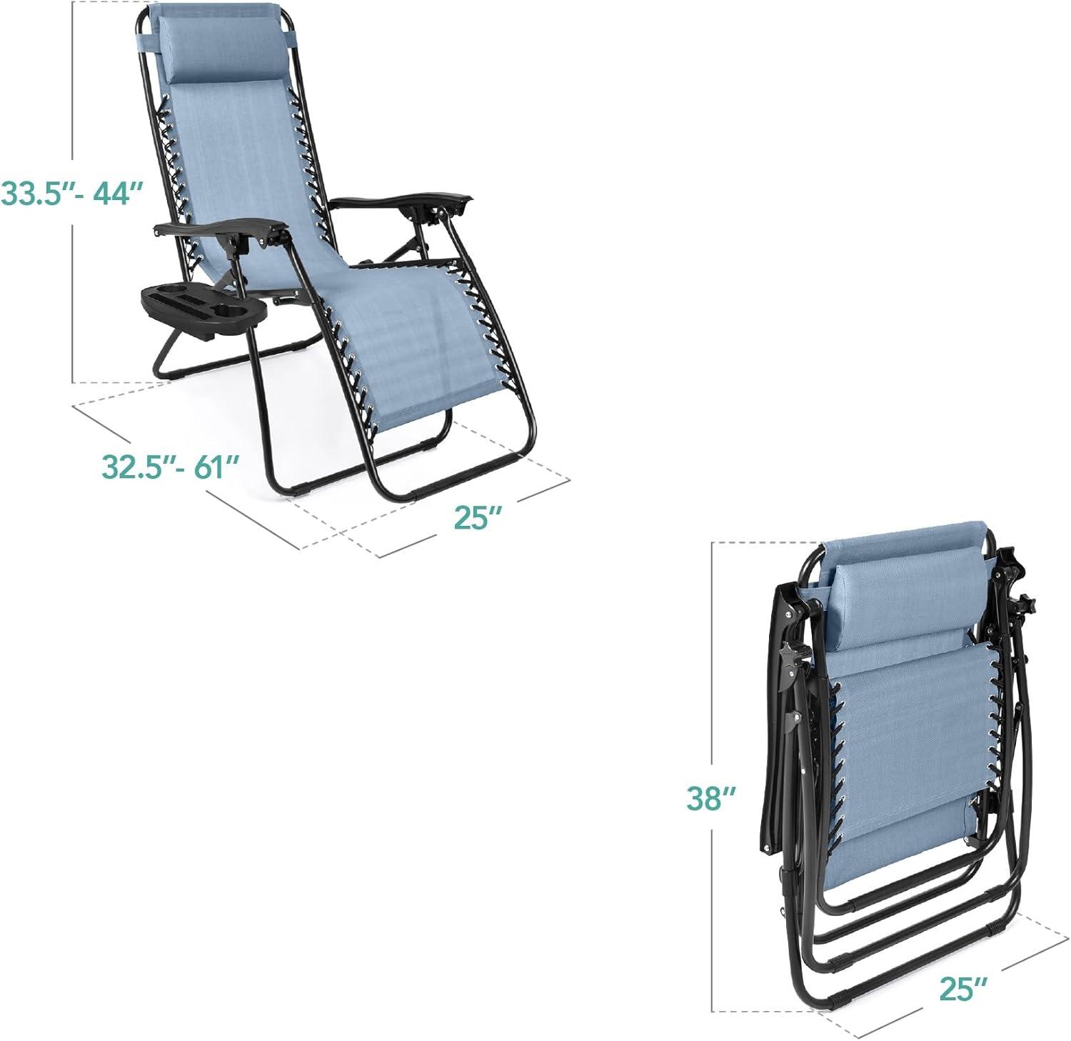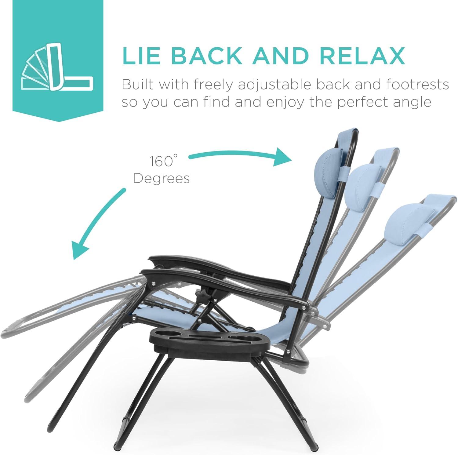 Best Choice Products Set of 2 Adjustable Steel Mesh Zero Gravity Lounge Chair Recliners w/Pillows and Cup Holder Trays – Stardew(Dusty Blue)