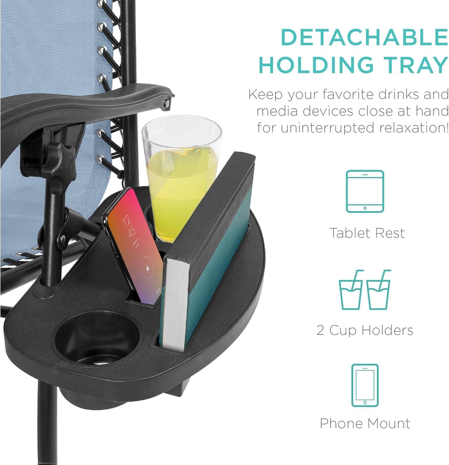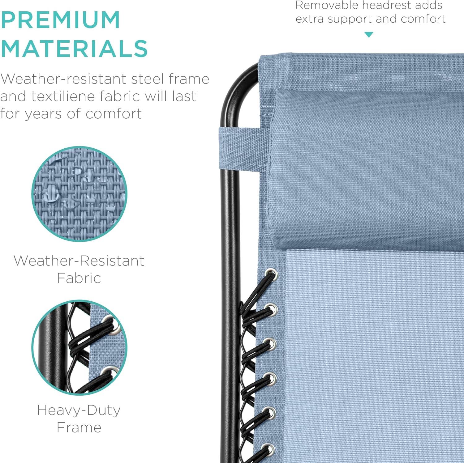 Best Choice Products Set of 2 Adjustable Steel Mesh Zero Gravity Lounge Chair Recliners w/Pillows and Cup Holder Trays - Stardew(Dusty Blue)
