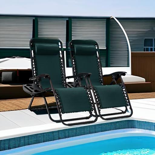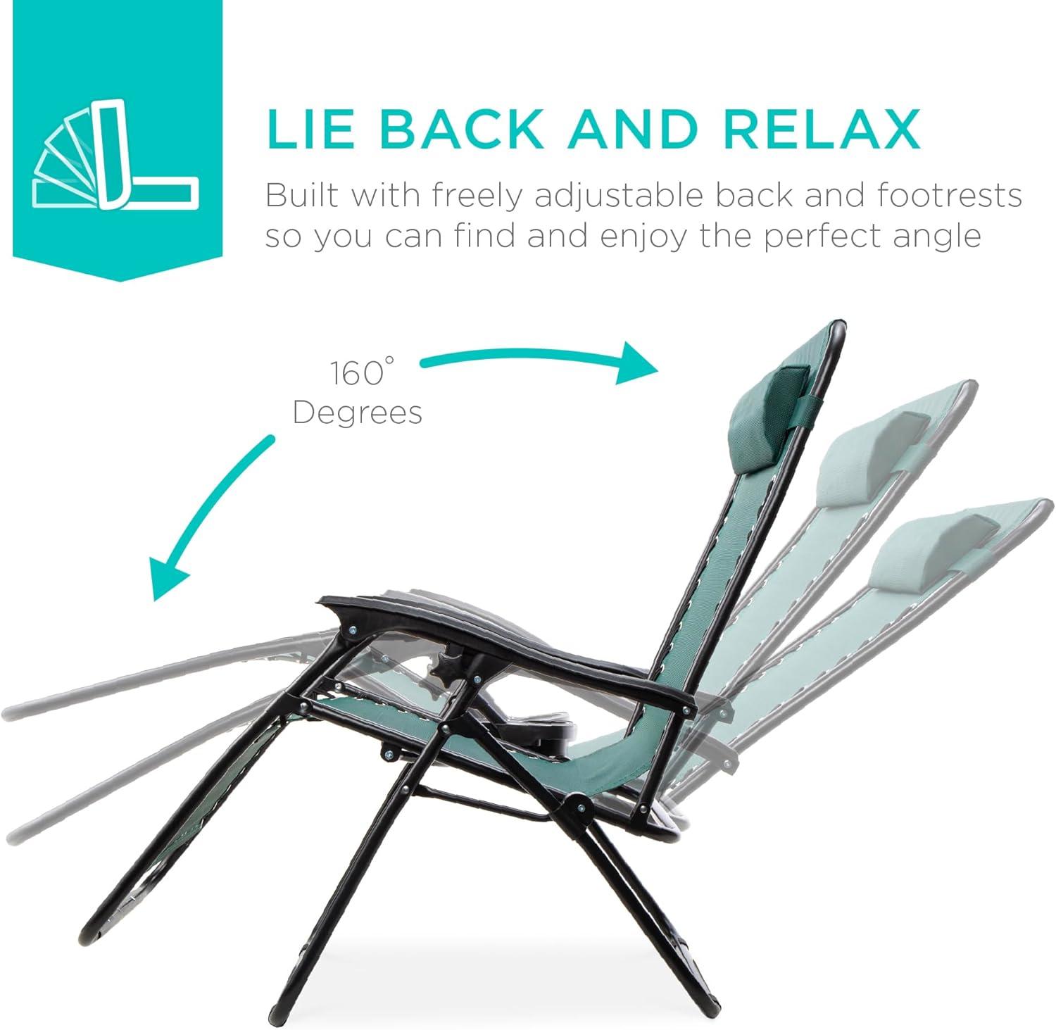 Best Choice Products Set of 2 Adjustable Steel Mesh Zero Gravity Lounge Chair Recliners w/Pillows and Cup Holder Trays – Stardew(Forest Green)