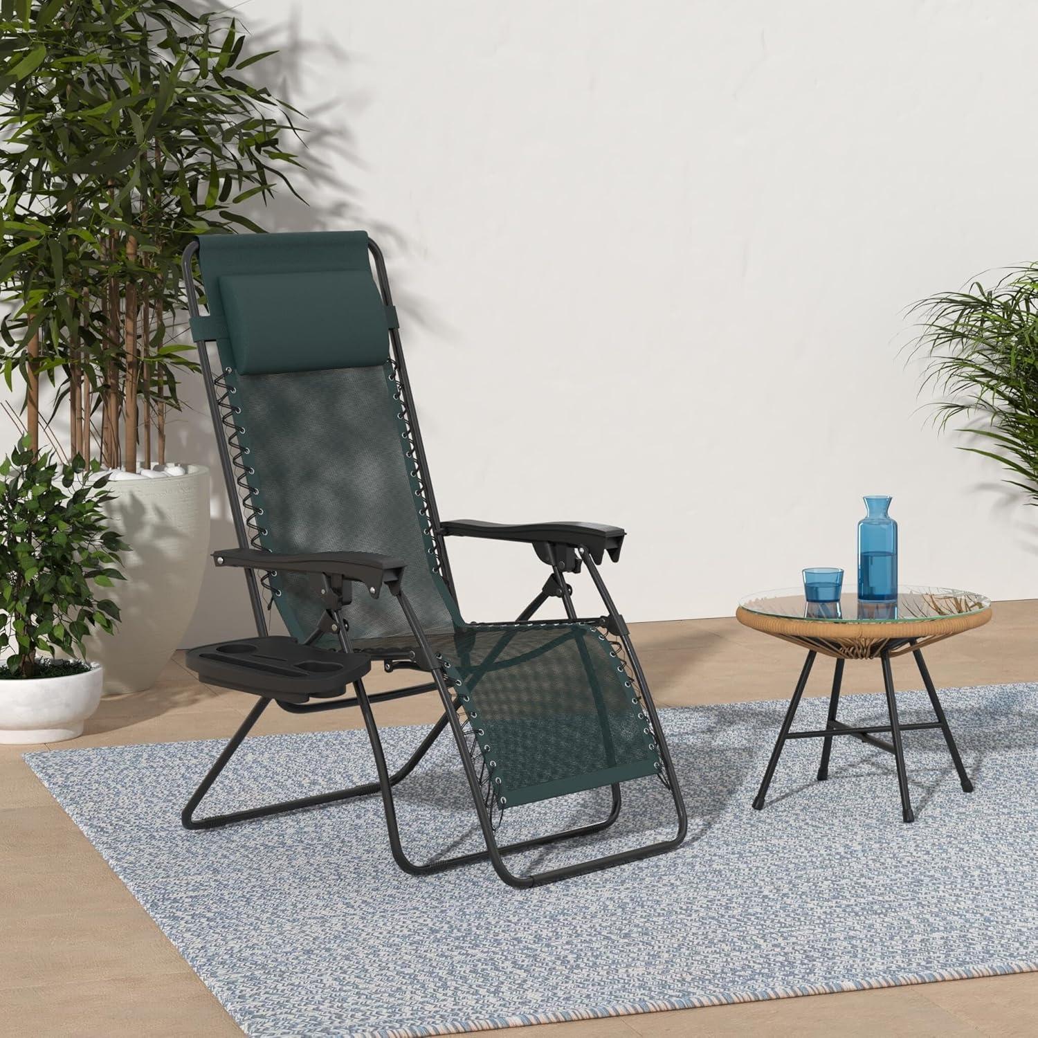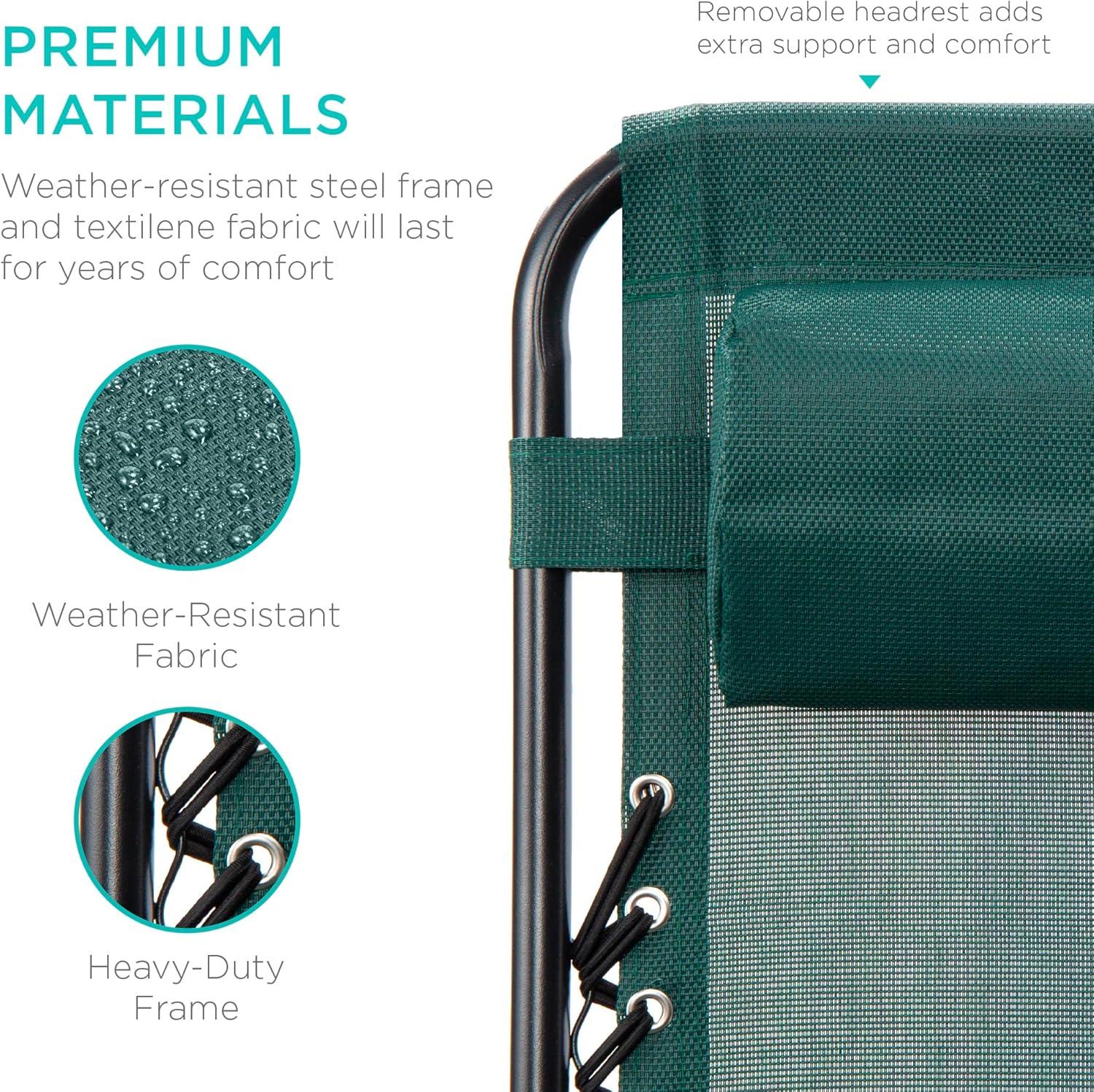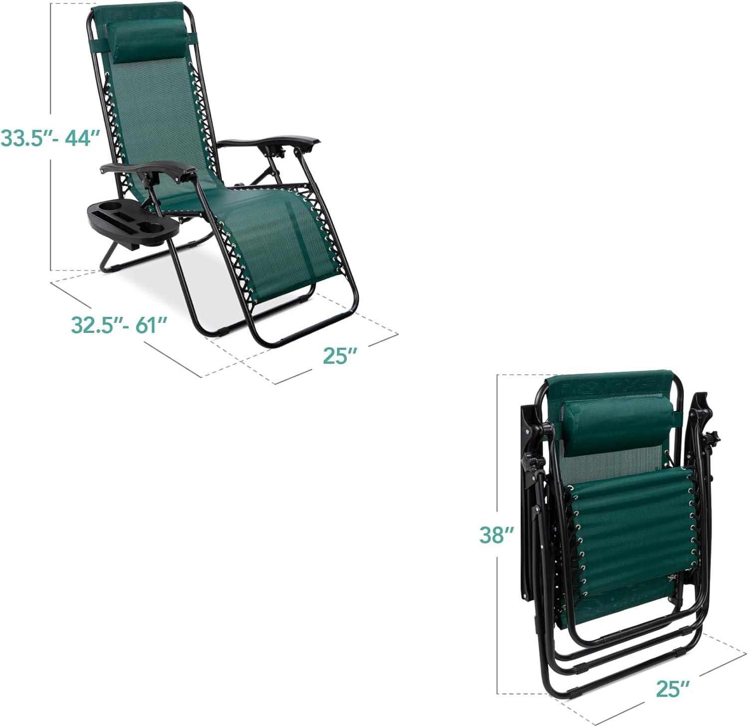 Best Choice Products Set of 2 Adjustable Steel Mesh Zero Gravity Lounge Chair Recliners w/Pillows and Cup Holder Trays - Stardew(Forest Green)
