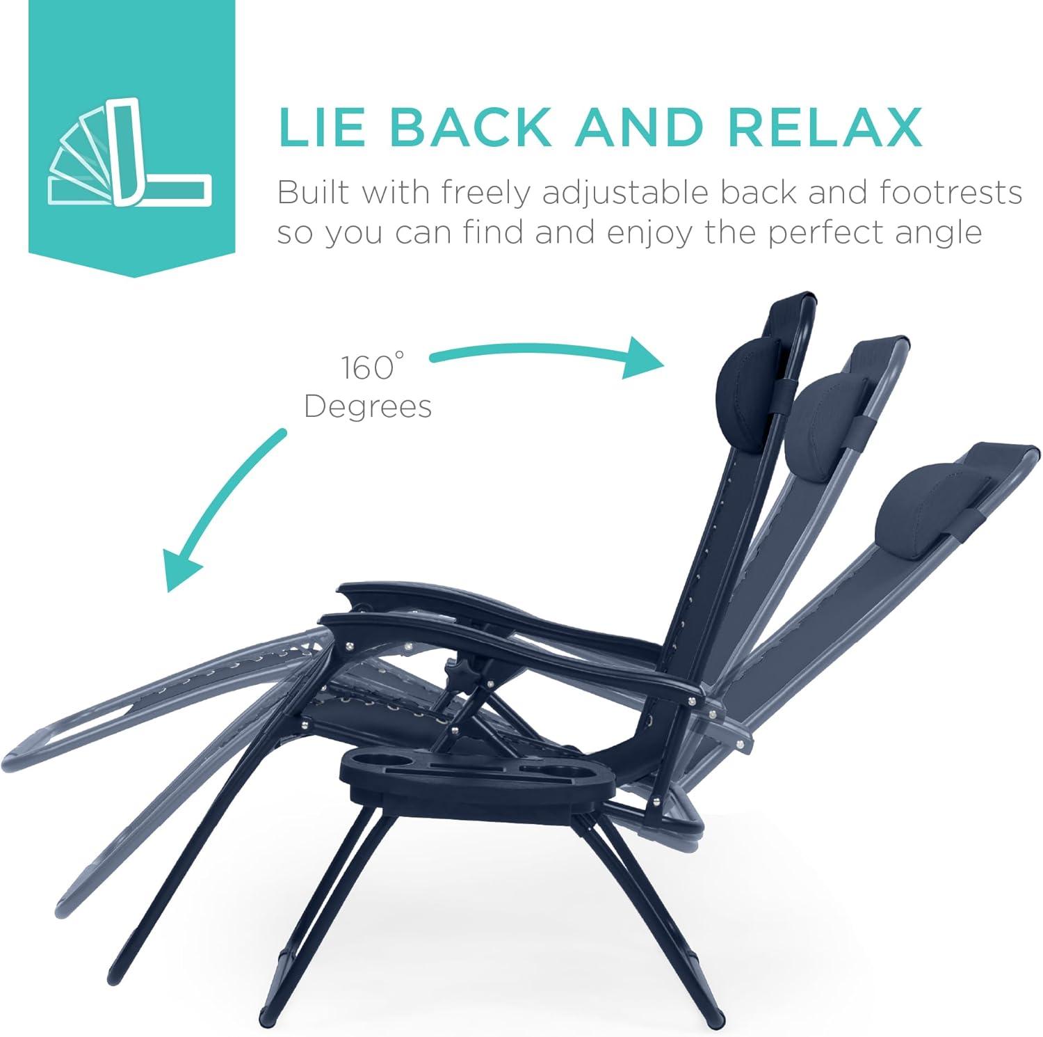 Best Choice Products Set of 2 Adjustable Steel Mesh Zero Gravity Lounge Chair Recliners w/Pillows and Cup Holder Trays – Stardew(Navy Blue)