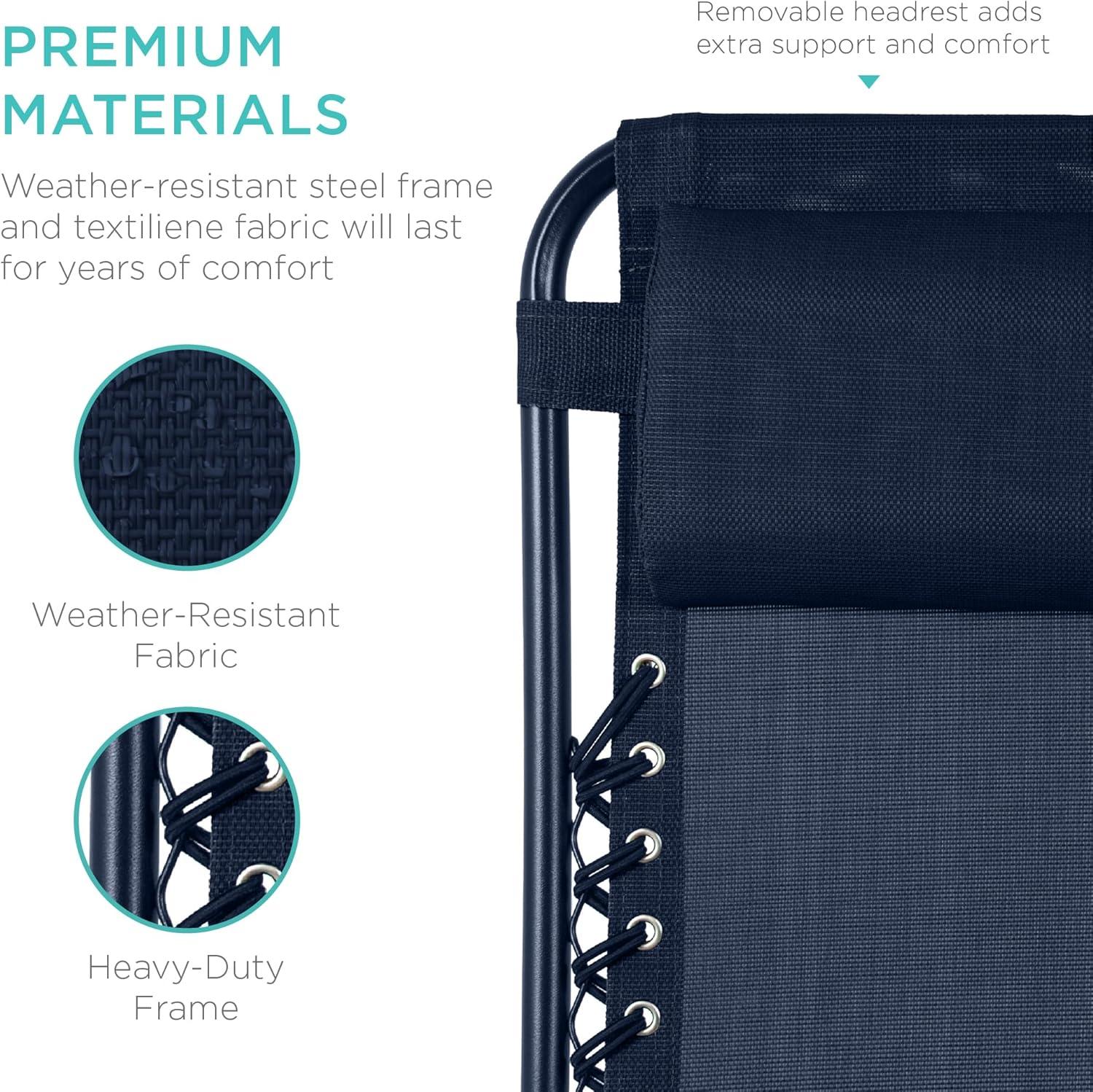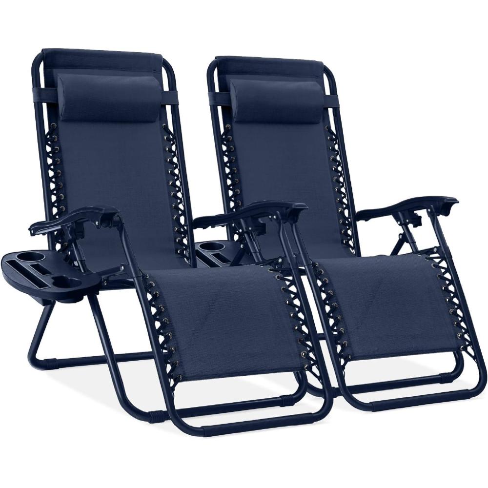 Best Choice Products Set of 2 Adjustable Steel Mesh Zero Gravity Lounge Chair Recliners w/Pillows and Cup Holder Trays - Stardew(Navy)