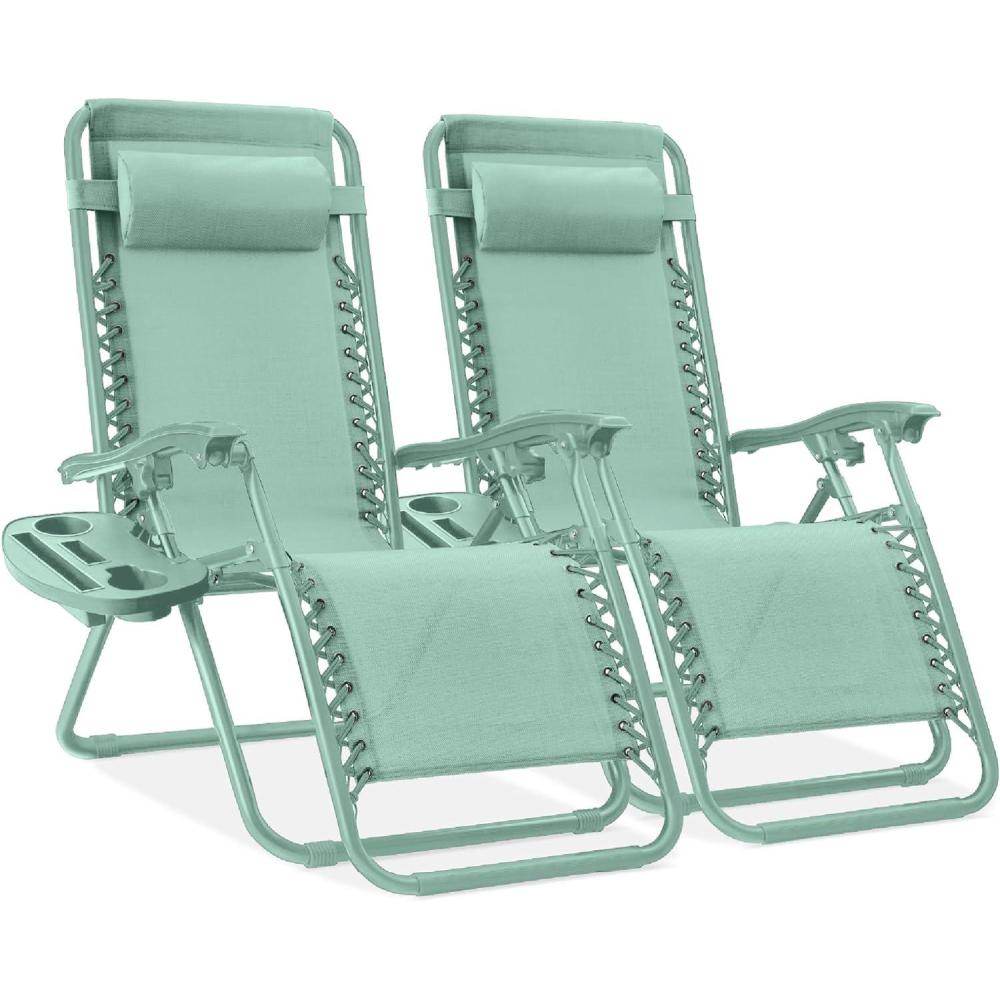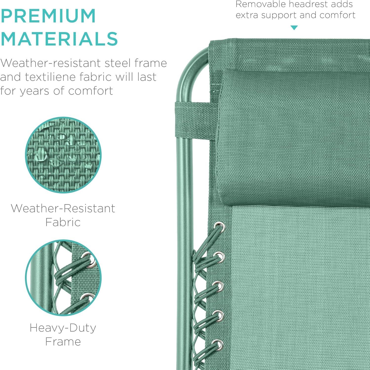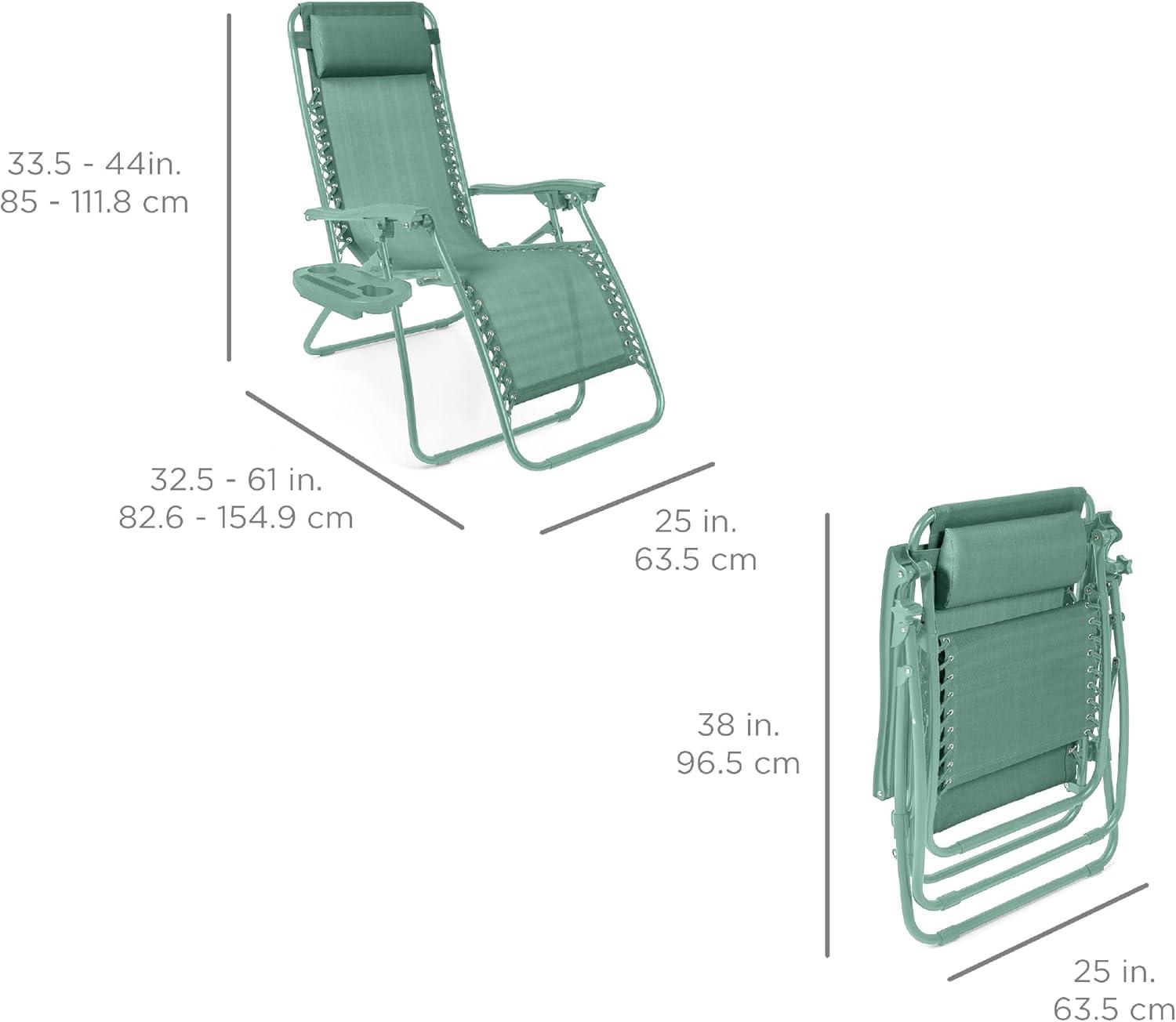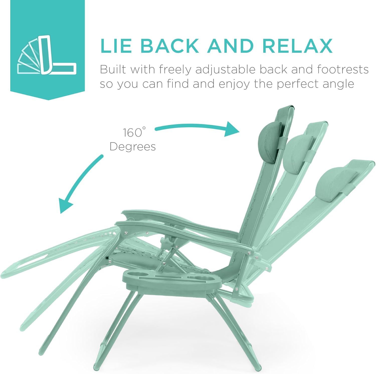 Best Choice Products Set of 2 Adjustable Steel Mesh Zero Gravity Lounge Chair Recliners w/Pillows and Cup Holder Trays – Stardew(Seafoam)