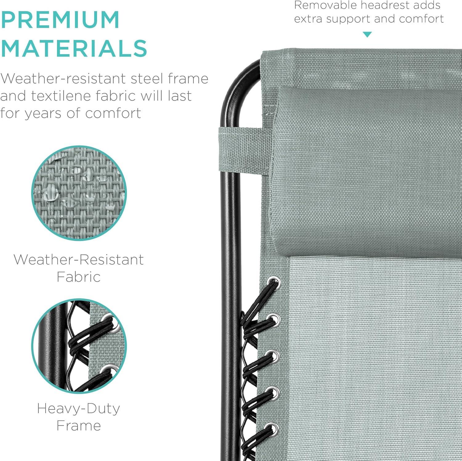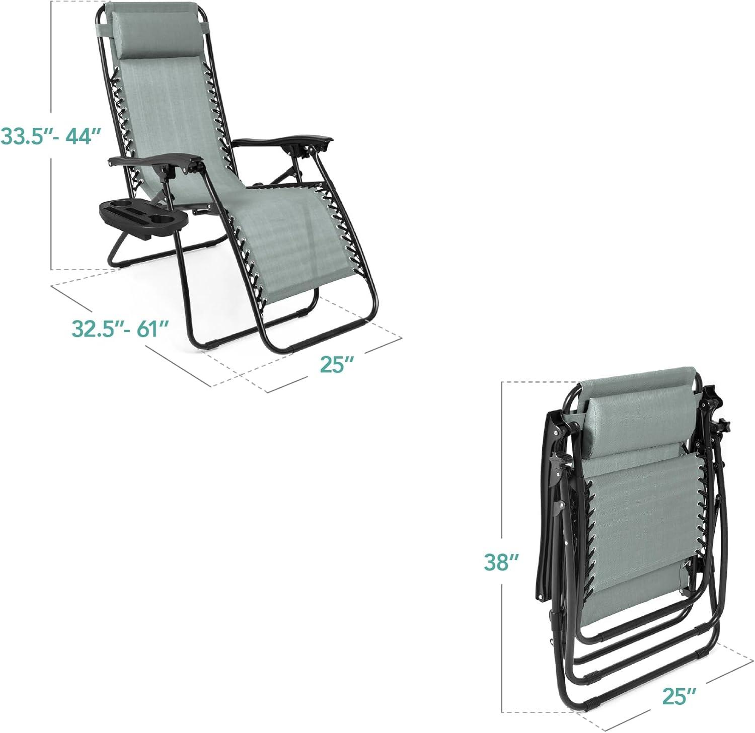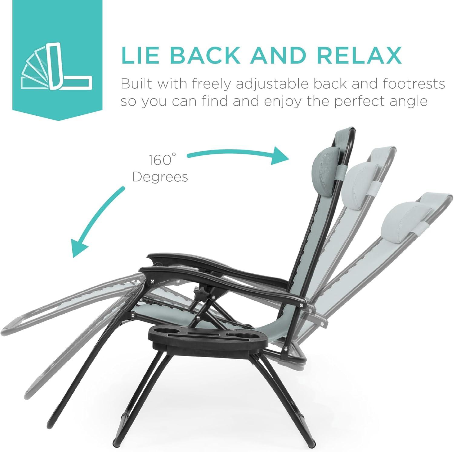 Best Choice Products Set of 2 Adjustable Steel Mesh Zero Gravity Lounge Chair Recliners w/Pillows and Cup Holder Trays – Stardew(Stardew)