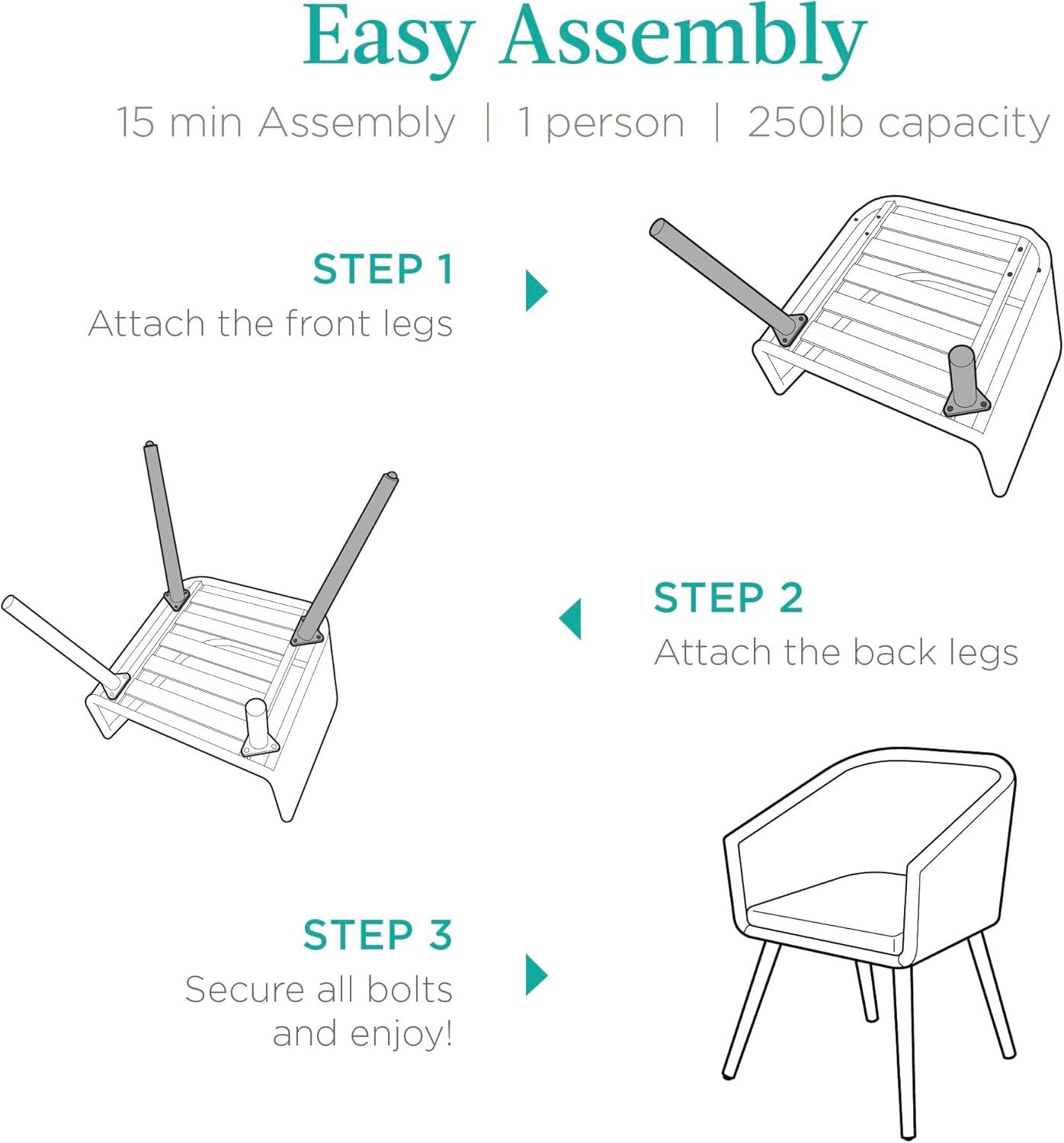 EASY ASSEMBLY: Enjoy a set of two chairs in as little as 15 minutes; a straightforward 3-step assembly for your convenience