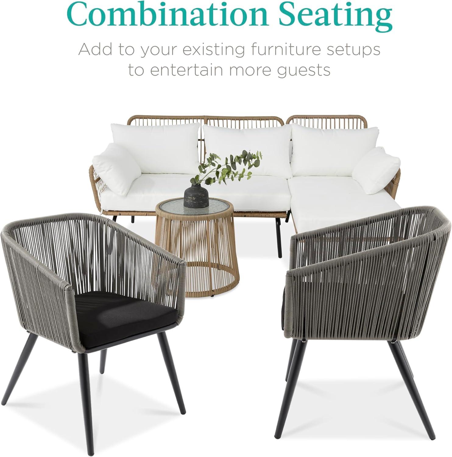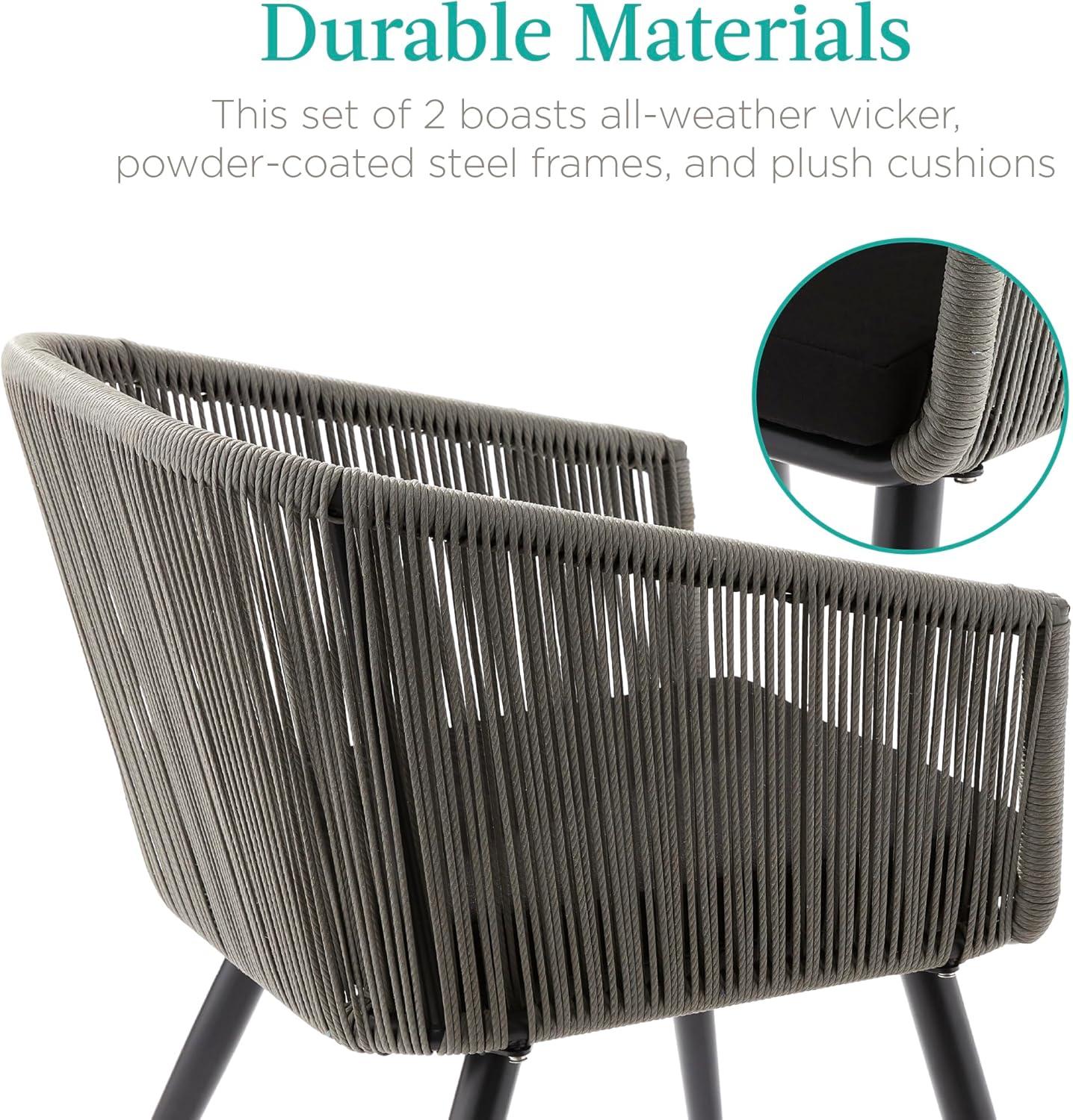 Best Choice Products Set of 2 Patio Dining Chairs, Outdoor Seating Set for Backyard, Poolside, Balcony, Indoor Use w/Woven Wicker Design, 250lb Weight Capacity – Natural/Ivory(Gray/Black)