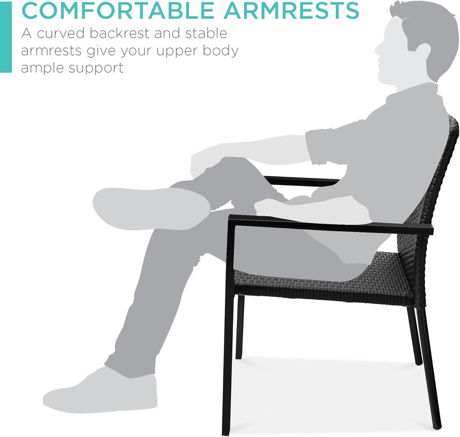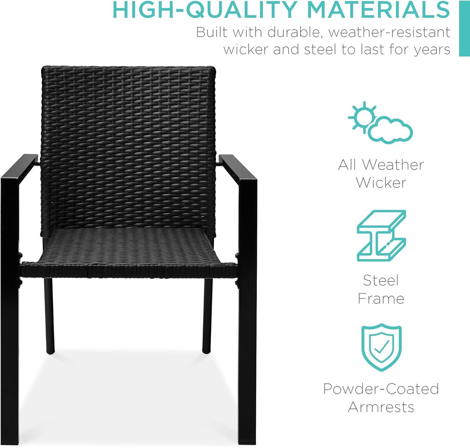 Best Choice Products Set of 2 Stackable Outdoor Wicker Dining Chairs All-Weather Firepit Armchair w/Armrests, Steel Frame for Patio, Deck, Garden, Yard – Brown(Black)