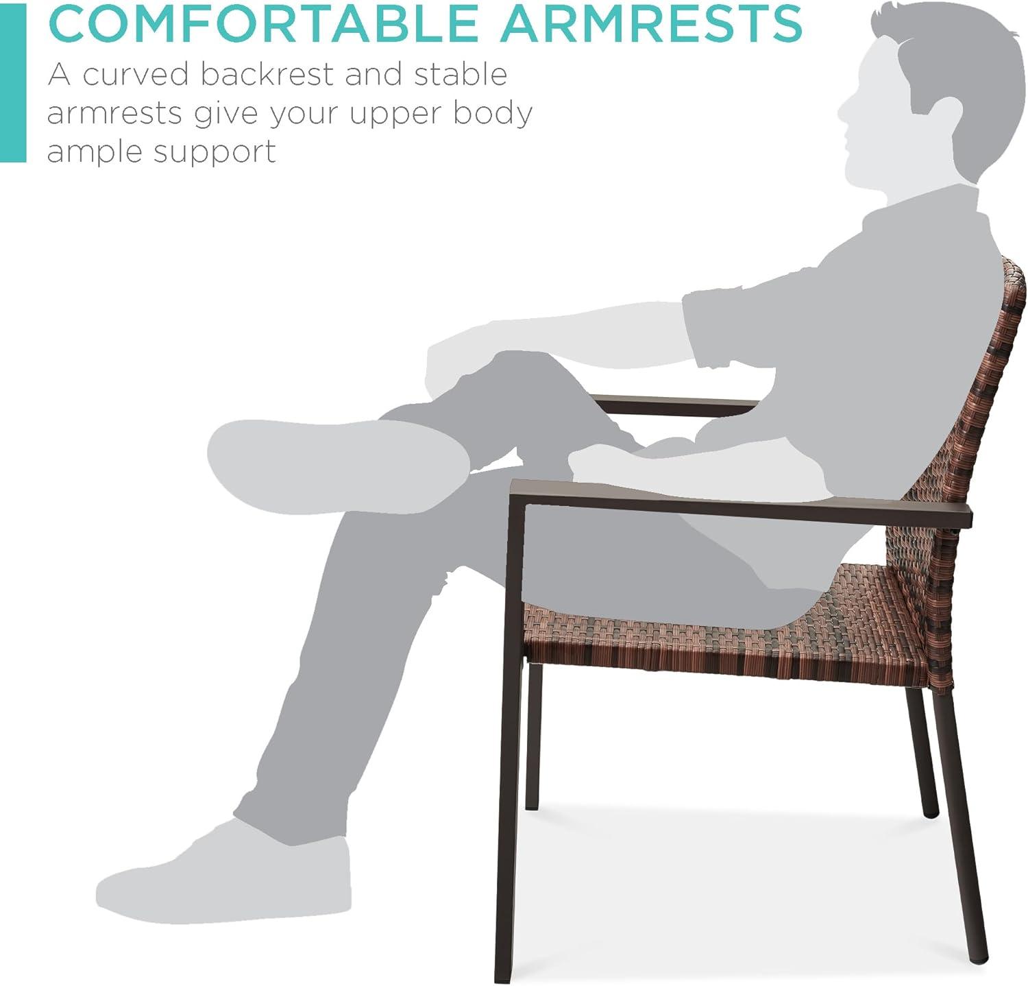 Best Choice Products Set of 2 Stackable Outdoor Wicker Dining Chairs All-Weather Firepit Armchair w/Armrests, Steel Frame for Patio, Deck, Garden, Yard – Brown(Natural)