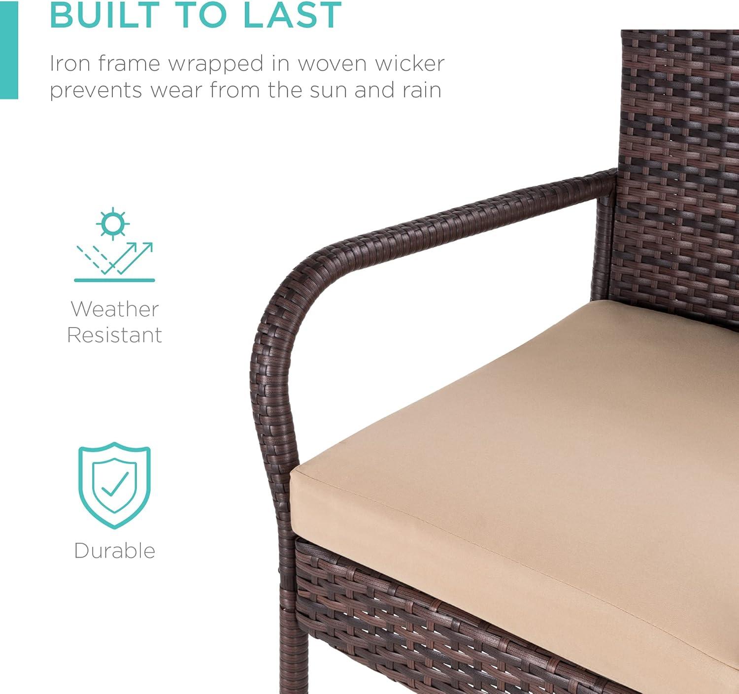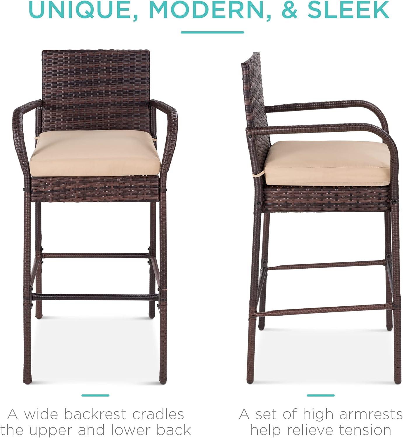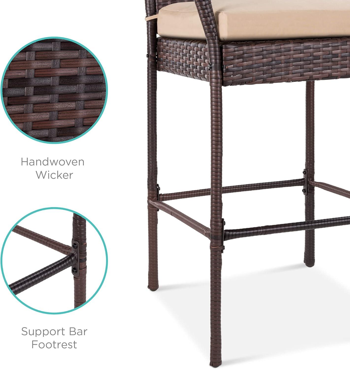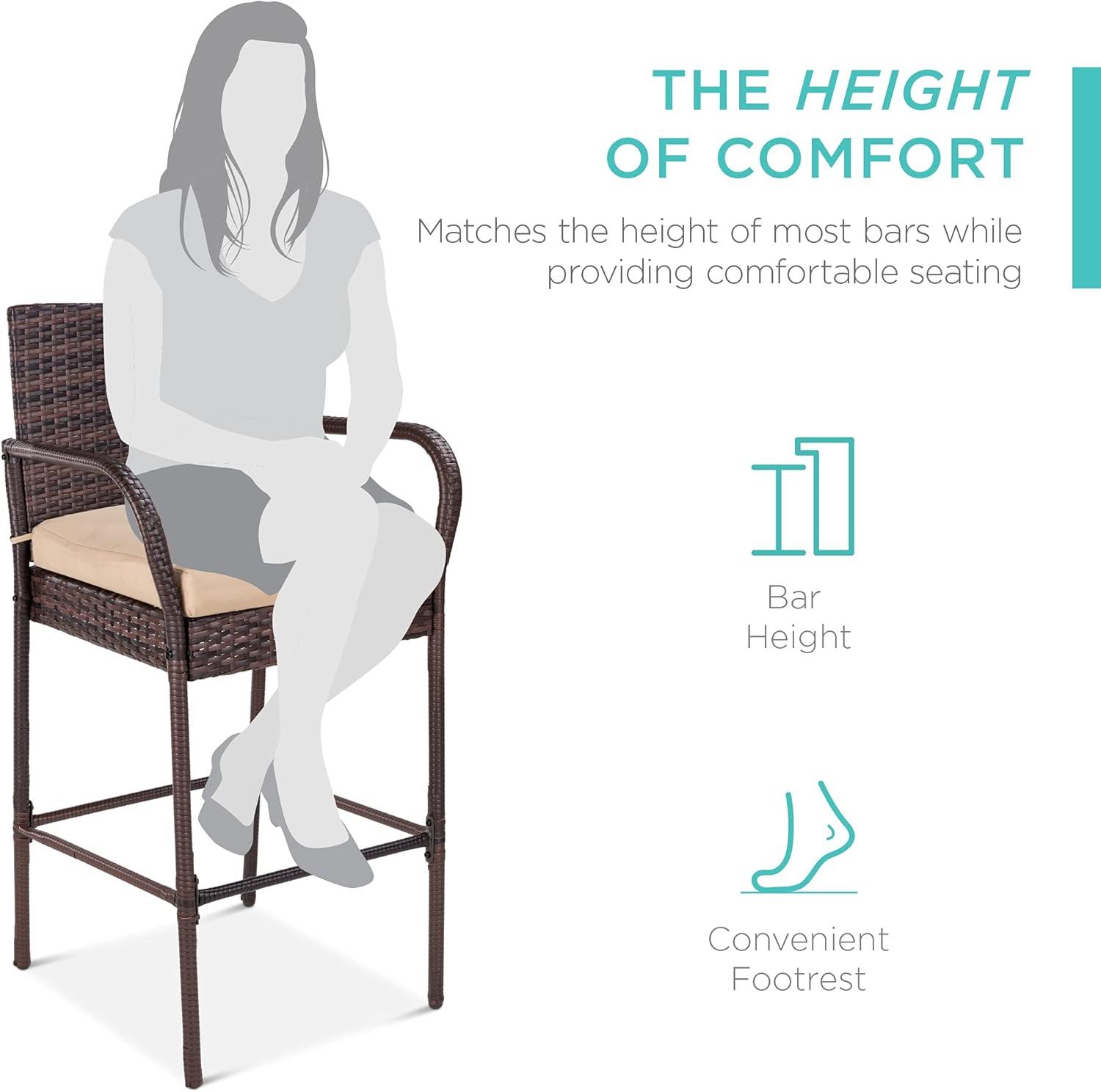 Best Choice Products Set of 2 Wicker Bar Stools, Indoor Outdoor Bar Height Chairs w/Cushion, Footrests, Armrests for Backyard, Patio, Pool, Garden, Deck – Gray(Brown)