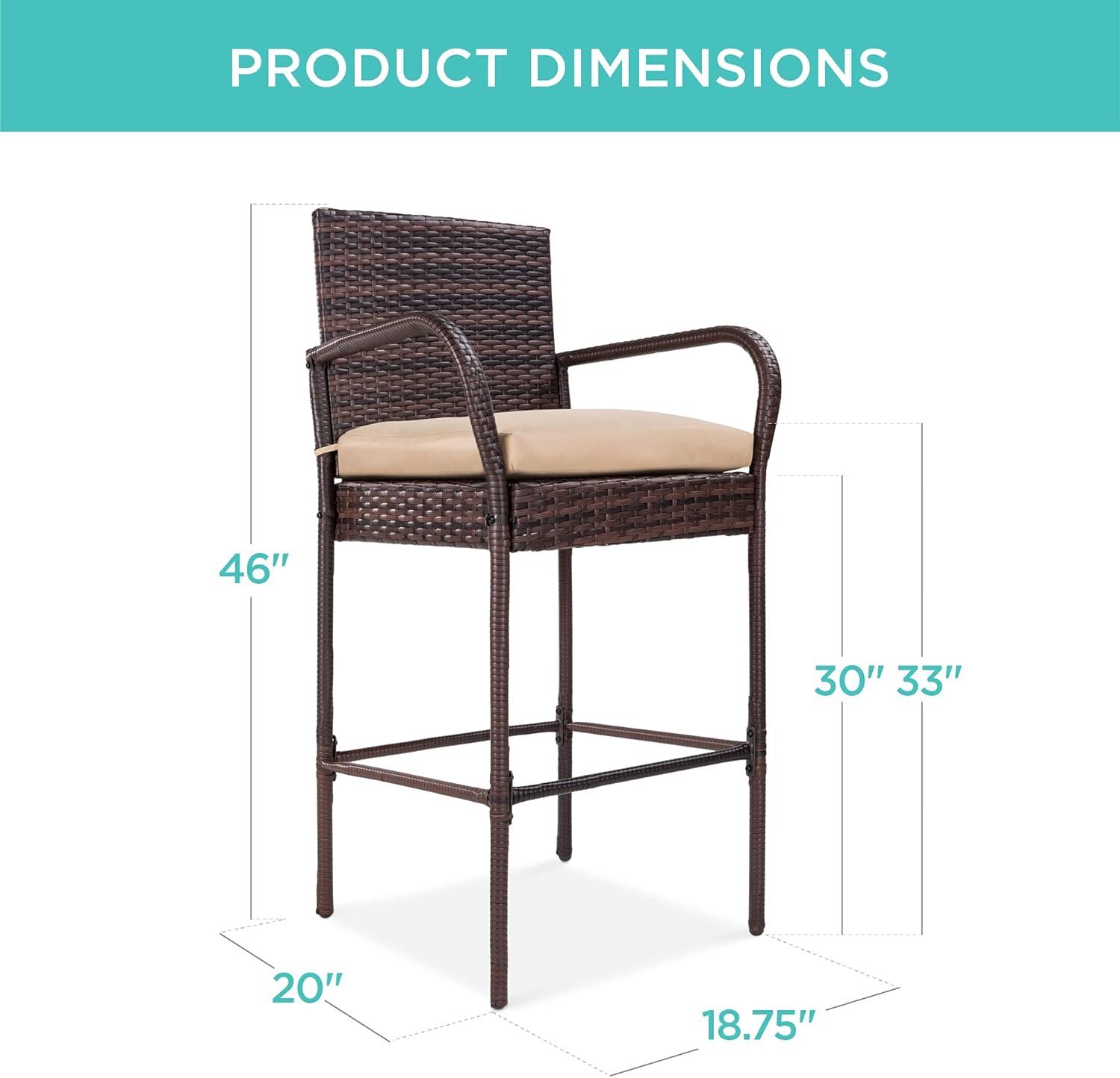Best Choice Products Set of 2 Wicker Bar Stools, Indoor Outdoor Bar Height Chairs w/Cushion, Footrests, Armrests for Backyard, Patio, Pool, Garden, Deck - Gray(Brown)