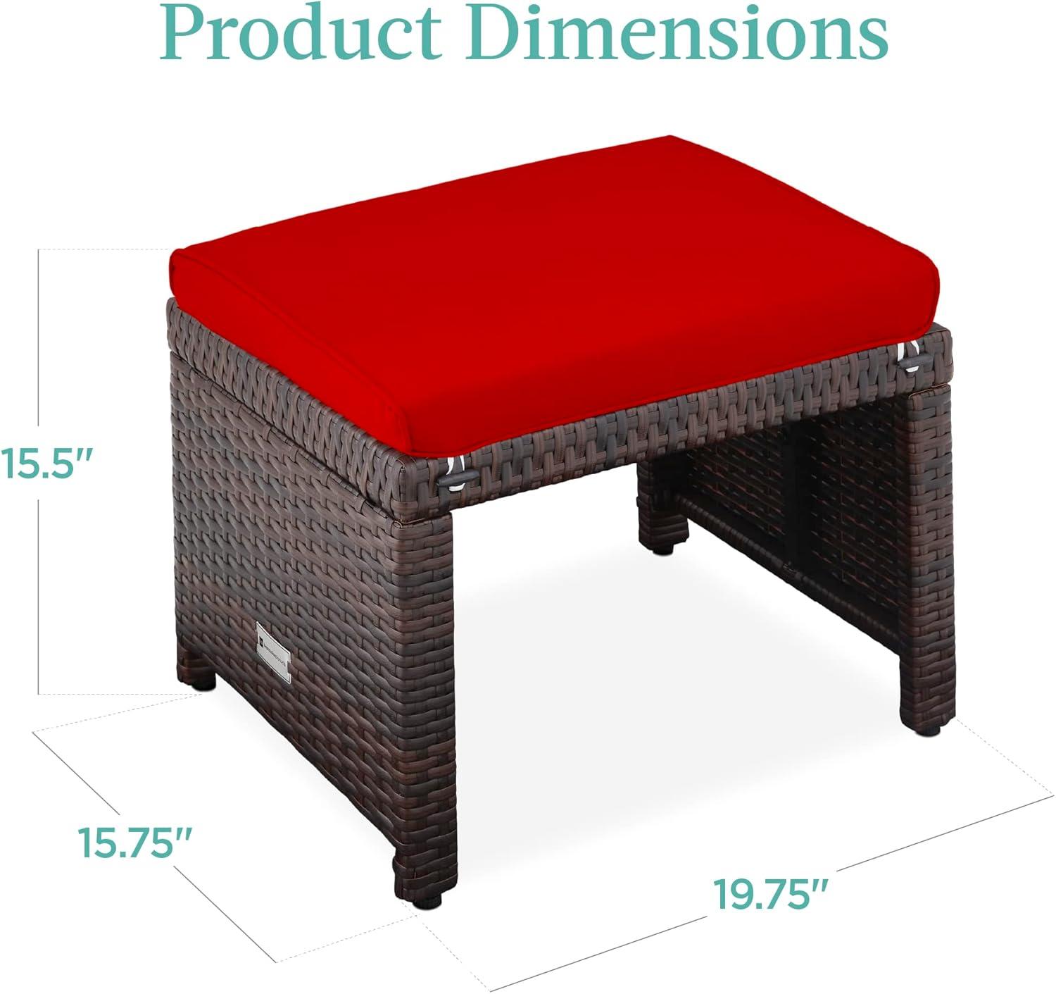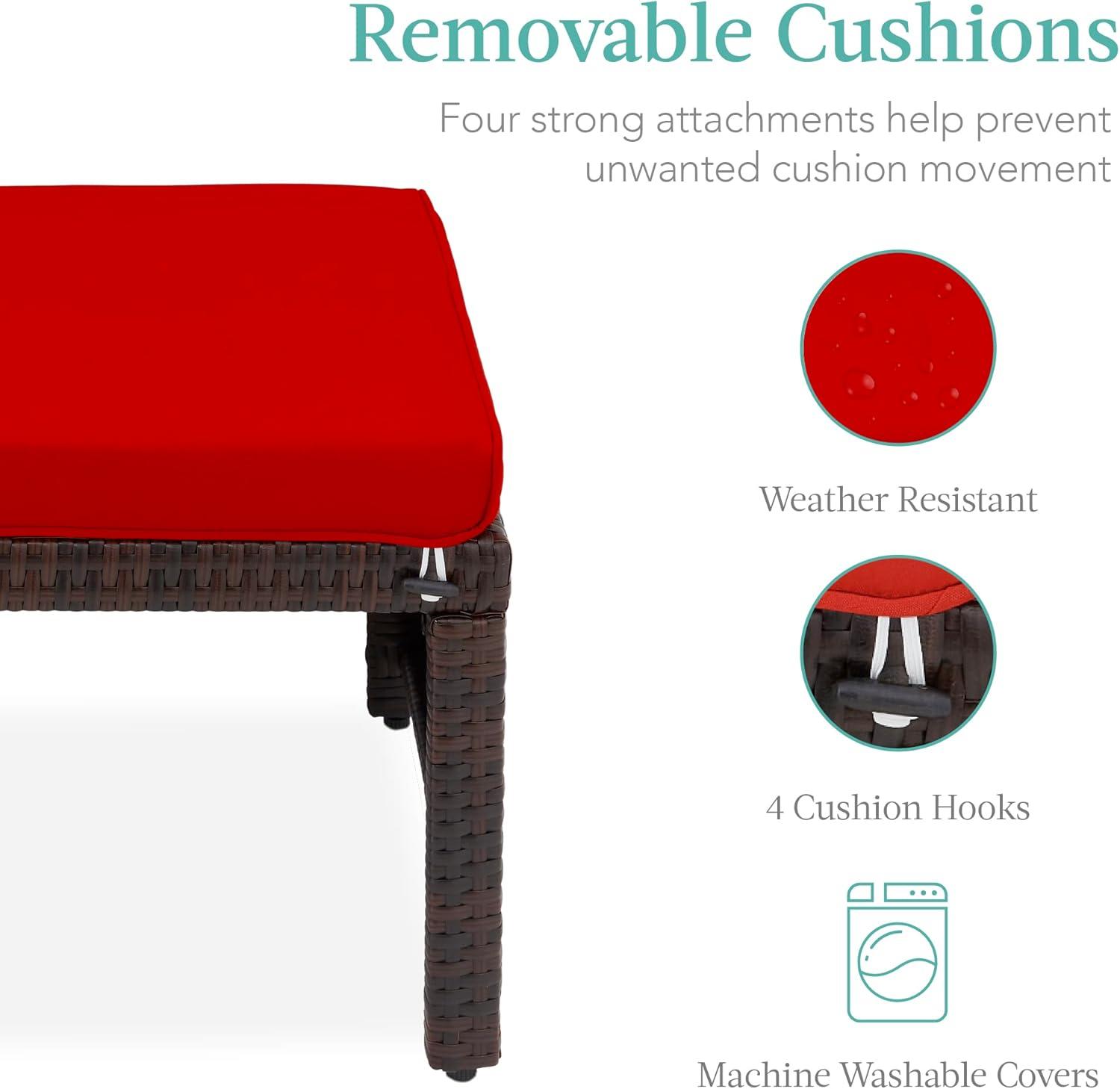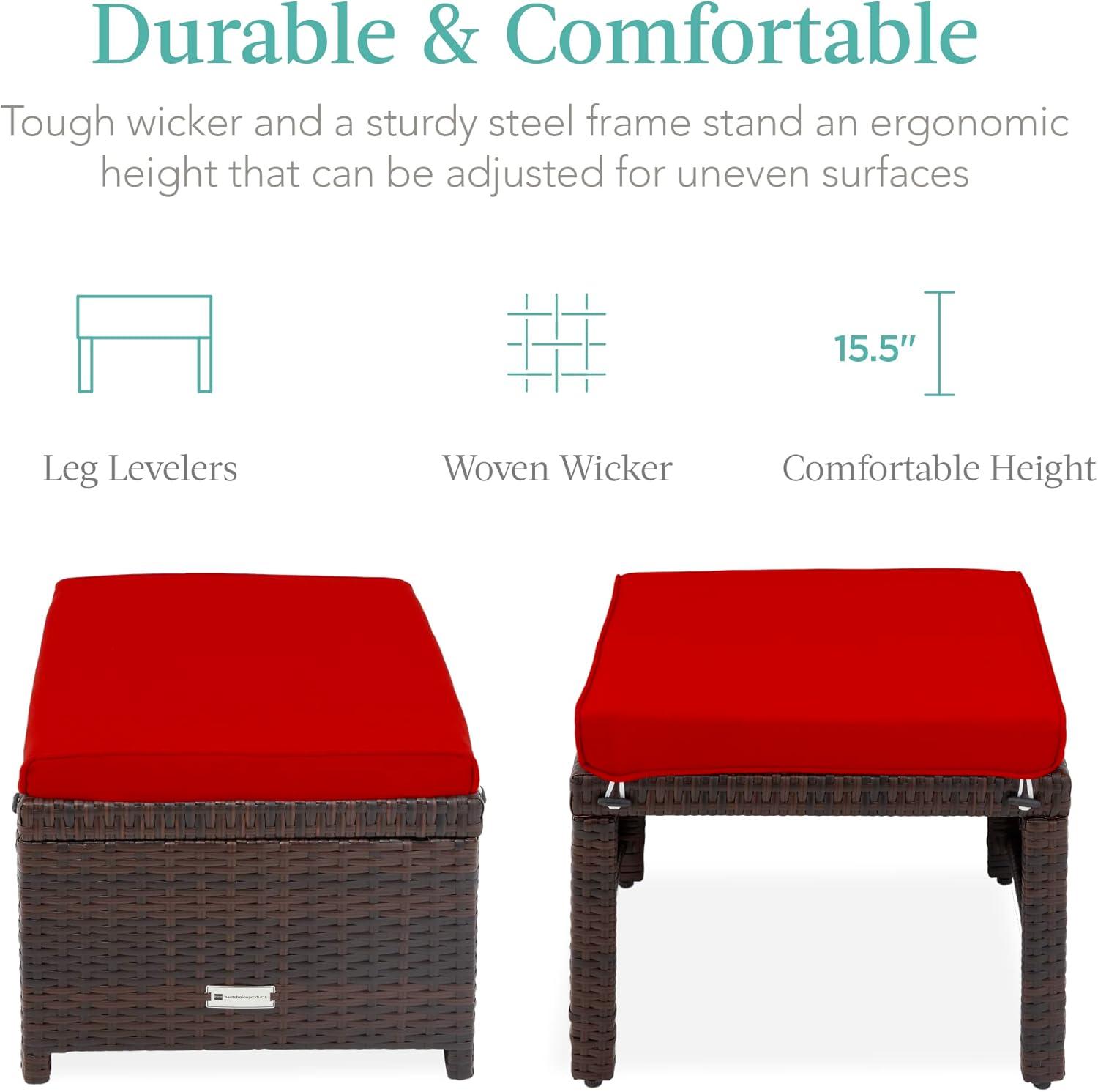 Best Choice Products Set of 2 Wicker Ottomans, Multipurpose Outdoor Furniture for Patio, Backyard, Additional Seating, Footrest, Side Table w/Removable Cushions, Steel Frame – Gray/Cream(Brown/Red)