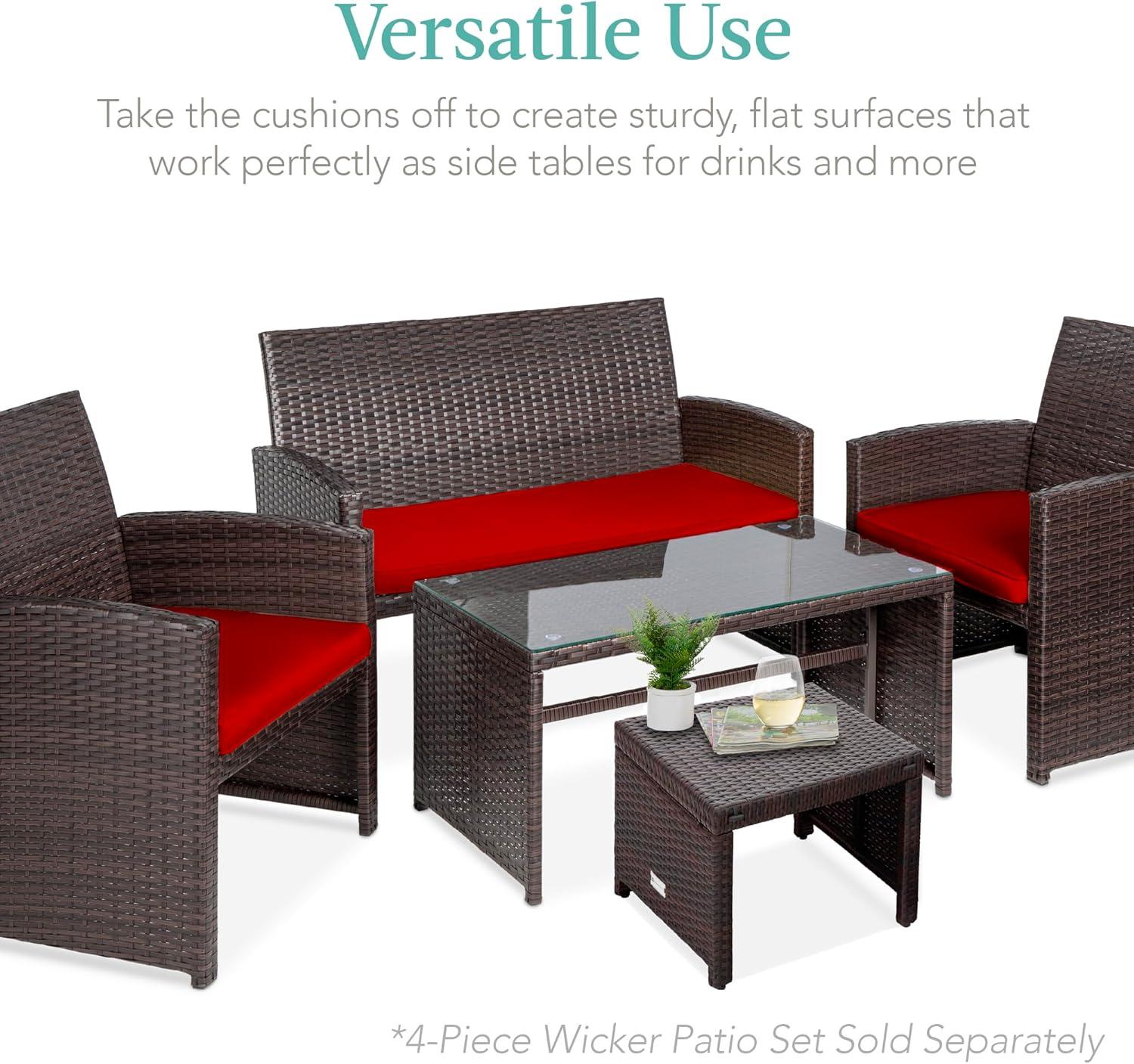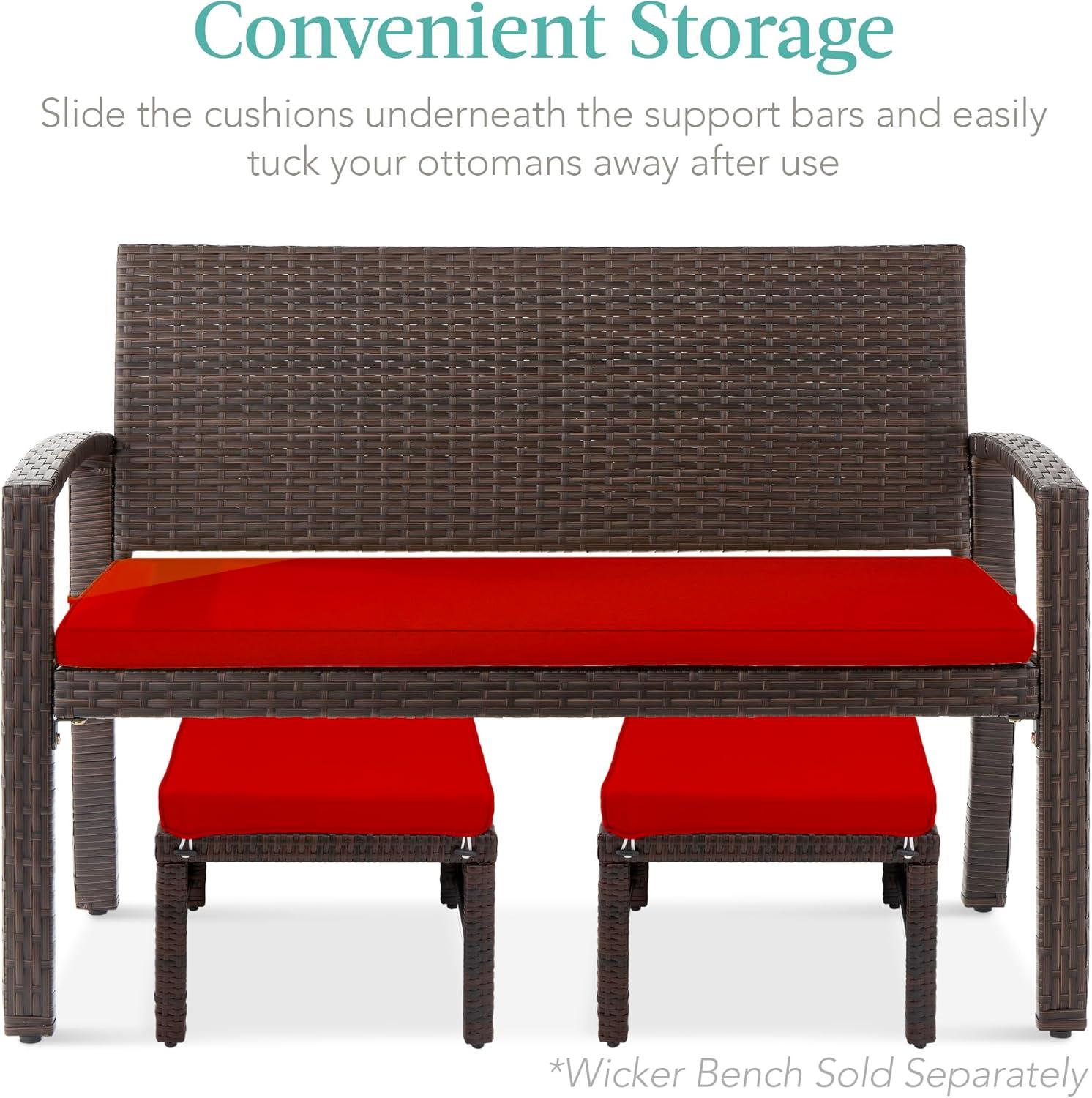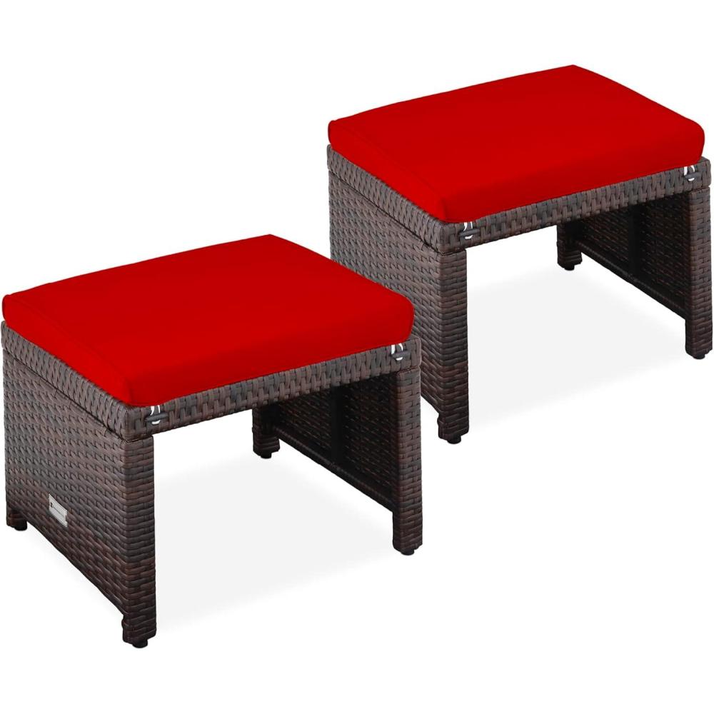 Best Choice Products Set of 2 Wicker Ottomans, Multipurpose Outdoor Furniture for Patio, Backyard, Additional Seating, Footrest, Side Table w/Removable Cushions, Steel Frame – Gray/Cream(Brown/Red)
