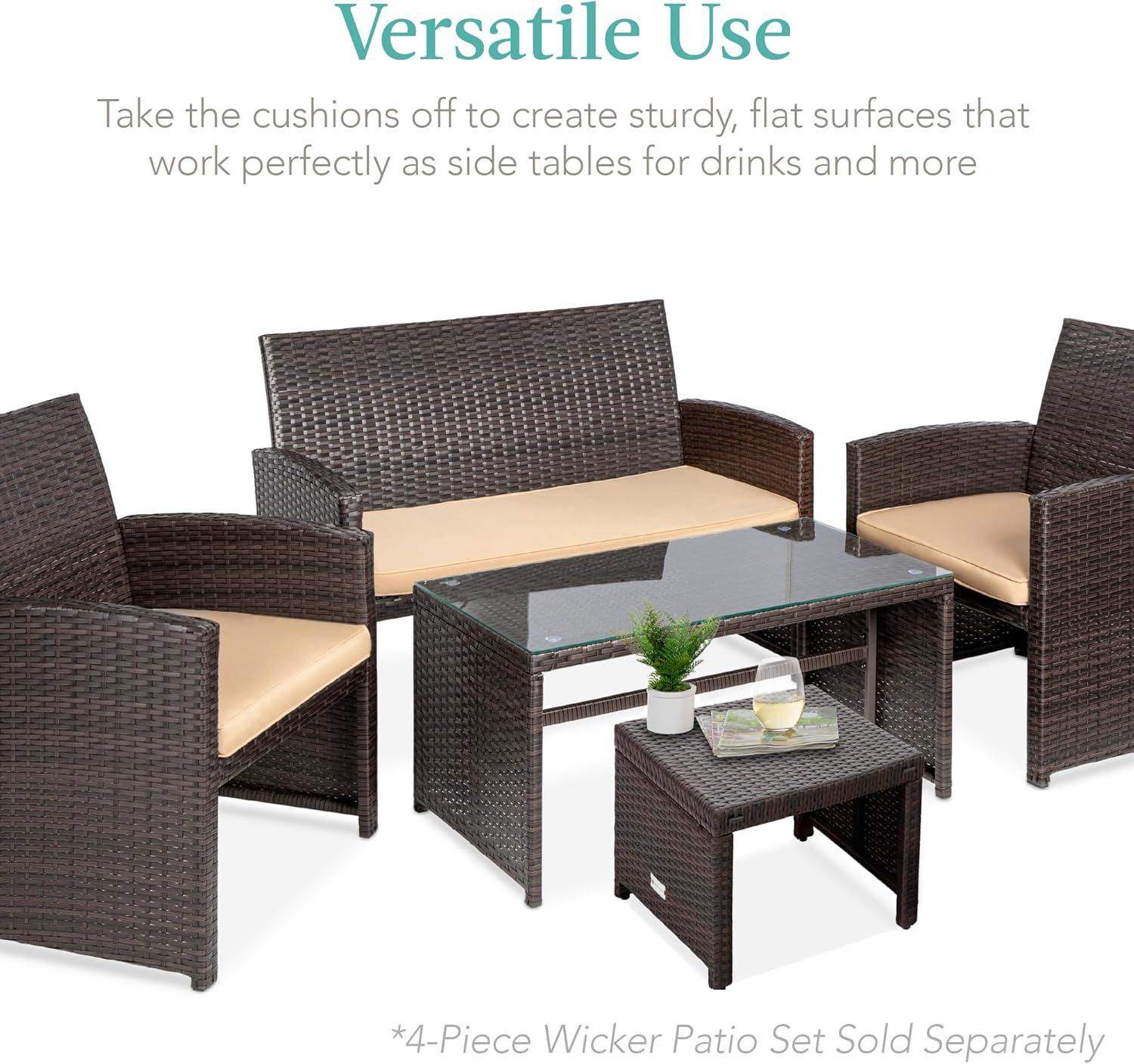 Best Choice Products Set of 2 Wicker Ottomans, Multipurpose Outdoor Furniture for Patio, Backyard, Additional Seating, Footrest, Side Table w/Removable Cushions, Steel Frame – Gray/Cream(Brown/Tan)