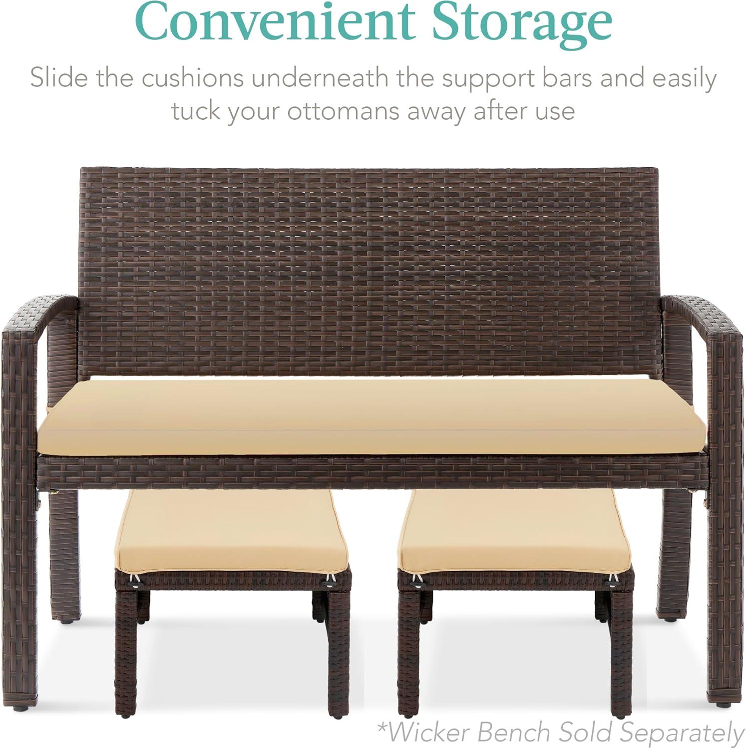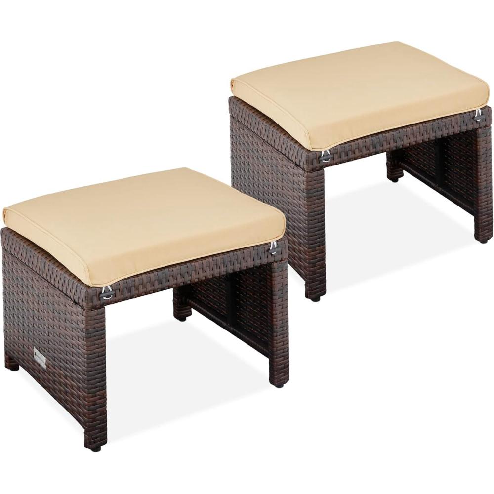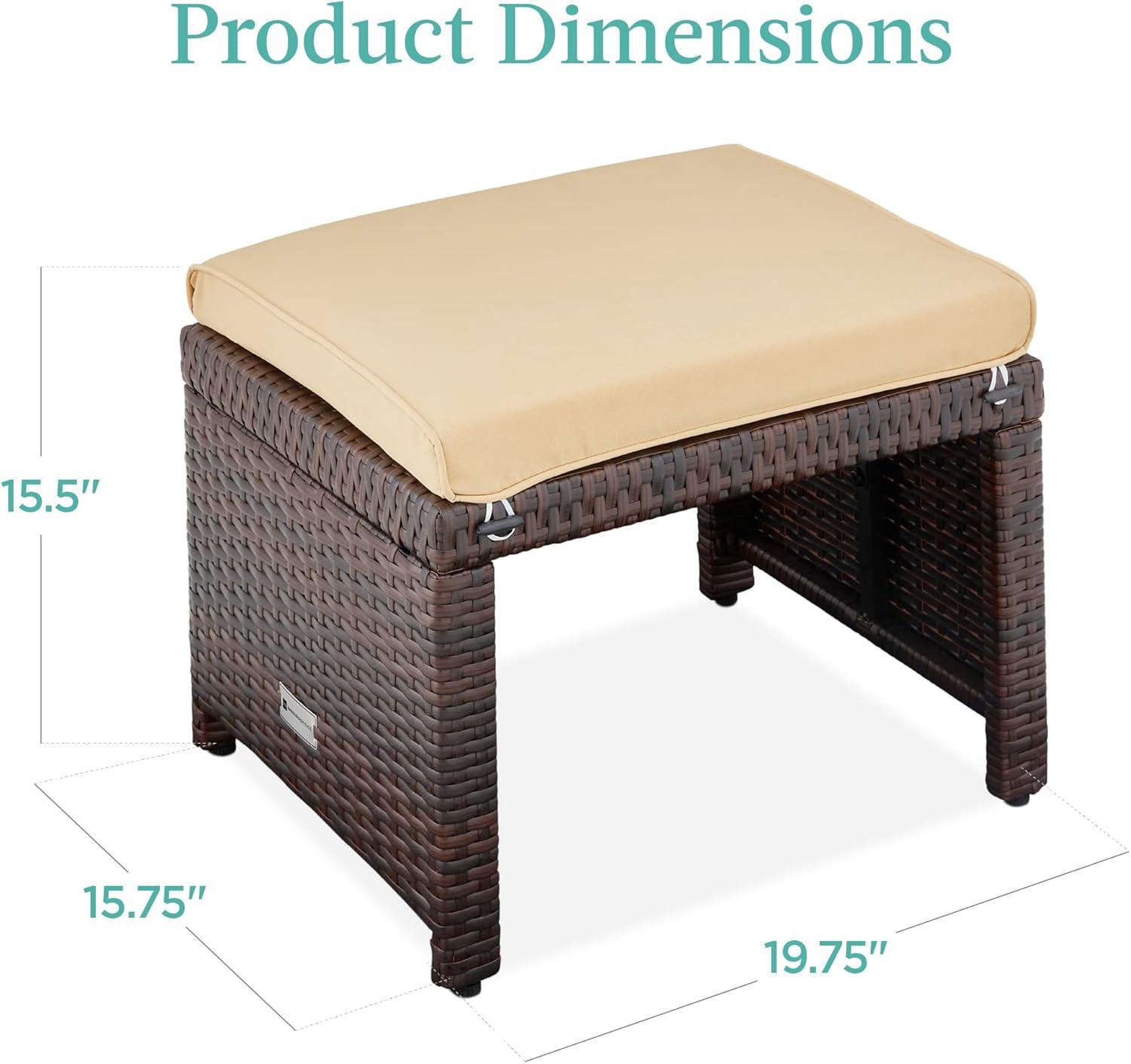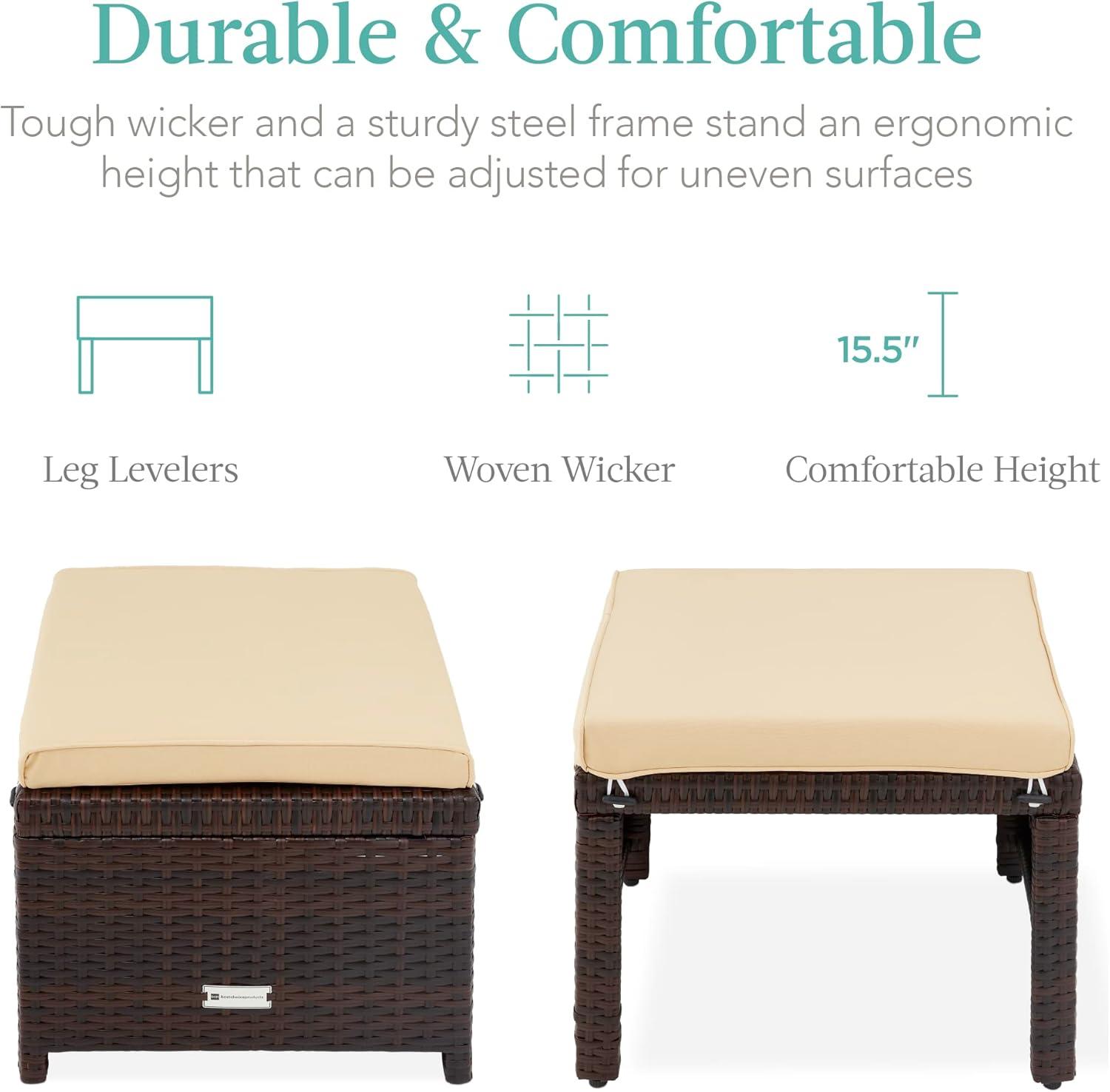 Best Choice Products Set of 2 Wicker Ottomans, Multipurpose Outdoor Furniture for Patio, Backyard, Additional Seating, Footrest, Side Table w/Removable Cushions, Steel Frame - Gray/Cream(Brown/Tan)