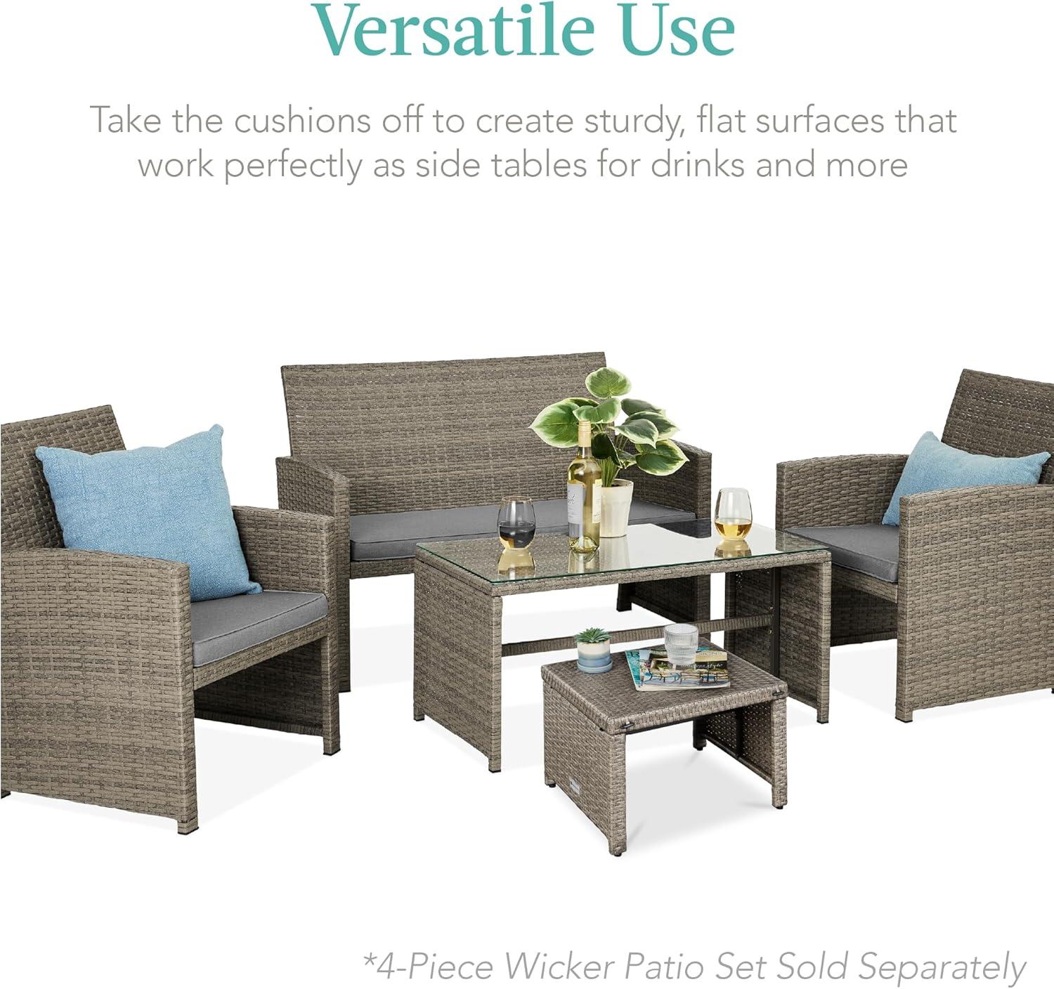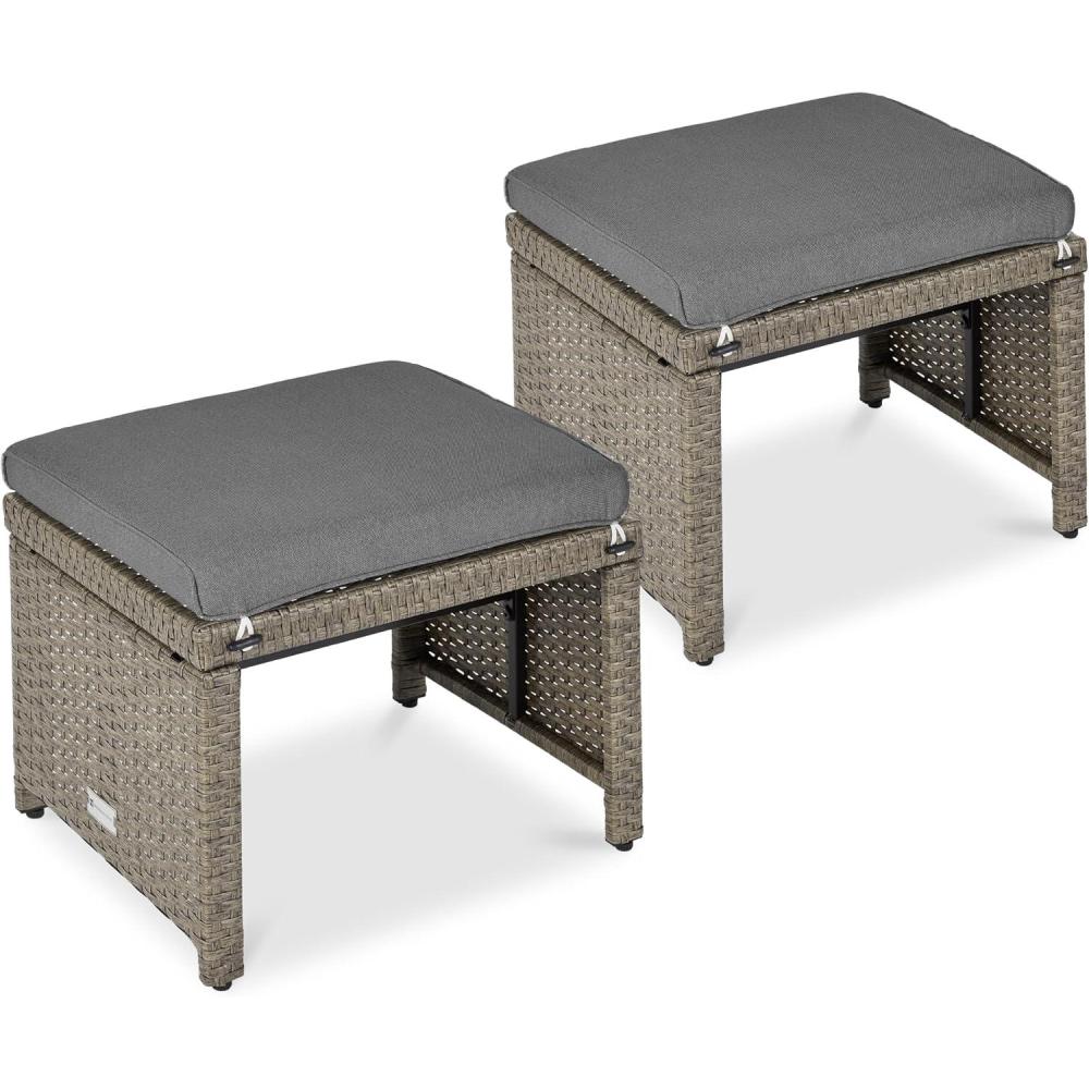 Best Choice Products Set of 2 Wicker Ottomans, Multipurpose Outdoor Furniture for Patio, Backyard, Additional Seating, Footrest, Side Table w/Removable Cushions, Steel Frame – Gray/Cream(Cement Gray/Taupe)