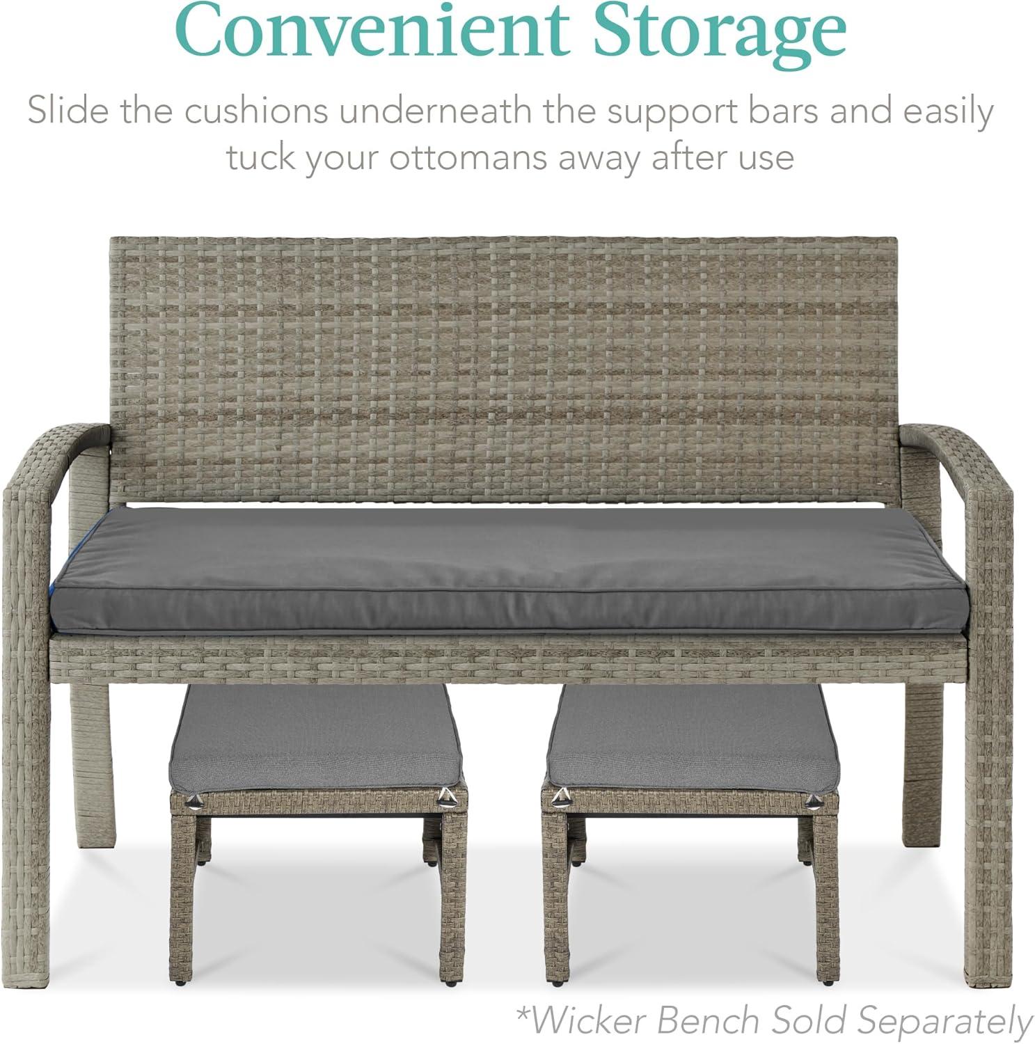 CONVENIENT STORAGE: Easily tuck the cushions underneath the support bars to conveniently store these ottomans away when not in use