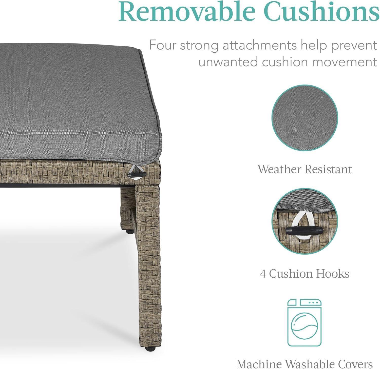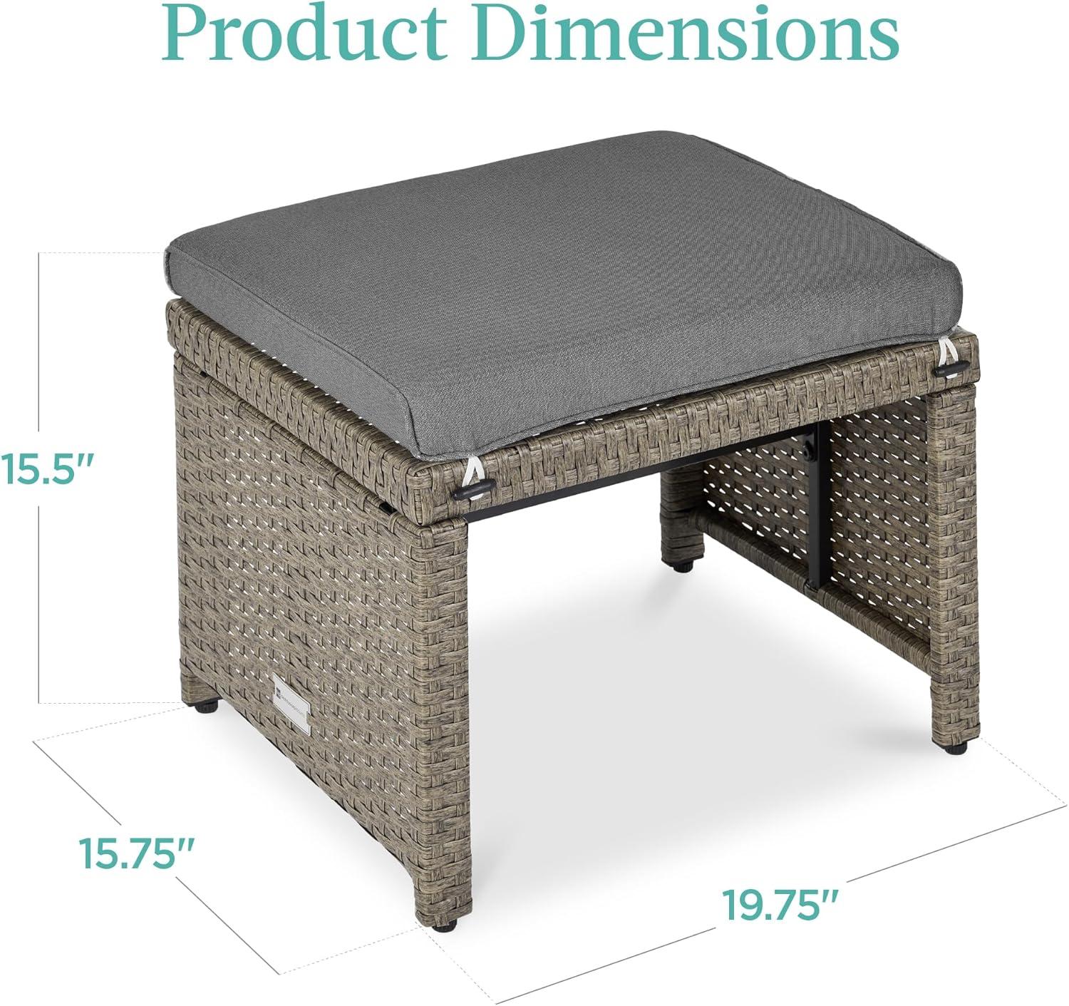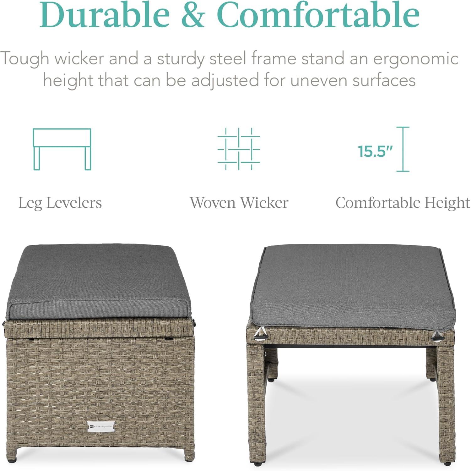 Best Choice Products Set of 2 Wicker Ottomans, Multipurpose Outdoor Furniture for Patio, Backyard, Additional Seating, Footrest, Side Table w/Removable Cushions, Steel Frame - Gray/Cream(Cement Gray/Taupe)